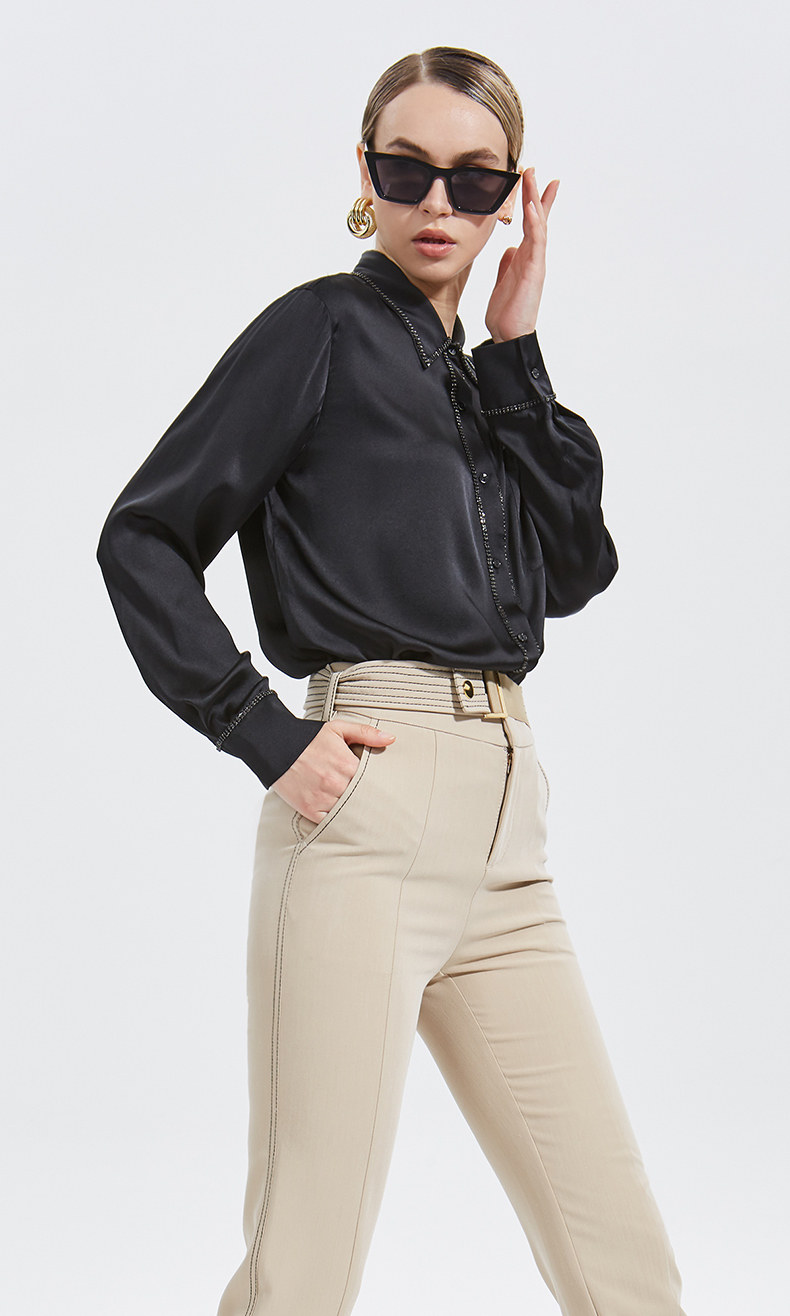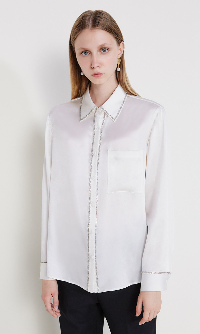 Нарисуйте вдохновение из ежедневного гардероба, основные рубашки с бриллиантовыми украшениями и шелком, вызывает романтическое женское обаяние и создайте современную моду с вогнутым взглядом.