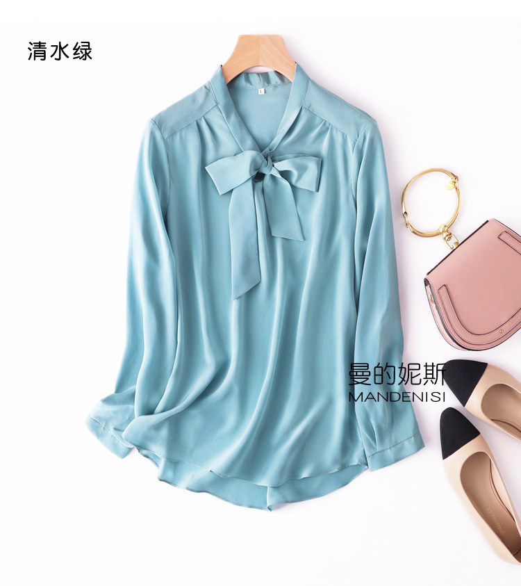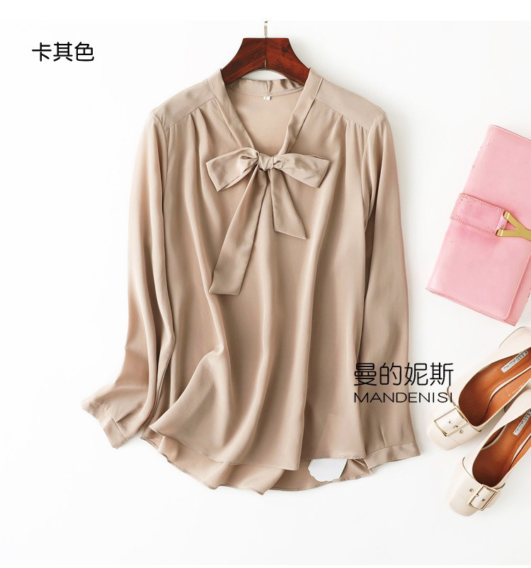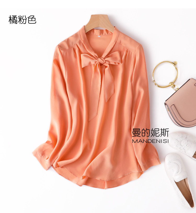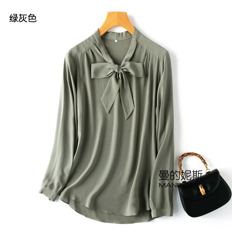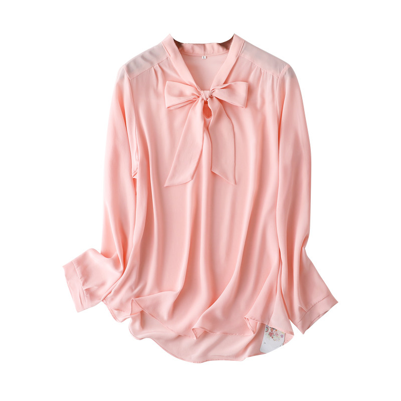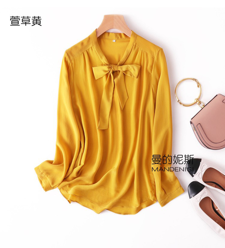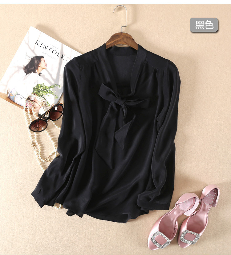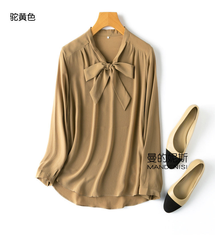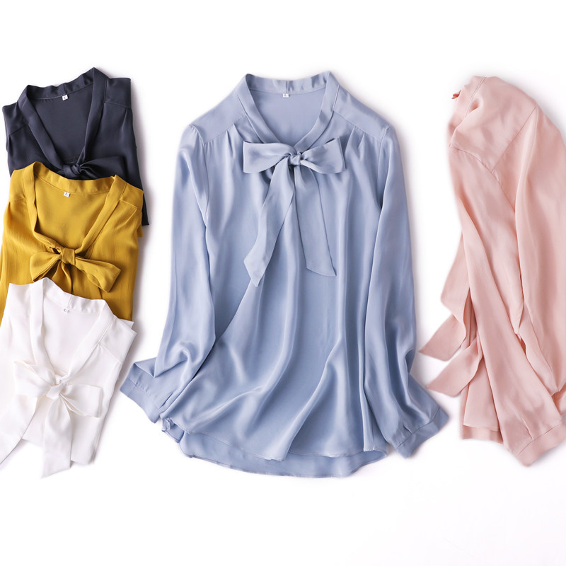Летняя шелковая рубашка, элегантный шелковый лонгслив с бантиком, 2023