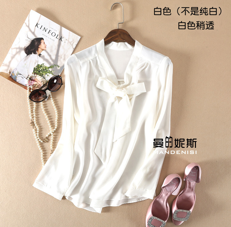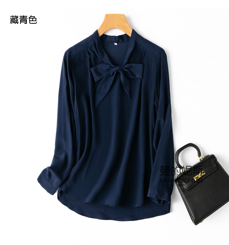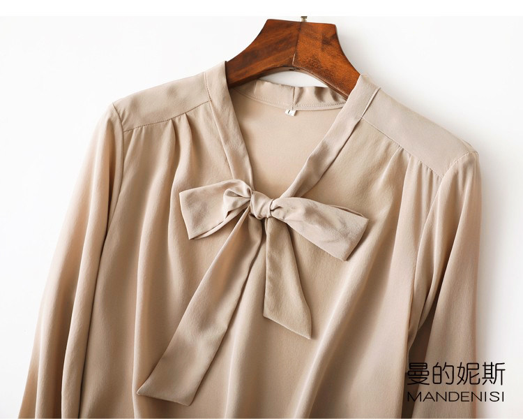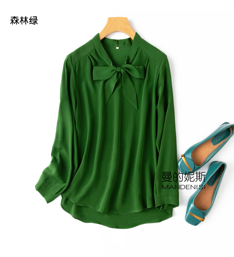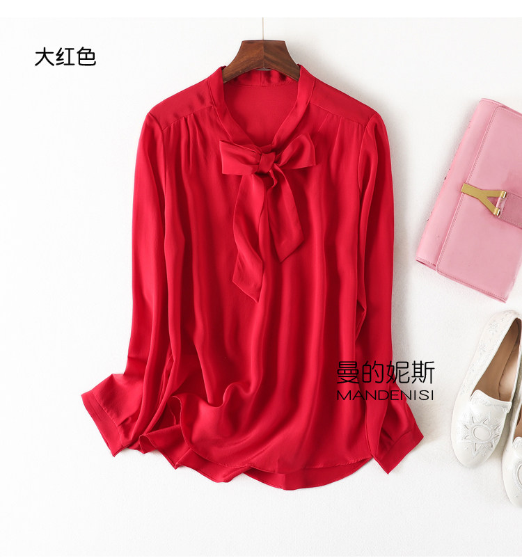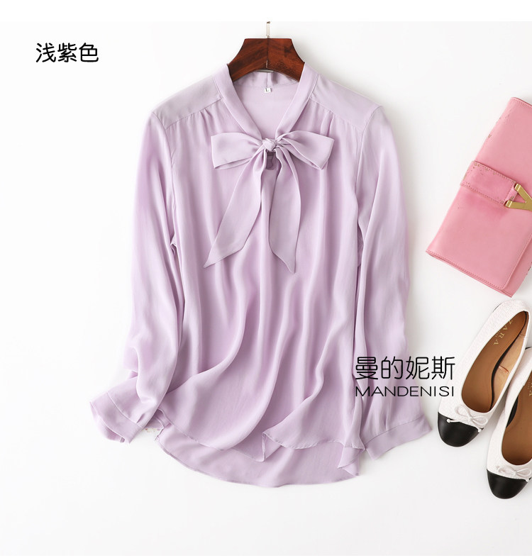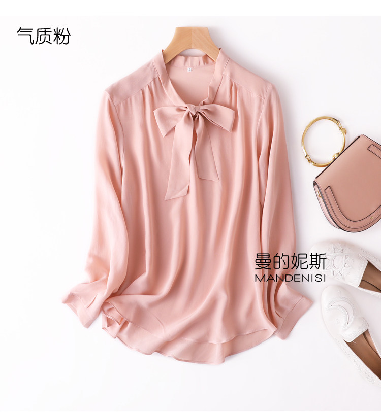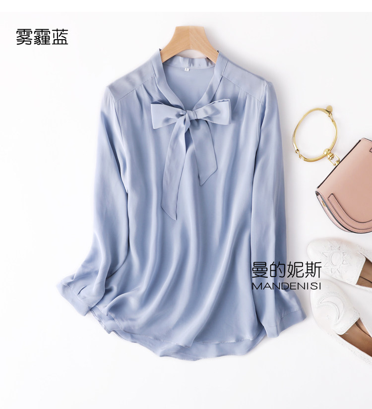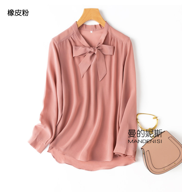 Летняя шелковая рубашка, элегантный шелковый лонгслив с бантиком, 2023