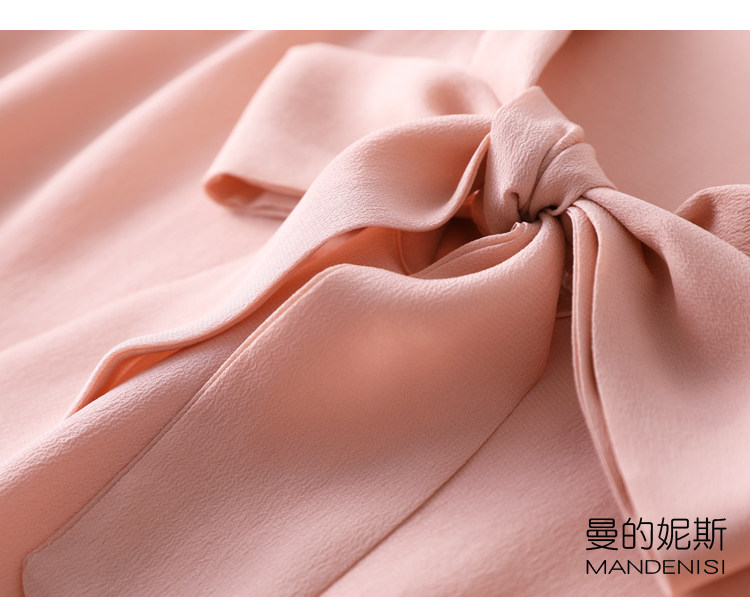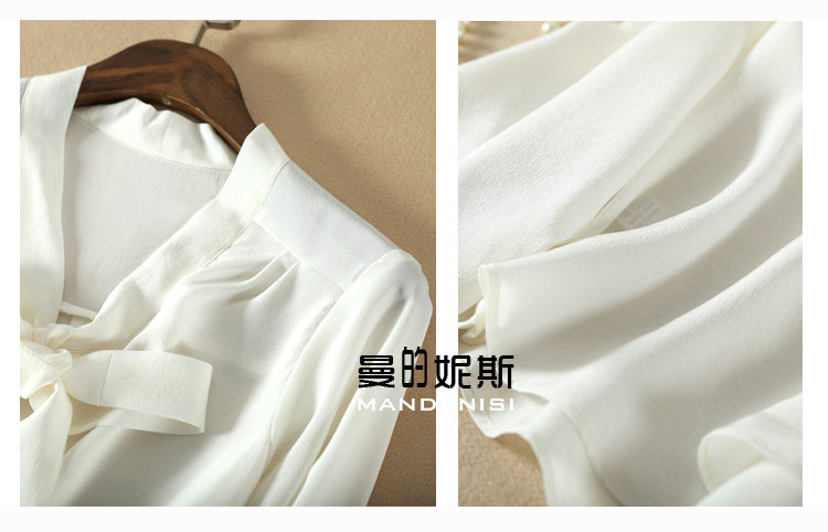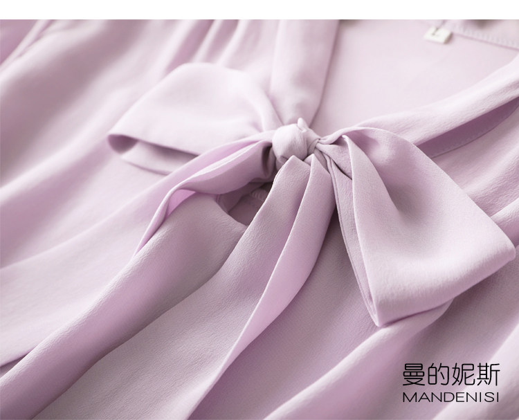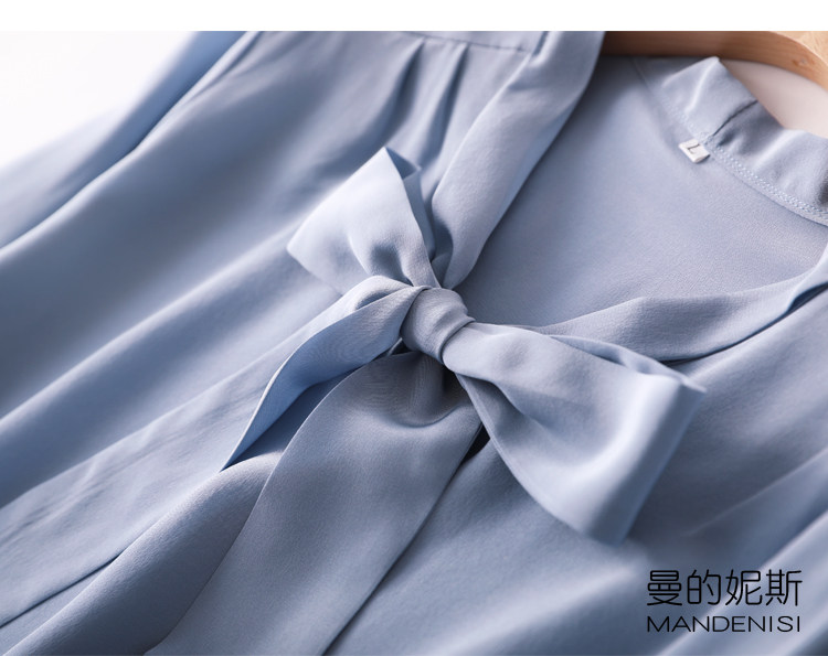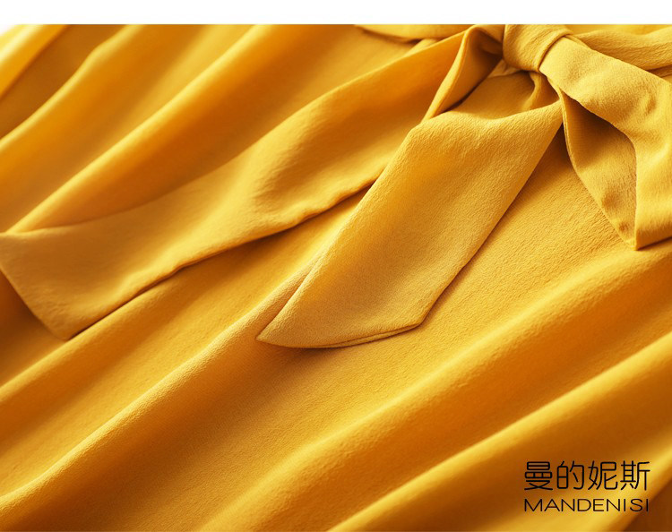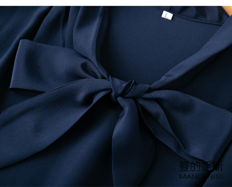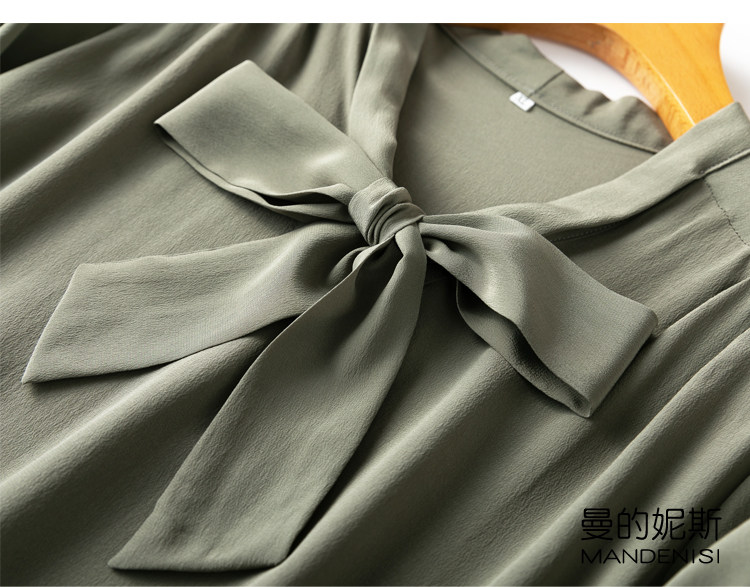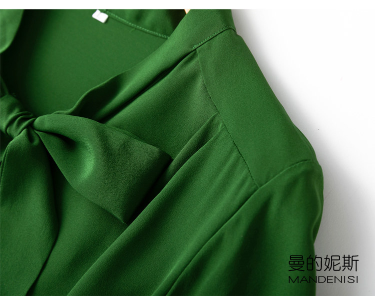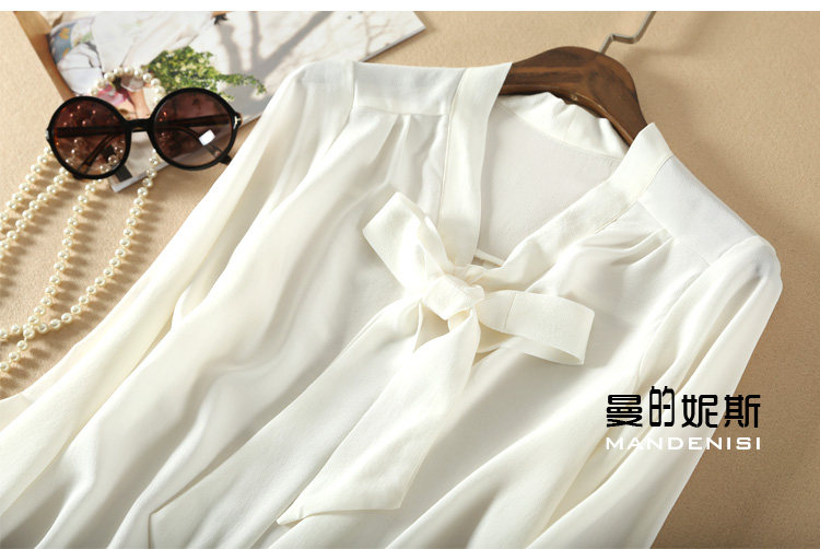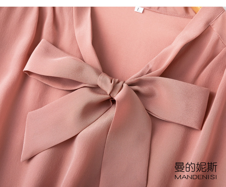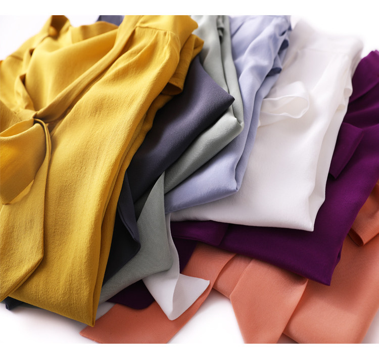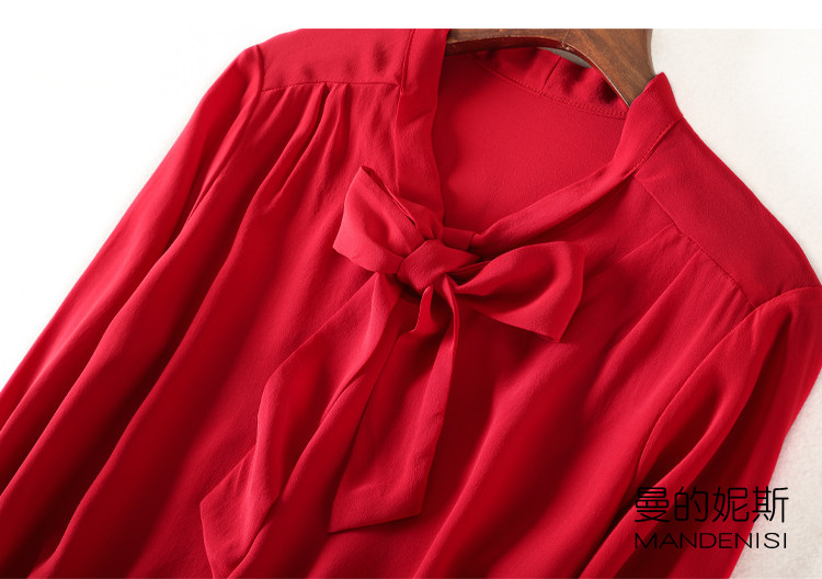 Летняя шелковая рубашка, элегантный шелковый лонгслив с бантиком, 2023
