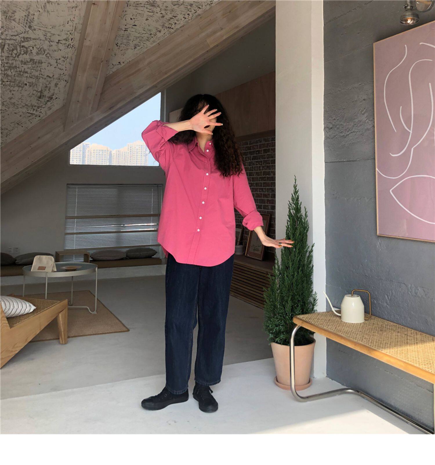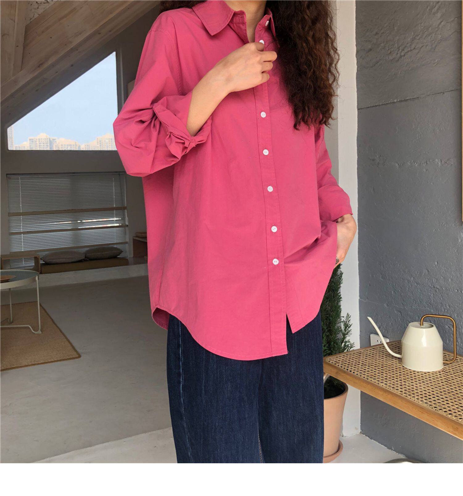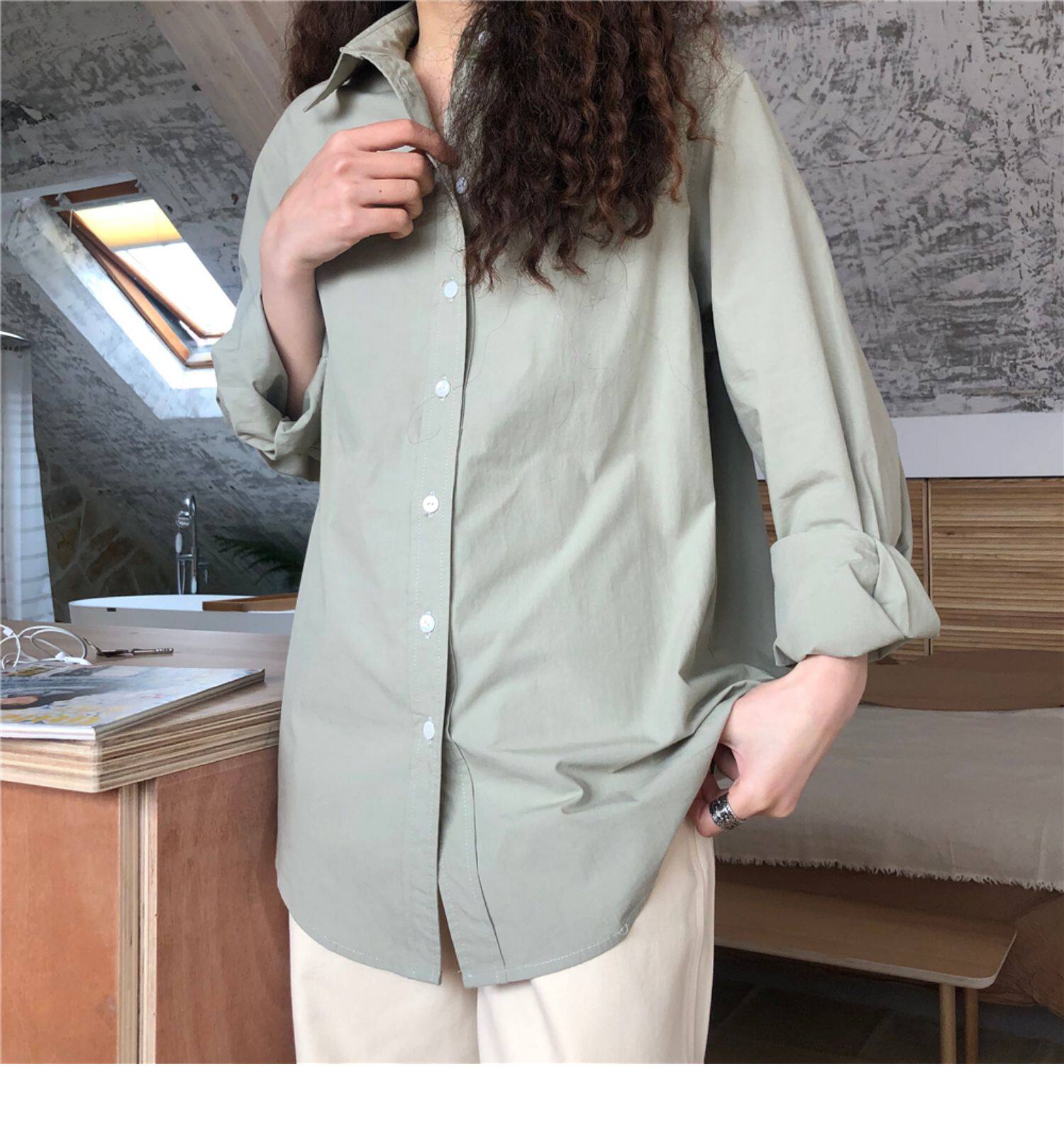 Однотонная ретро рубашка, в американском стиле, защита от солнца