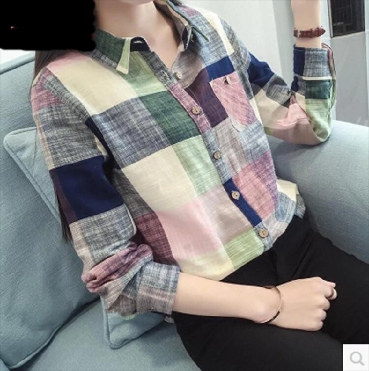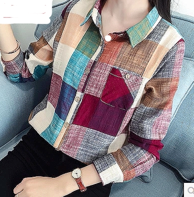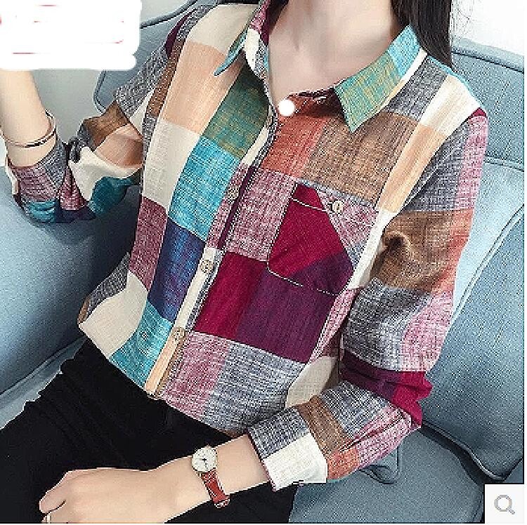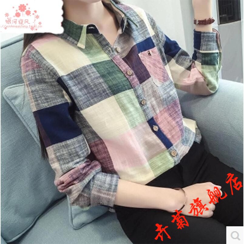 卉菊 Осенняя рубашка, осенний тонкий лонгслив, городской стиль, из хлопка и льна