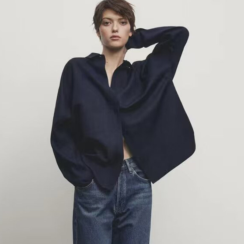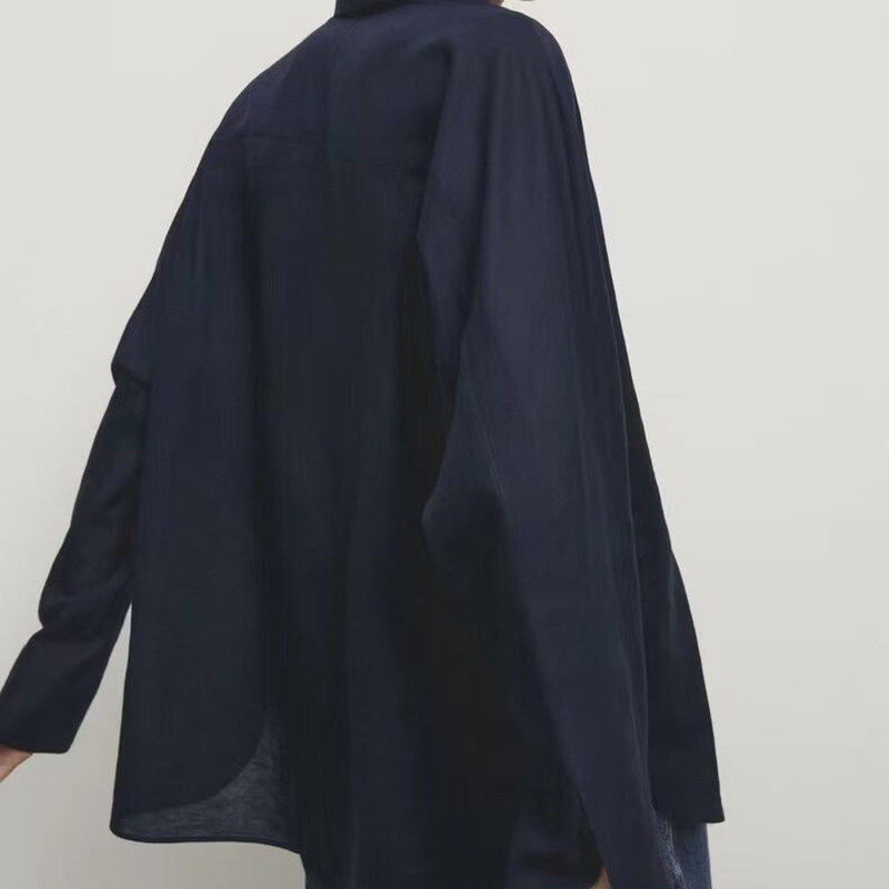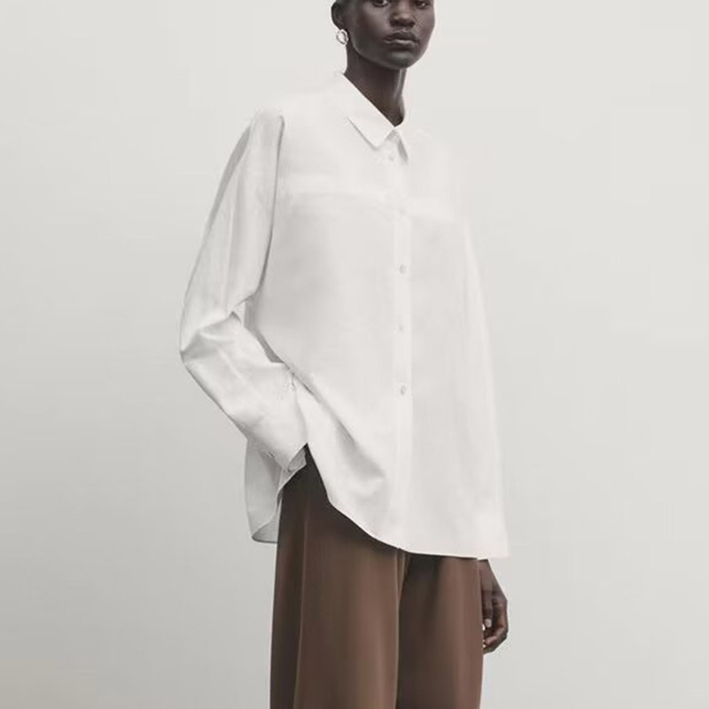 MD2024 Дизайнерская женская непринужденная рубашка в стиле французского повседневного стиля из хлопка и льна с длинными рукавами 05153948250