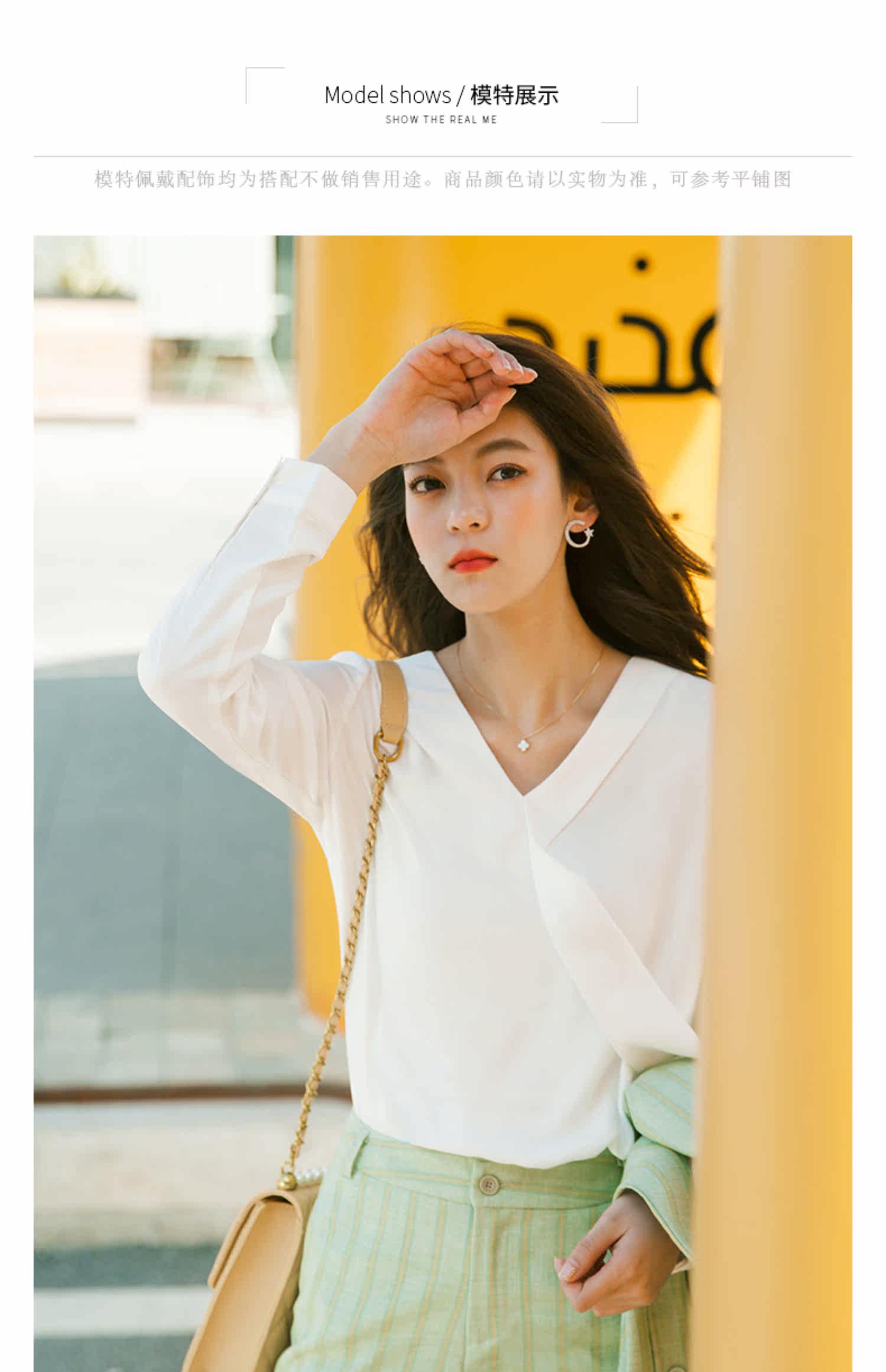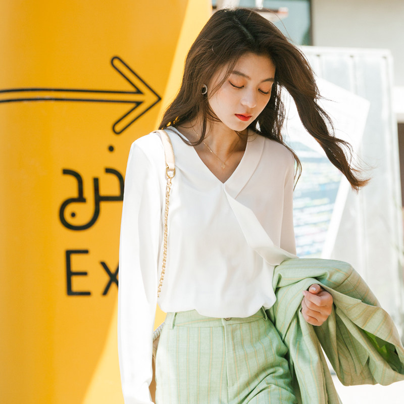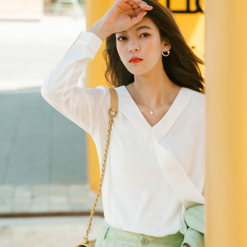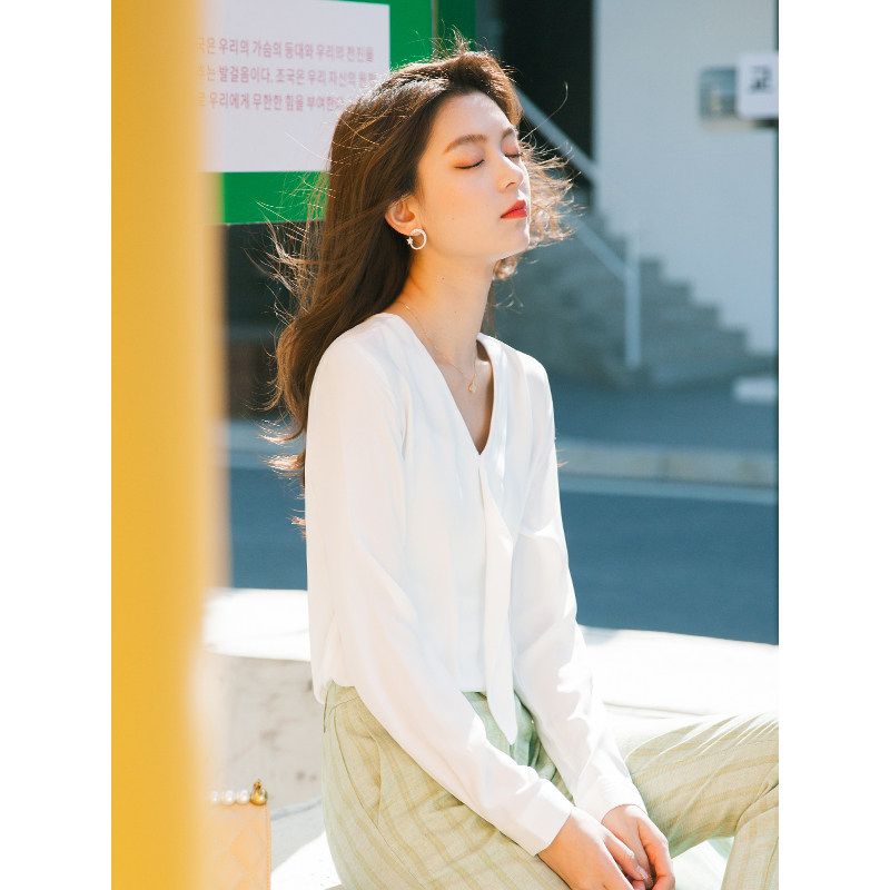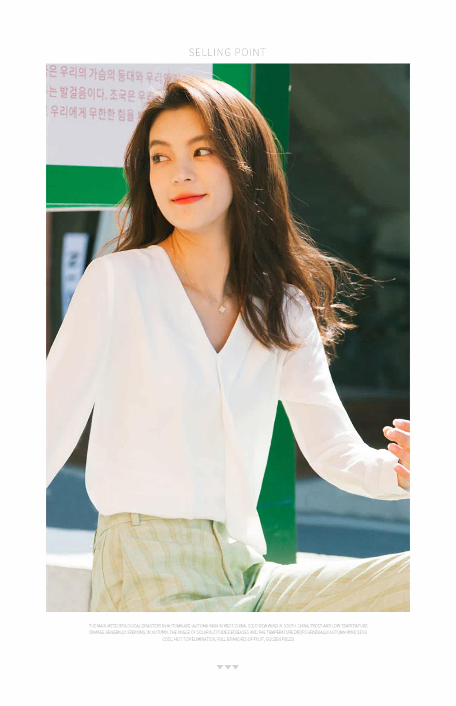 Осенний лонгслив, модная рубашка, в корейском стиле, V-образный вырез