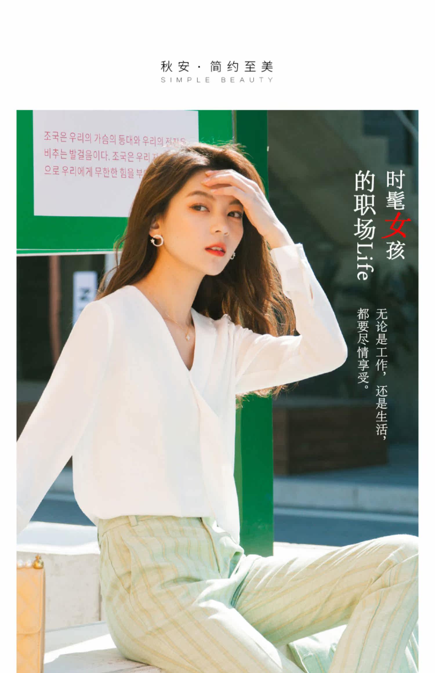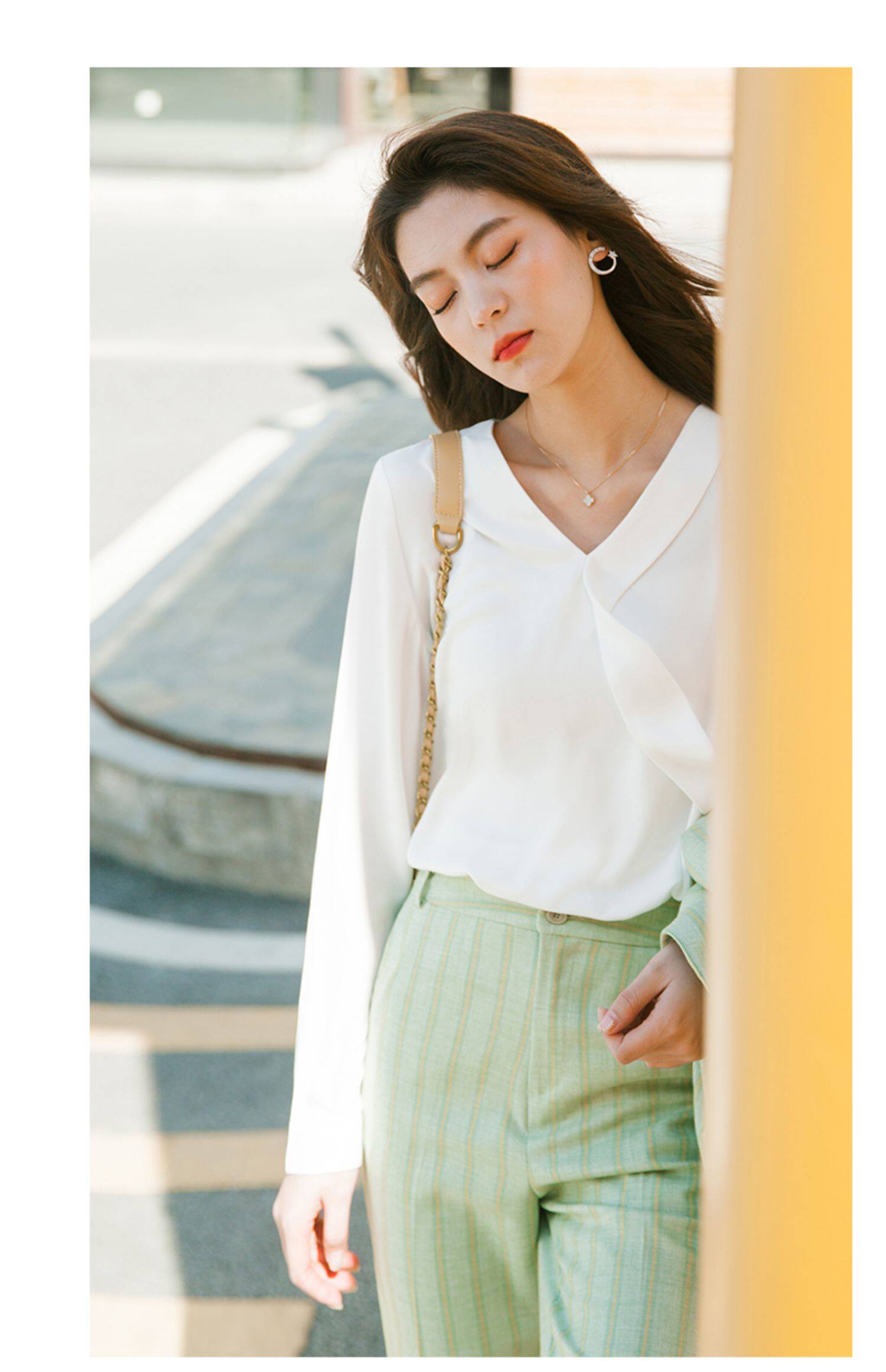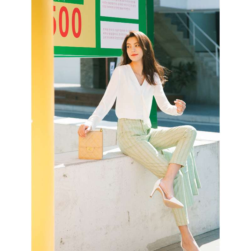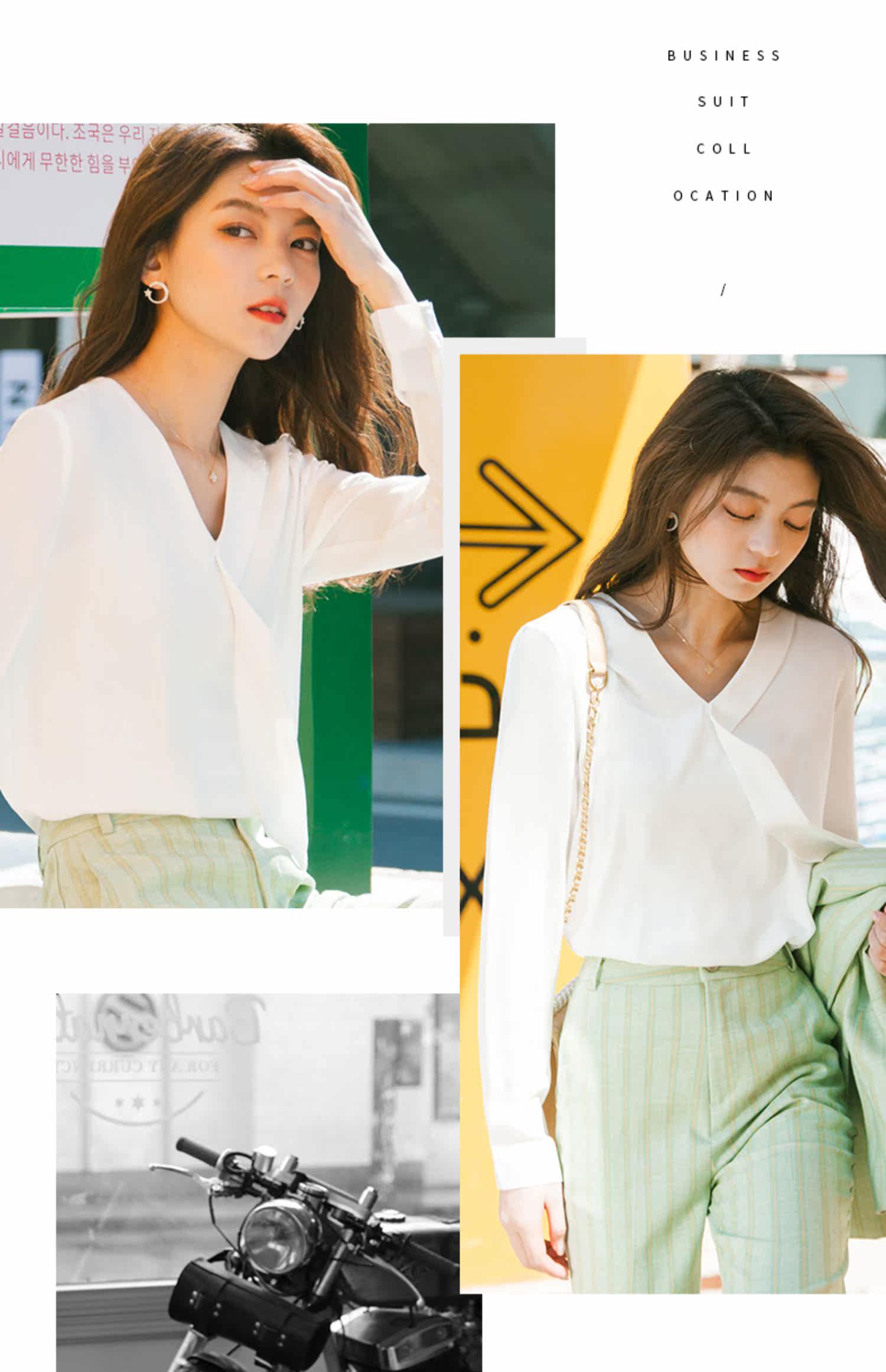 Осенний лонгслив, модная рубашка, в корейском стиле, V-образный вырез