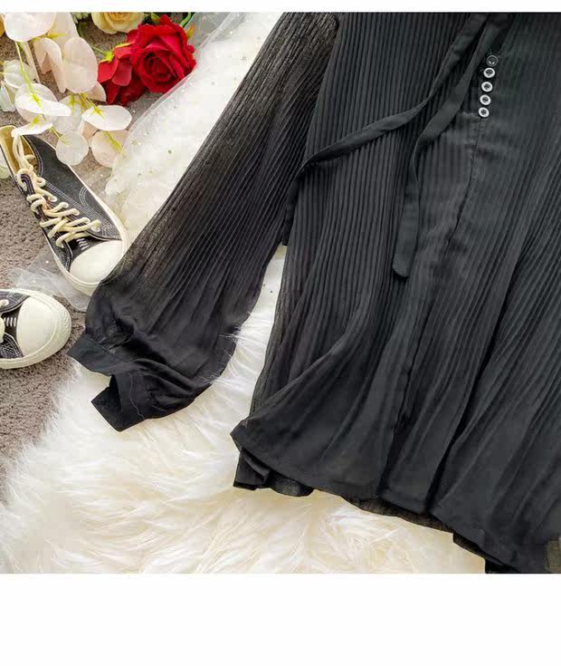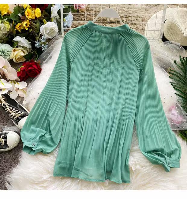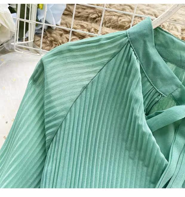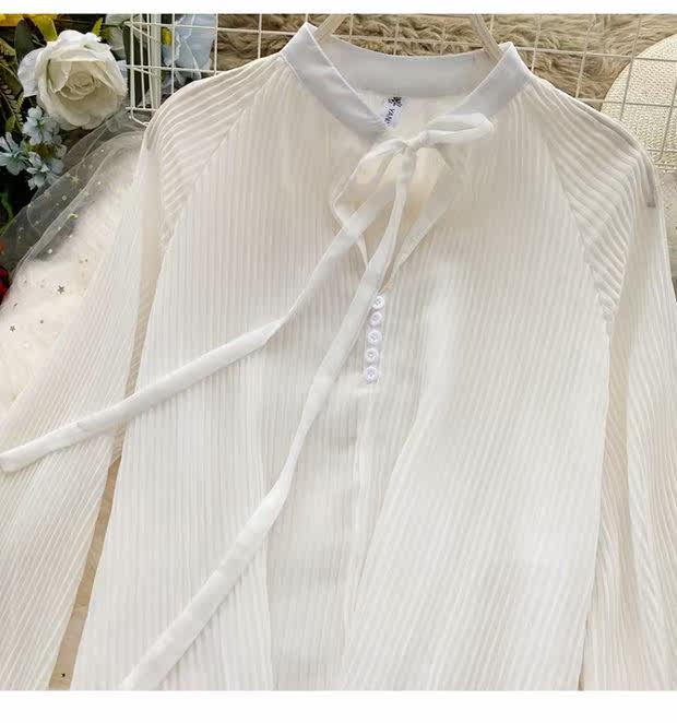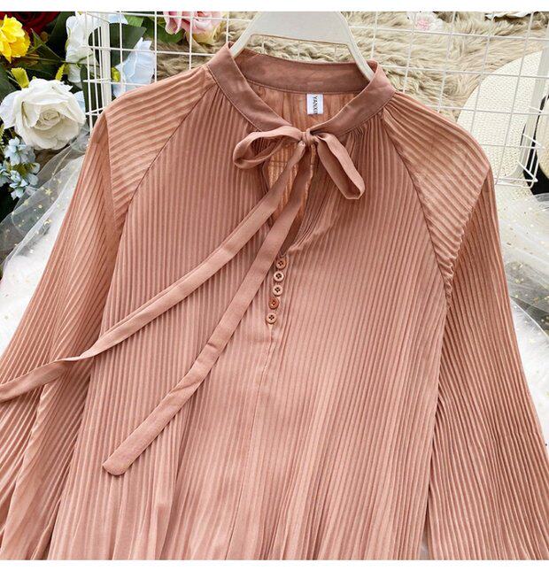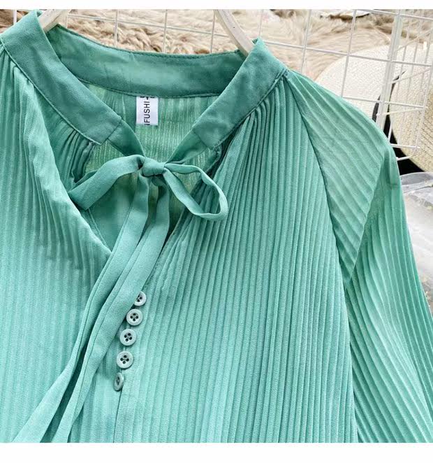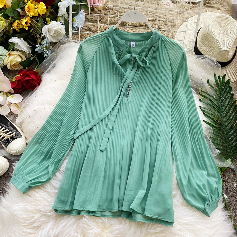 Осенний шифоновый лонгслив с бантиком, ретро фонарь, футболка, коллекция 2021, в корейском стиле, французский стиль