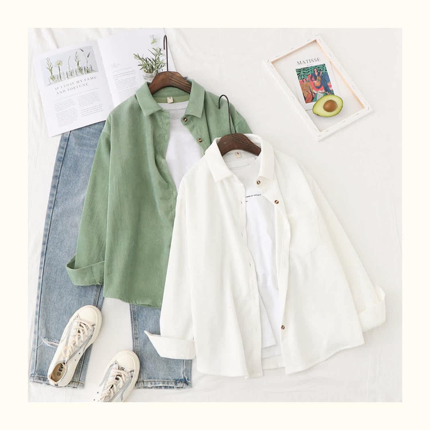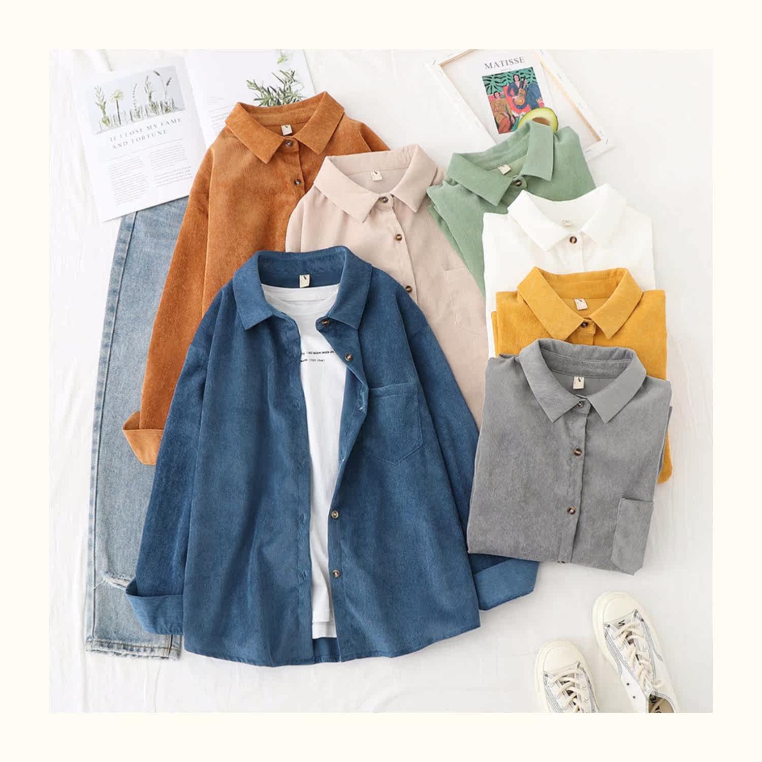 Весенняя ретро вельветовая рубашка, 2020, в корейском стиле, оверсайз, средней длины