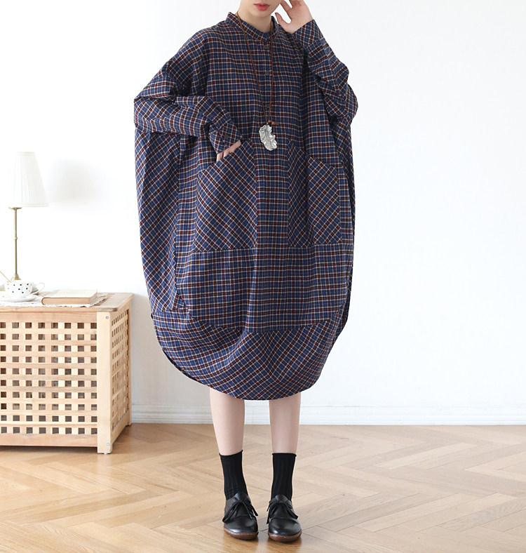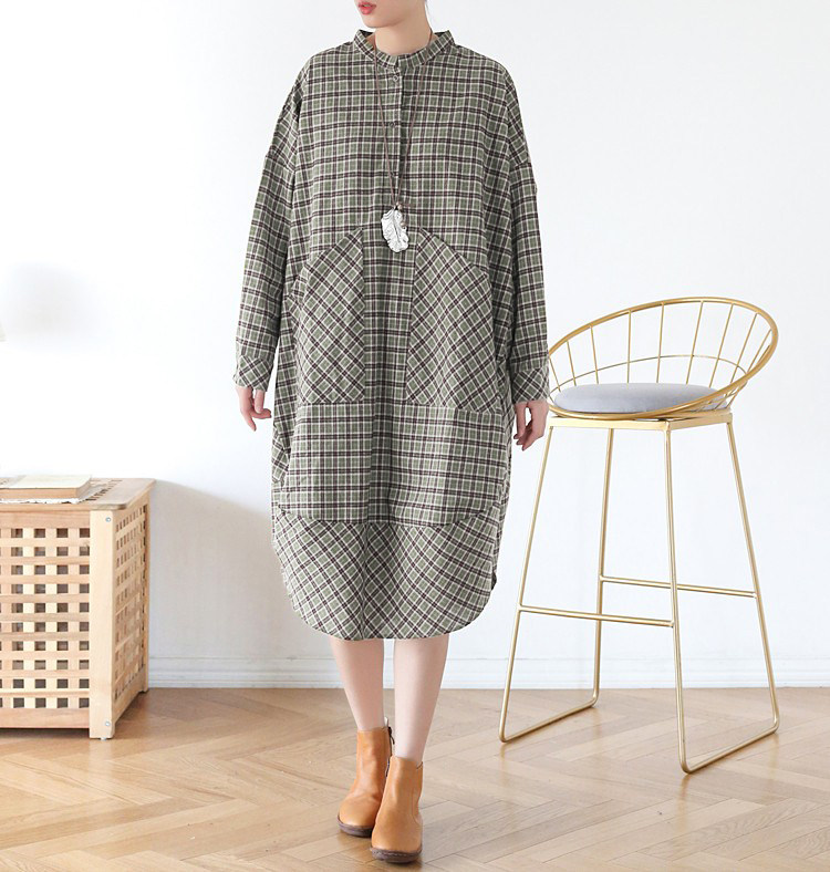 Демисезонное оригинальное дизайнерское ретро платье с карманами, рубашка, свободный крой, оверсайз, большой размер