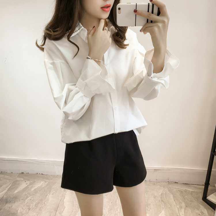 Летняя рубашка, лонгслив, 2020, в корейском стиле, большой размер, оверсайз, высокий воротник