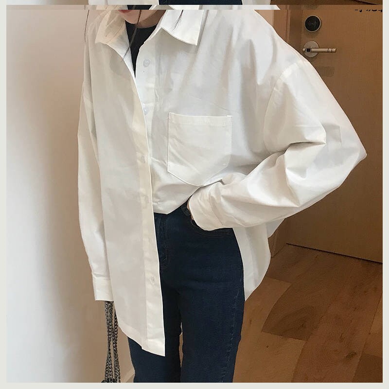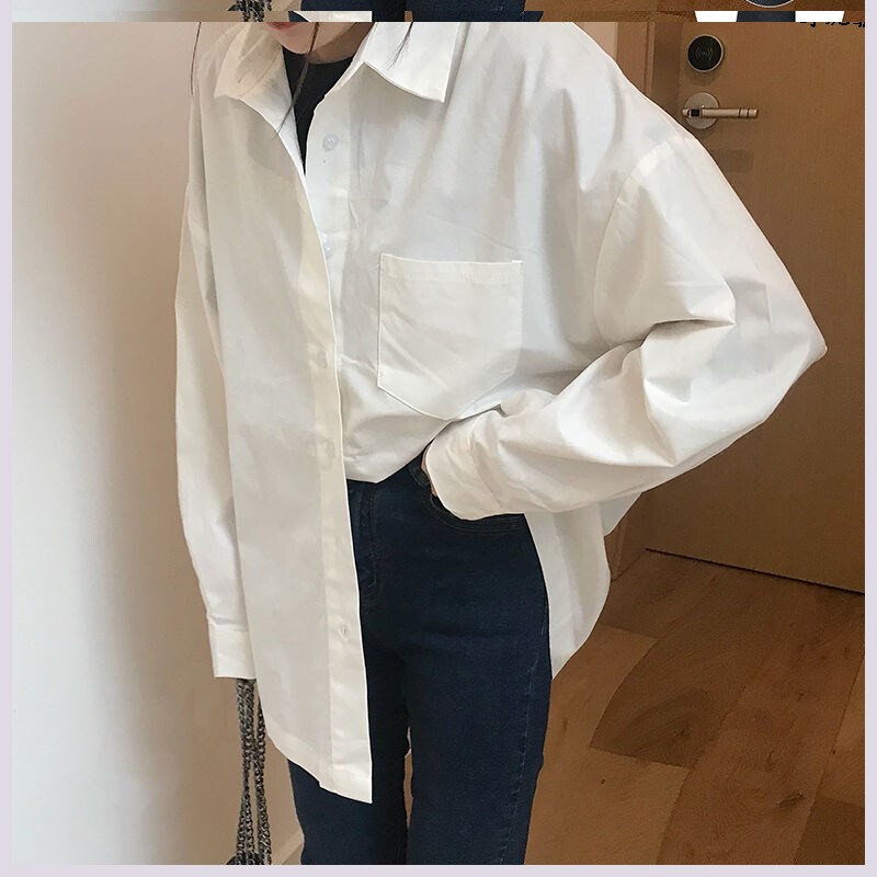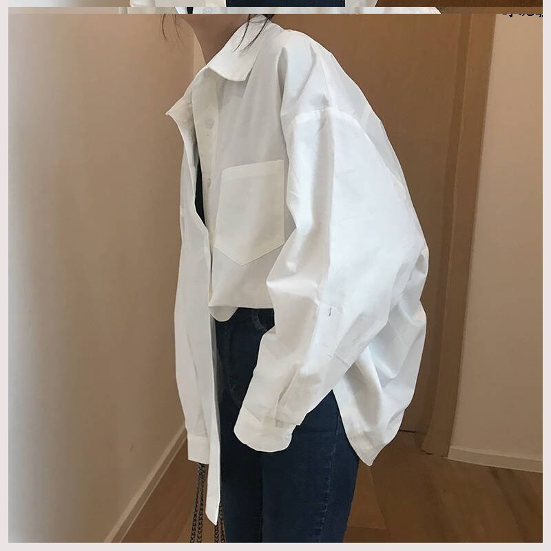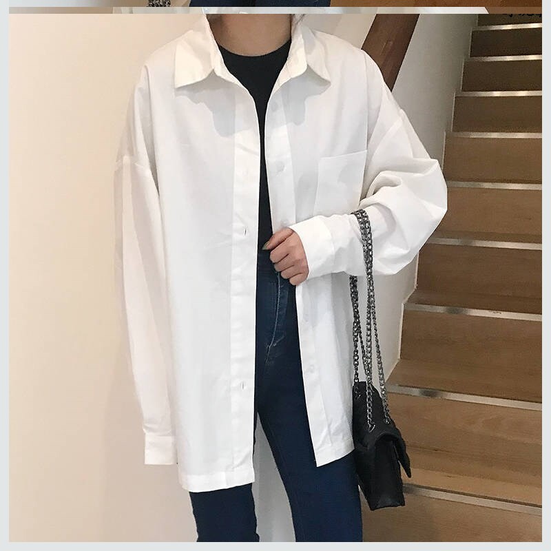 Средняя -длина свободная женщина ленивый ветер 2020 Весна Новая белая корейская универсальная рубашка для ветряной рубашки для студенческих колледжей рубашка колледжа