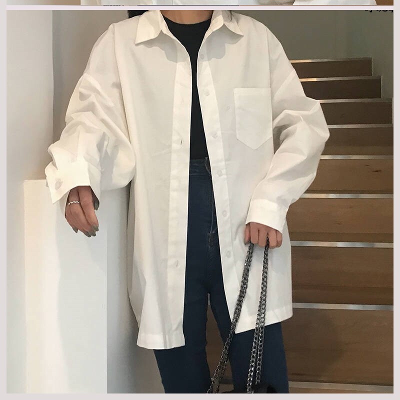 Длинная весенняя белая рубашка для школьников и студентов, средней длины, 2020, тренд сезона, в корейском стиле