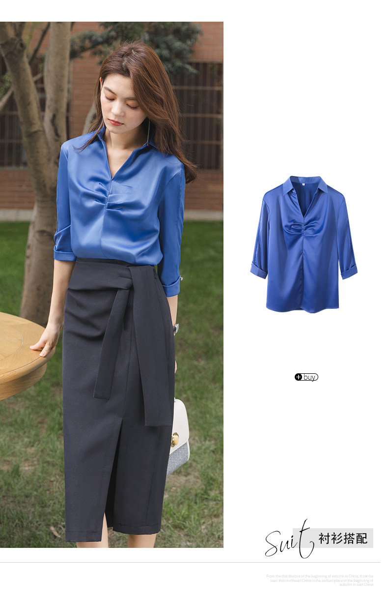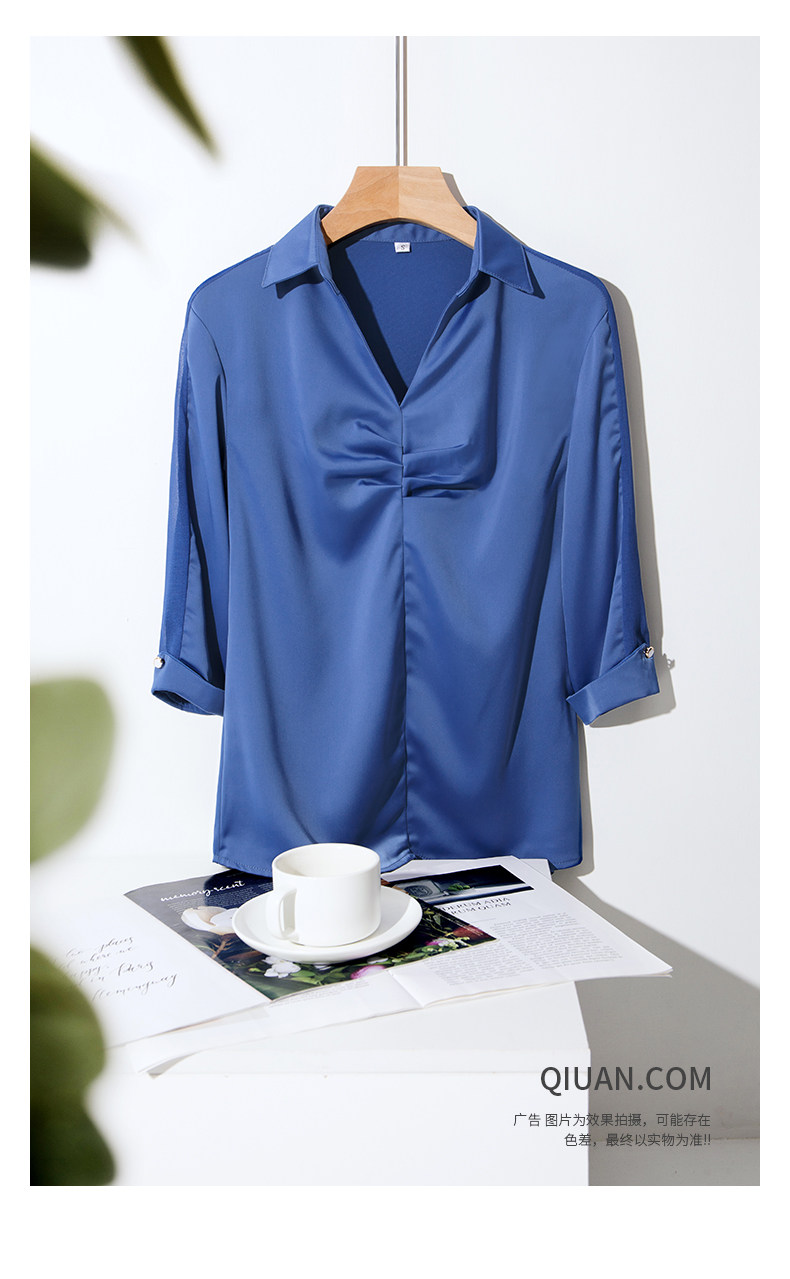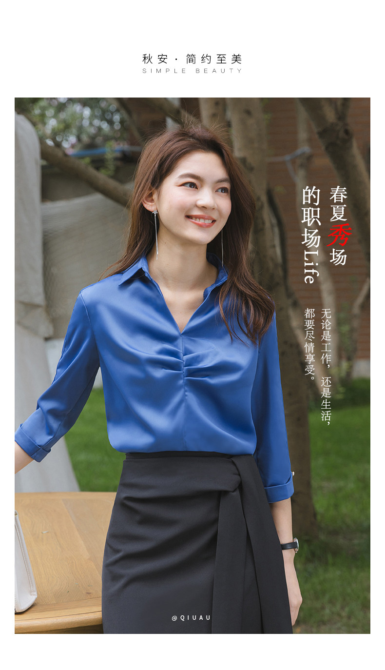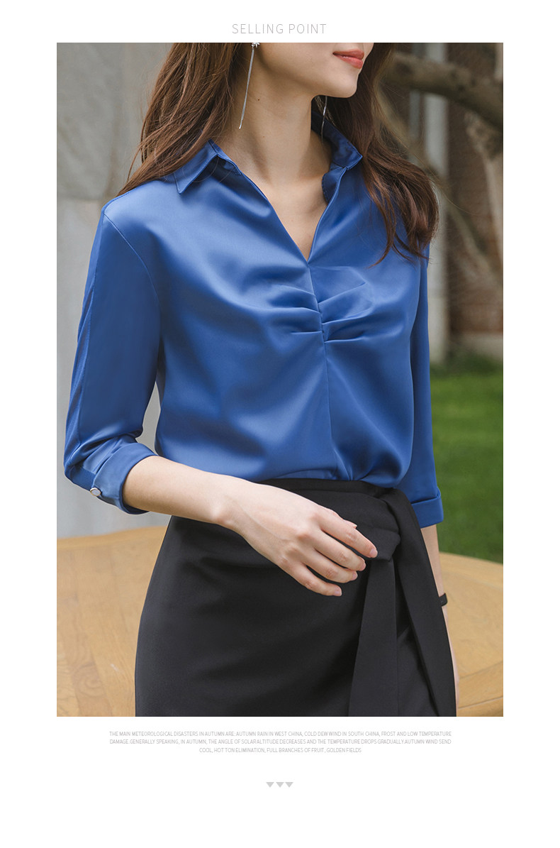 Ретро синяя летняя рубашка, французский стиль, V-образный вырез