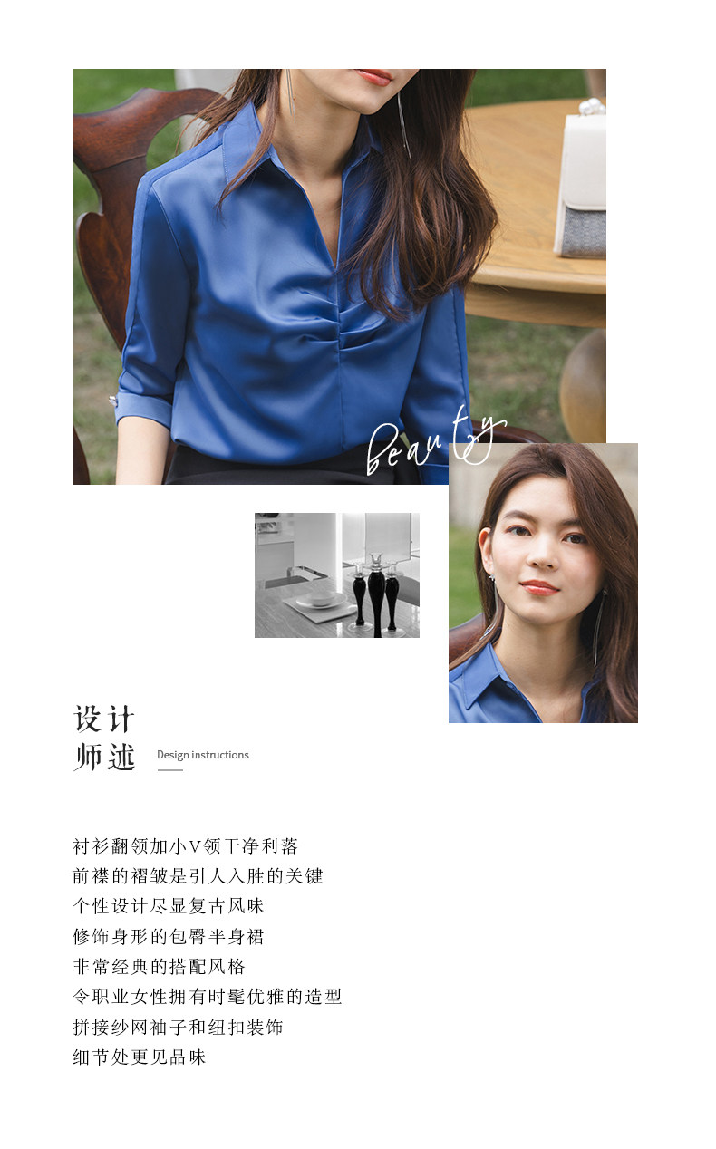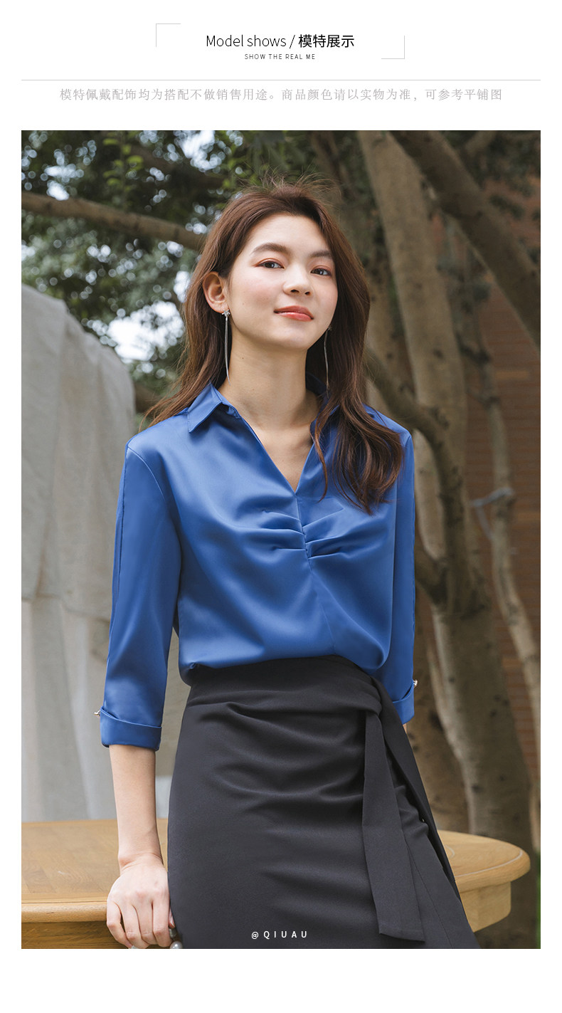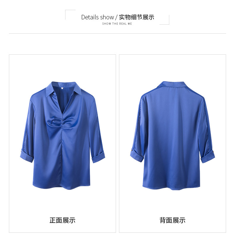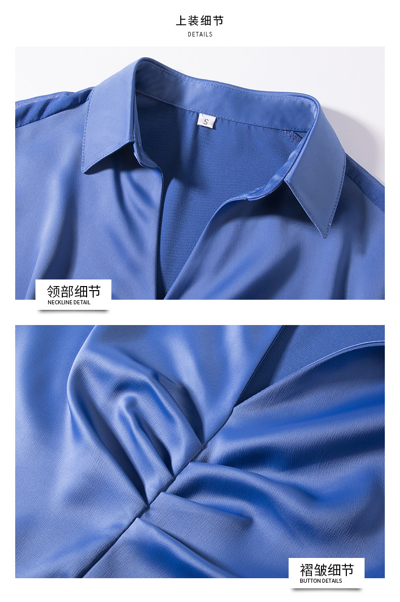 Ретро синяя летняя рубашка, французский стиль, V-образный вырез