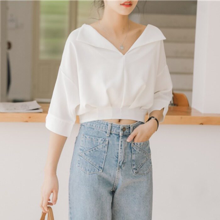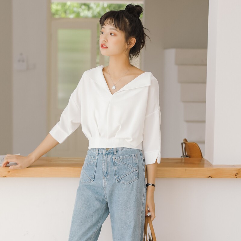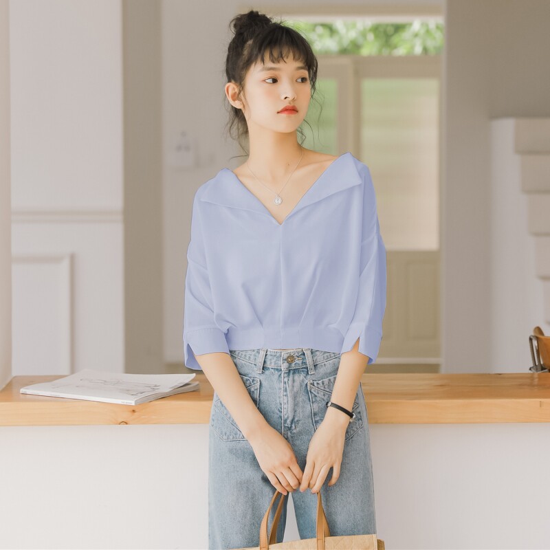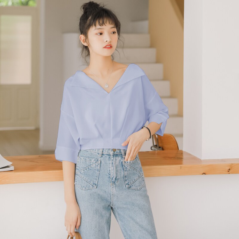 Модная летняя одежда, короткая рубашка, коллекция 2023, высокая талия
