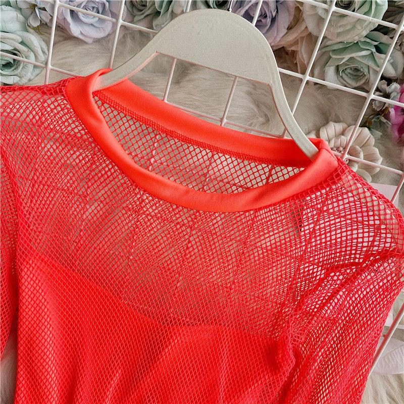 Флуоресцентный сексуальный лонгслив, пляжная футболка, европейский стиль