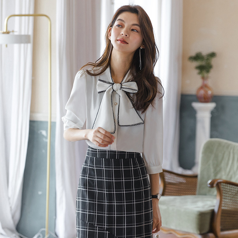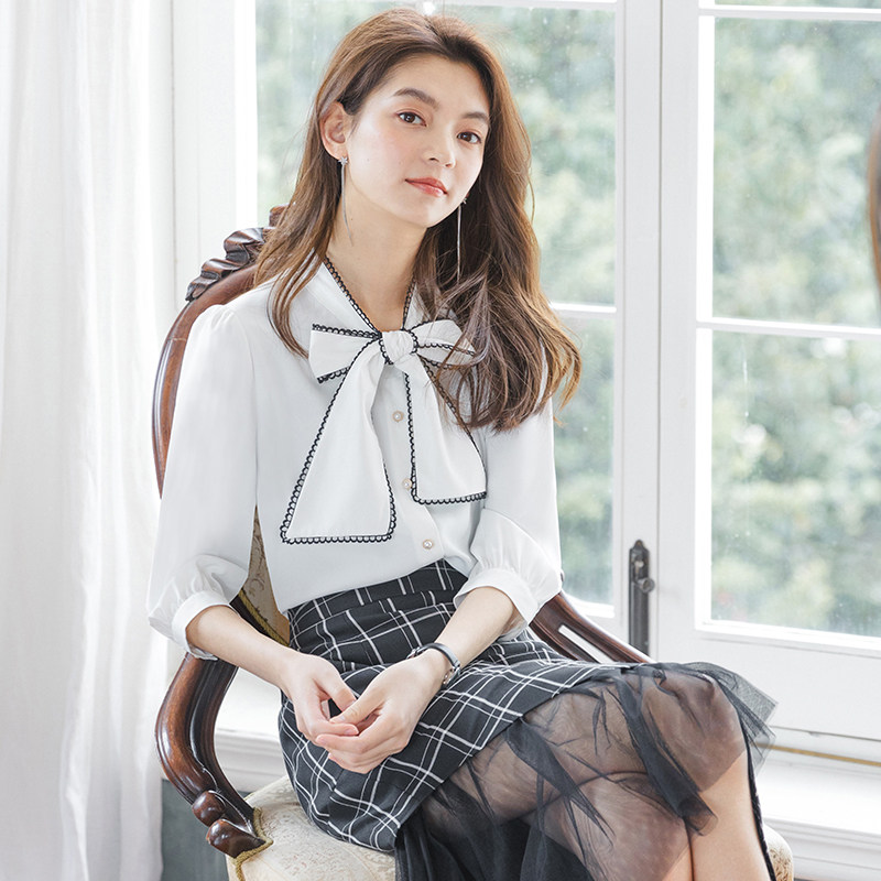 Дизайнерская летняя рубашка с бантиком, тренд сезона, в корейском стиле