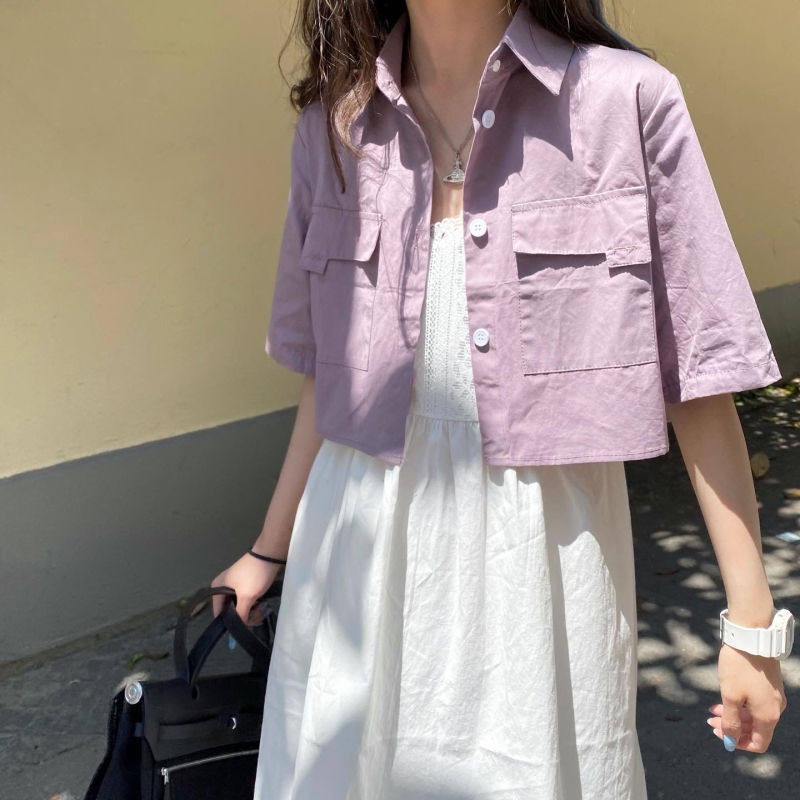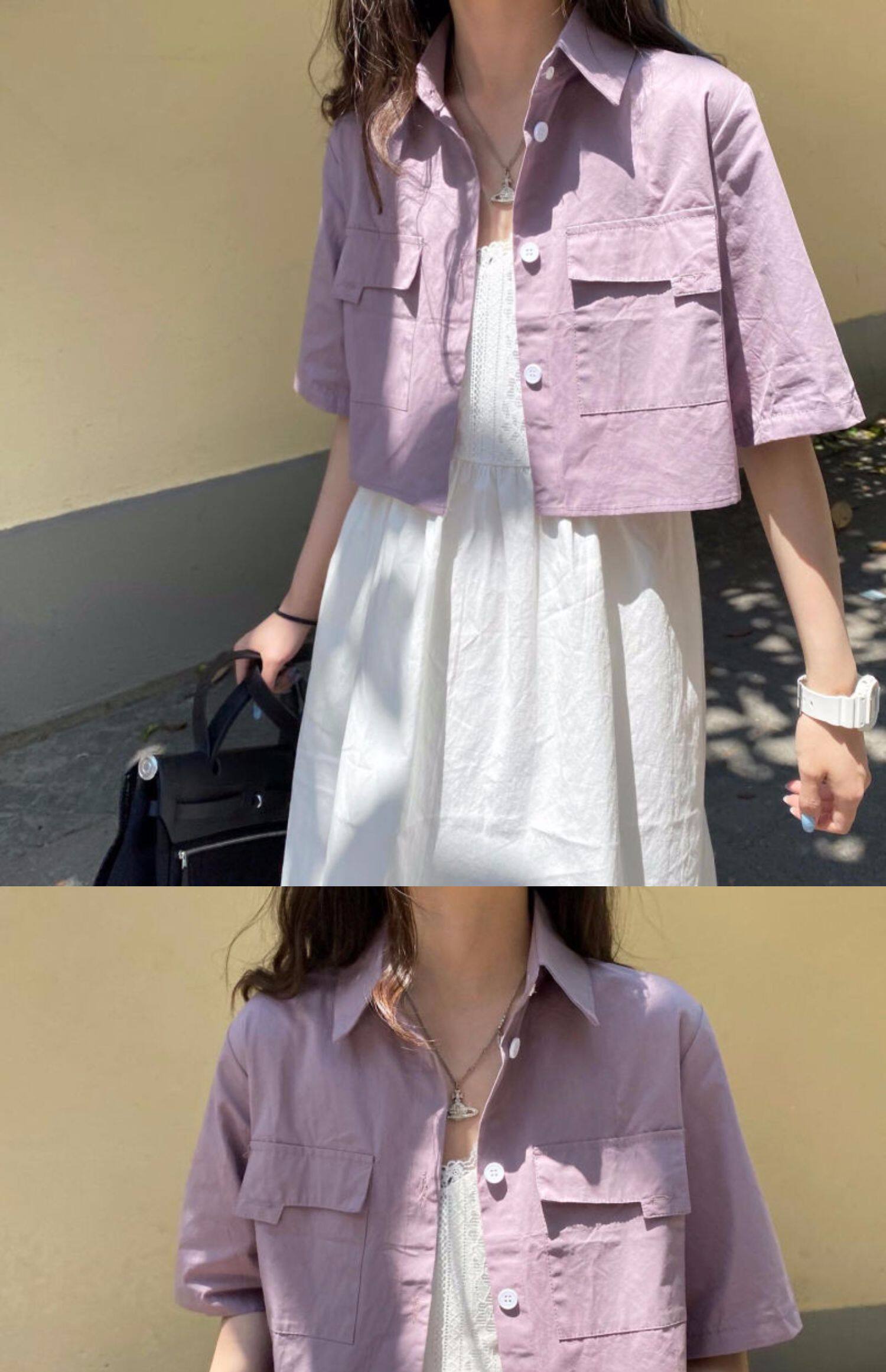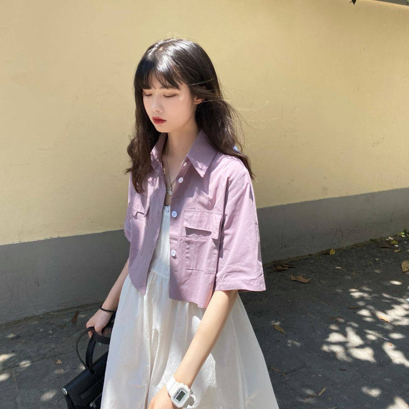 Японская школьная юбка для школьников и студентов, хлопковая короткая сиреневая рубашка