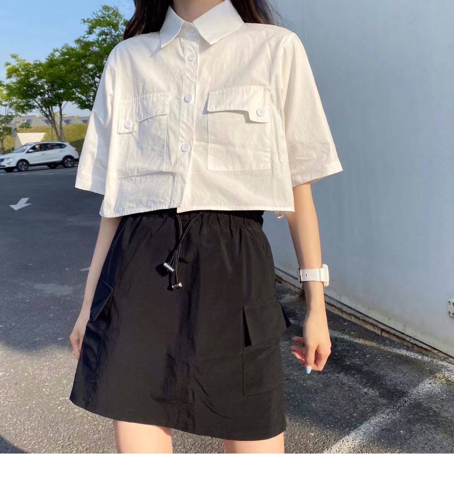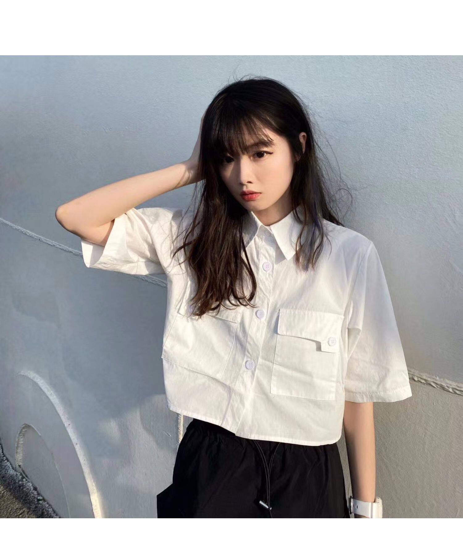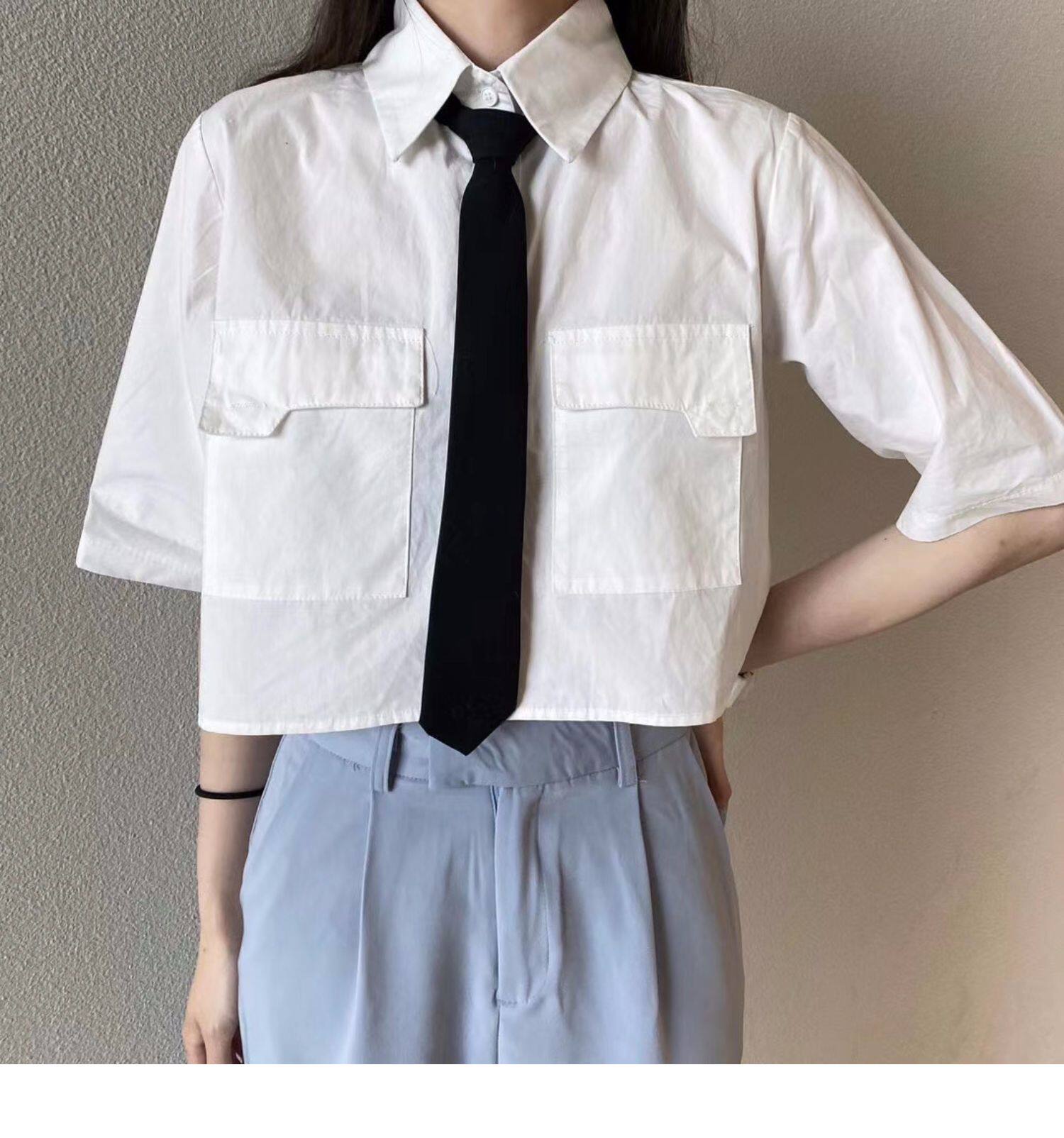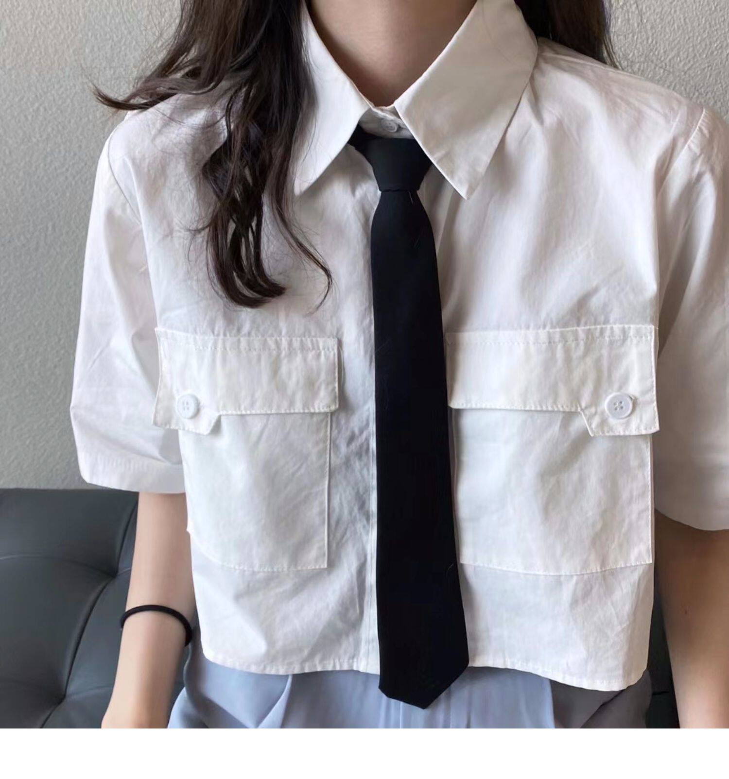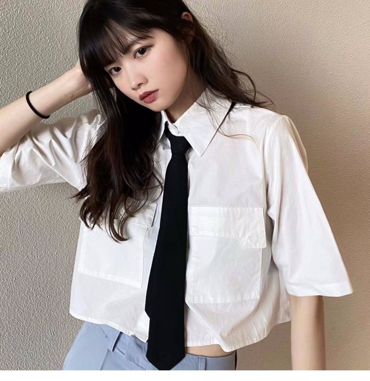 Японская короткая рубашка, белая небольшая дизайнерская униформа медсестры, тренд сезона, воротник поло