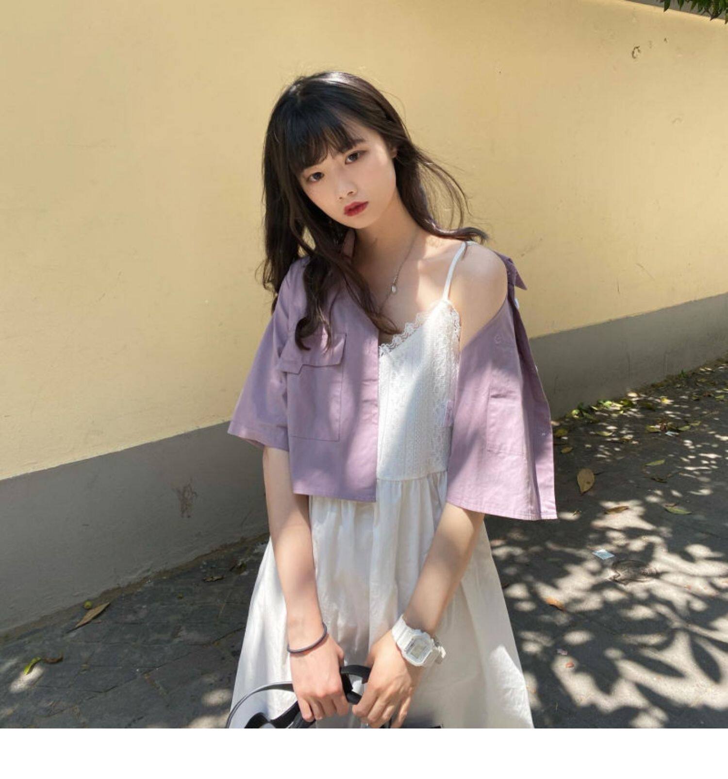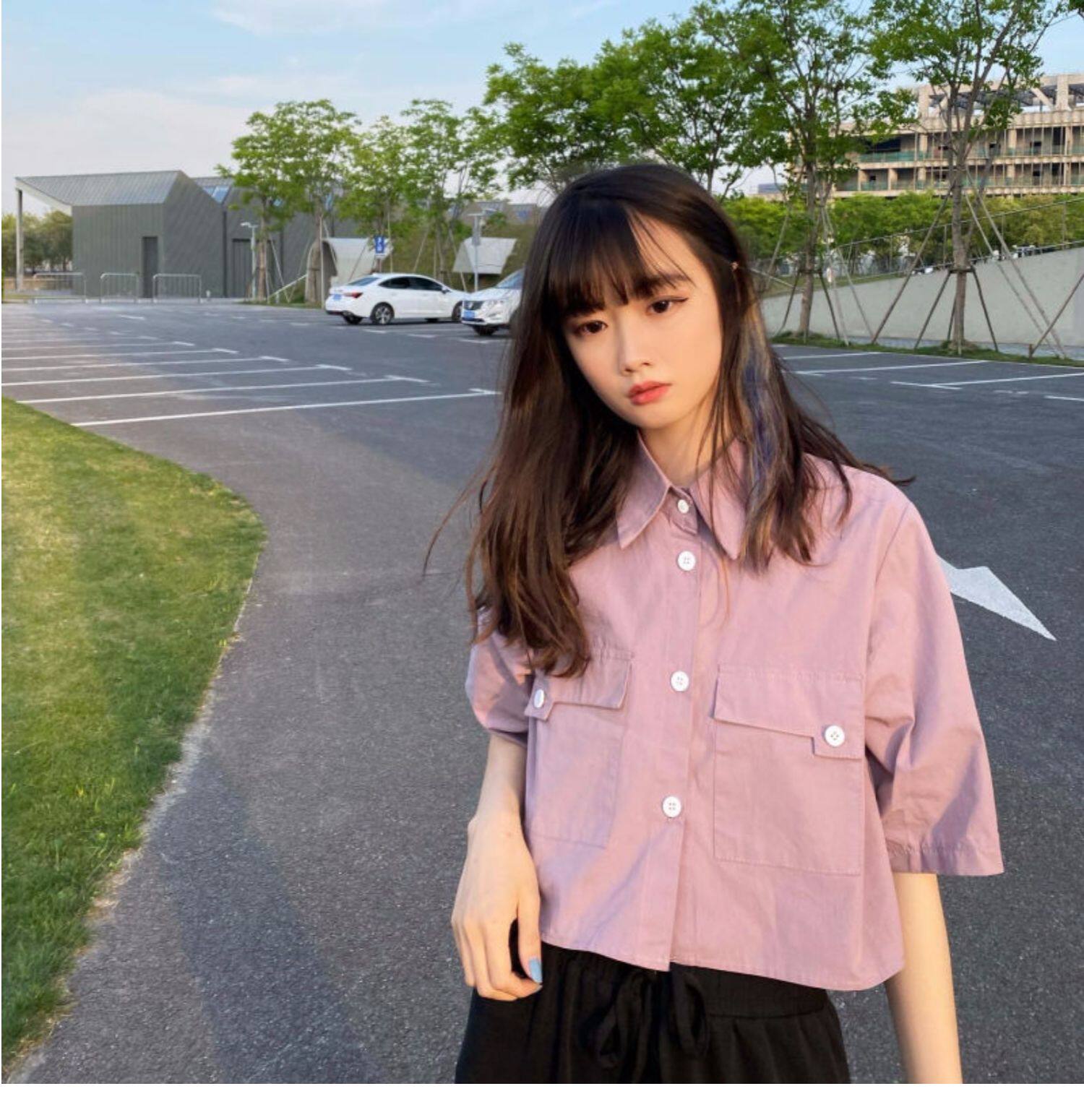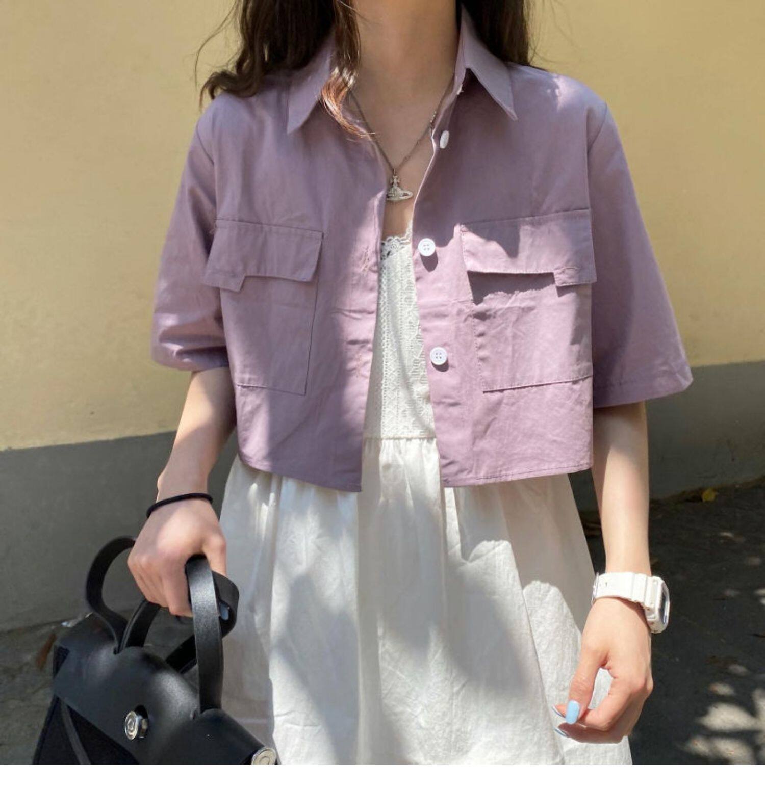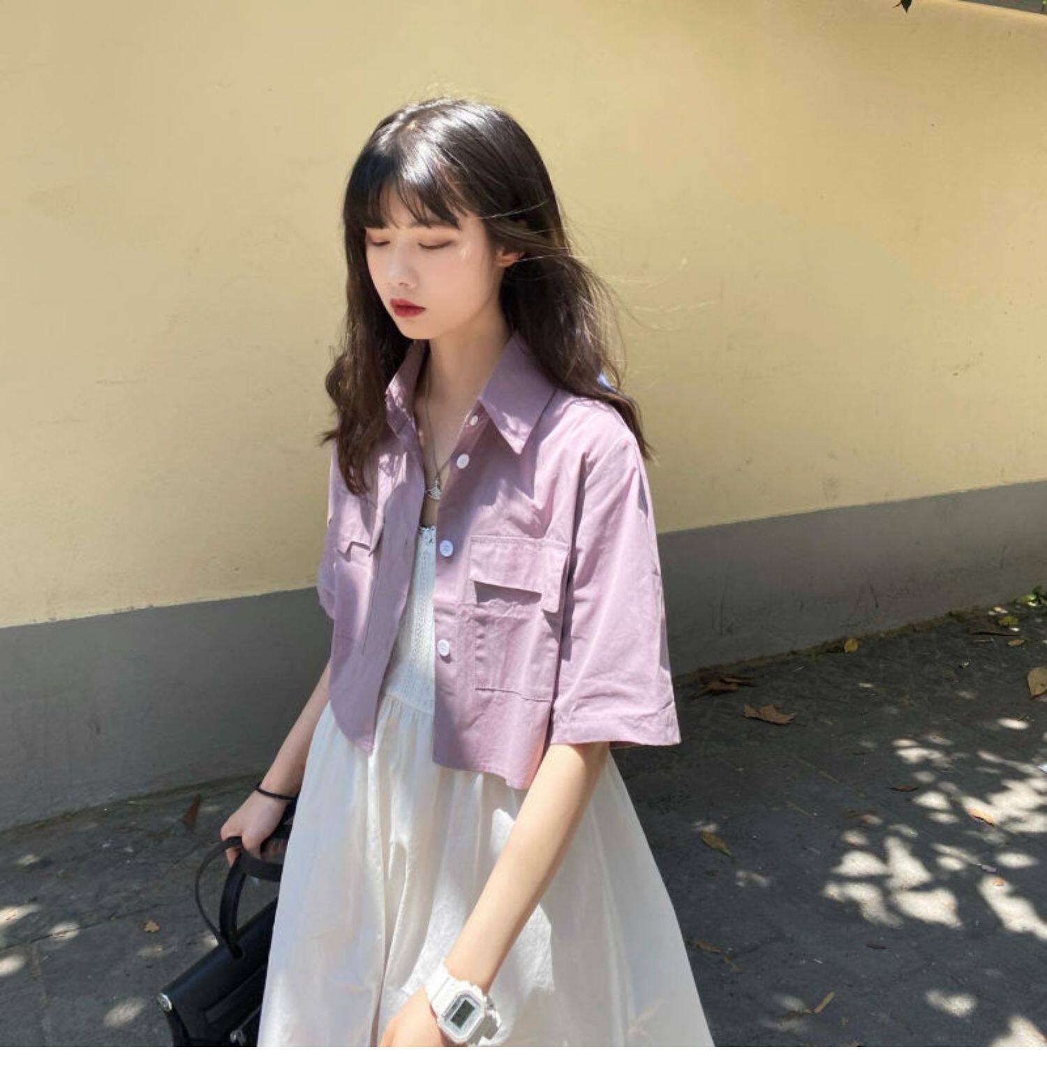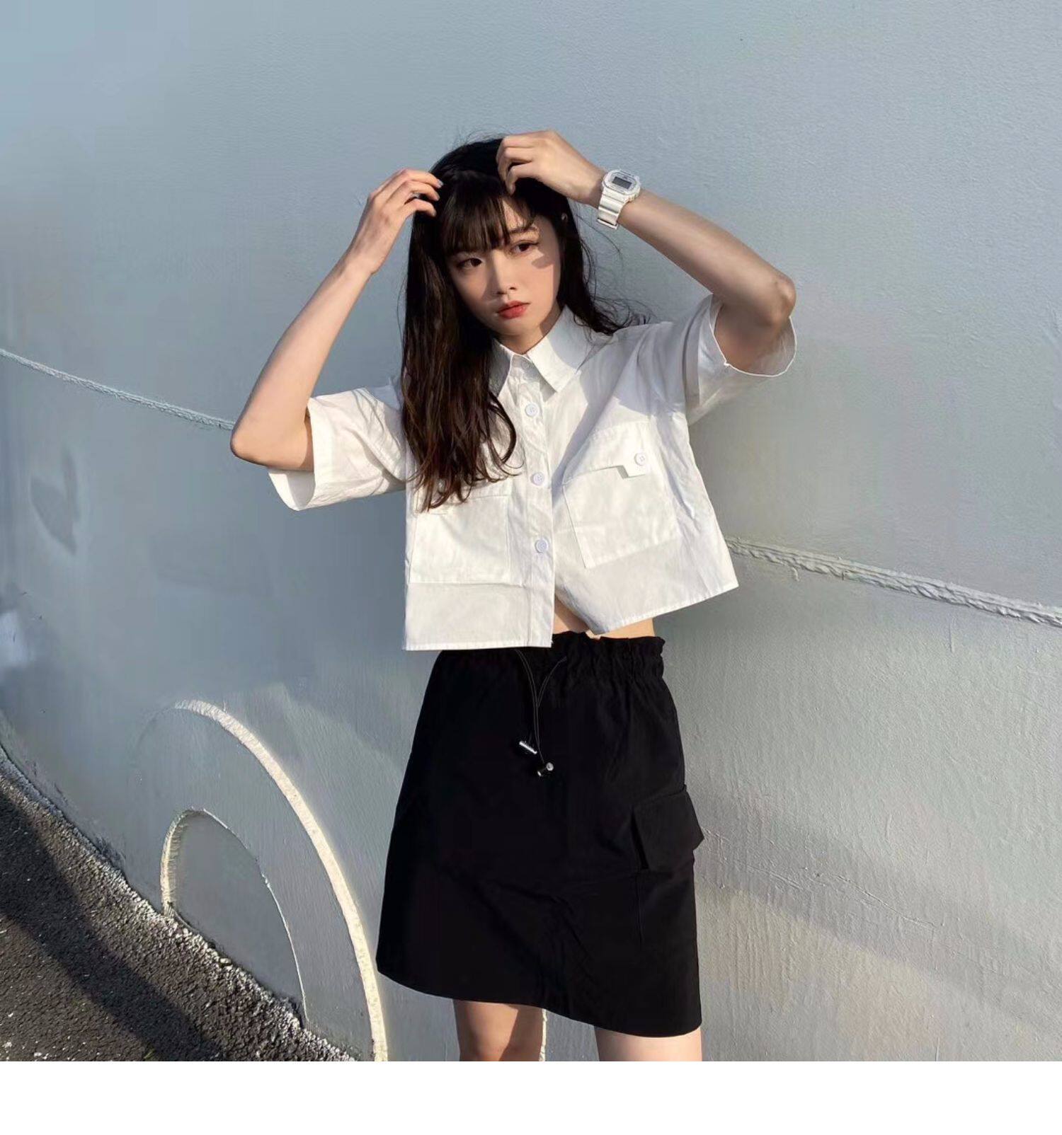 Японская короткая рубашка, белая небольшая дизайнерская униформа медсестры, тренд сезона, воротник поло