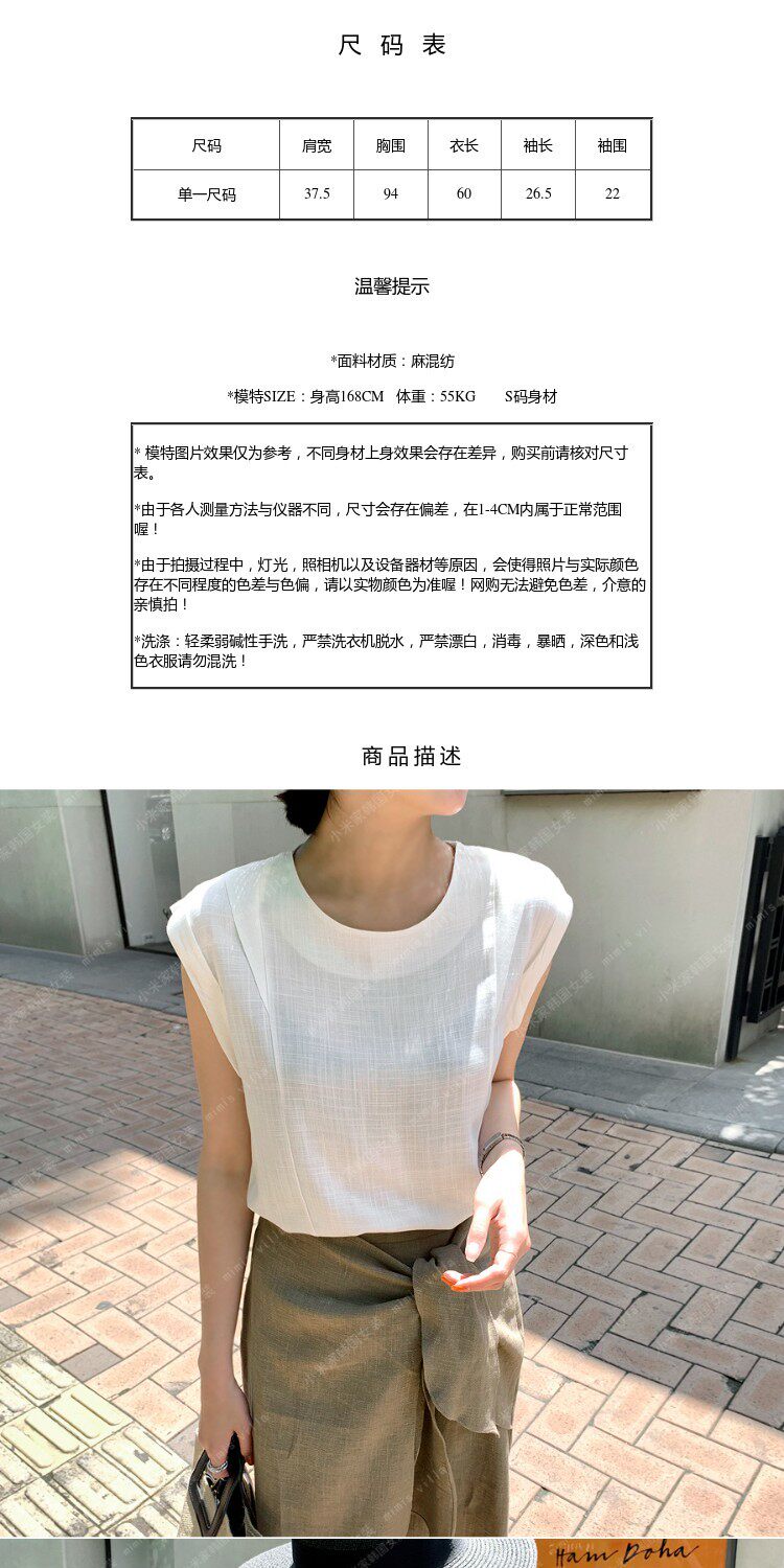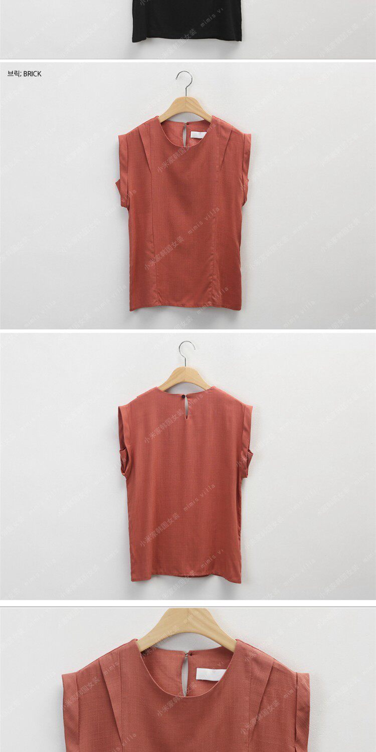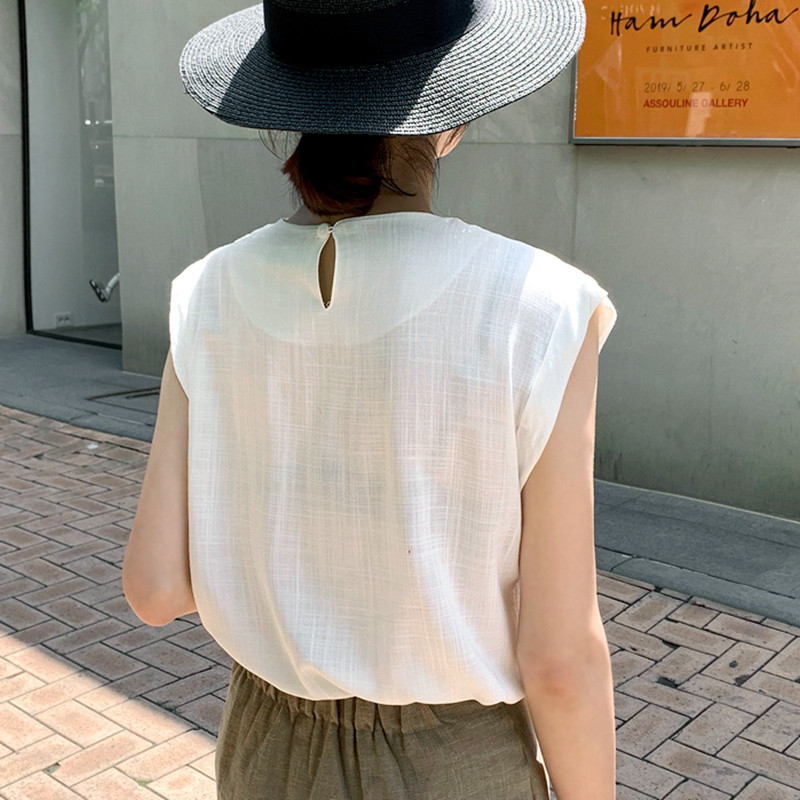 Хлопковая летняя рубашка с круглым воротником без рукавов, 2023, облегающий крой
