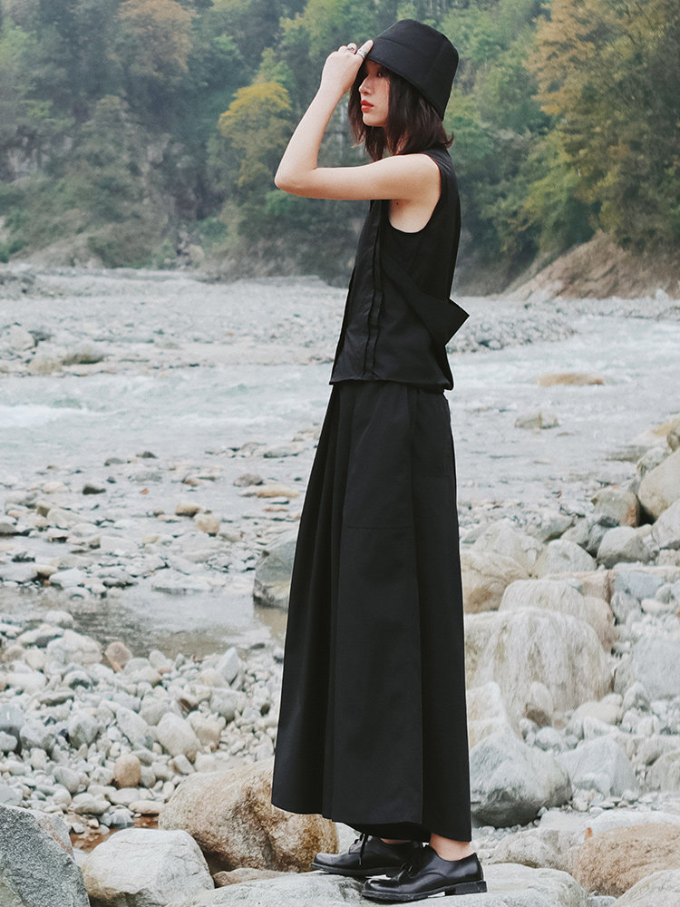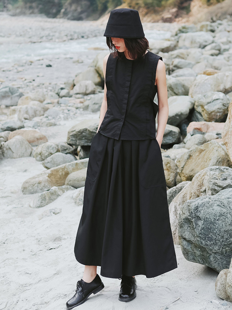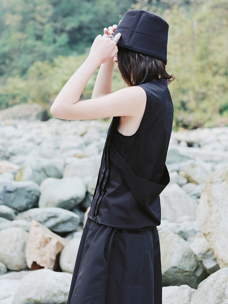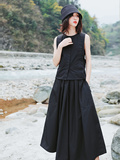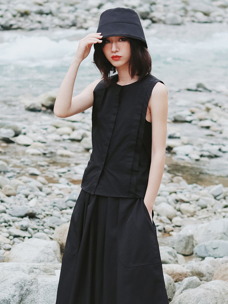 Черная ретро небольшая дизайнерская рубашка без рукавов, тренд сезона