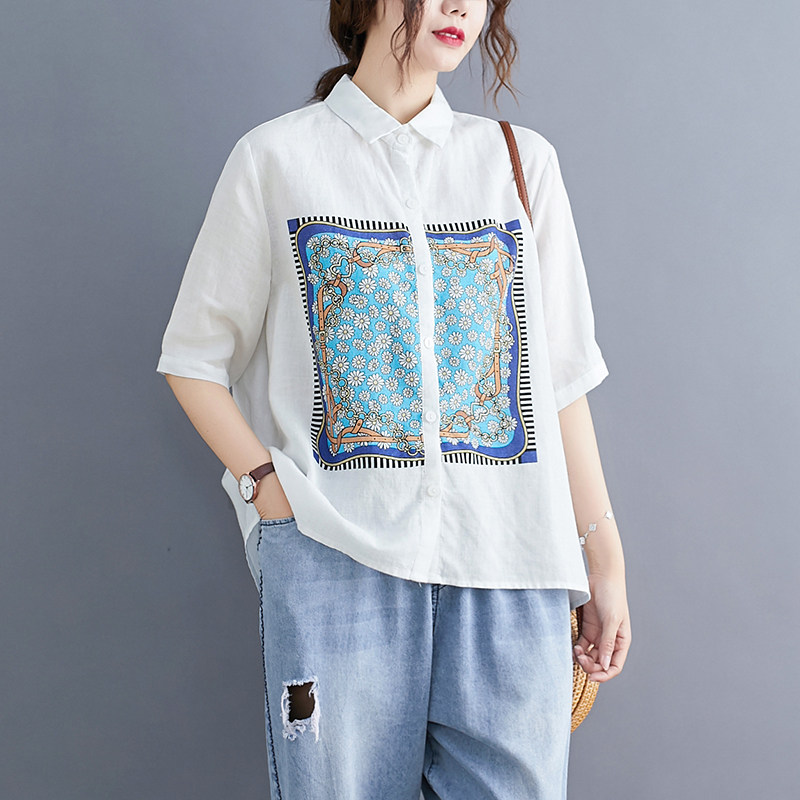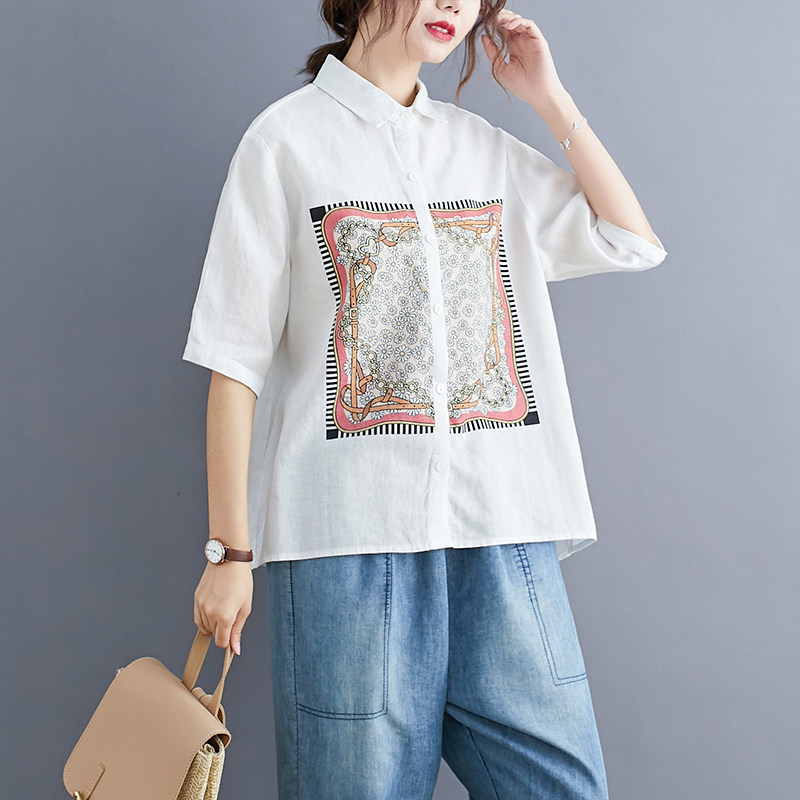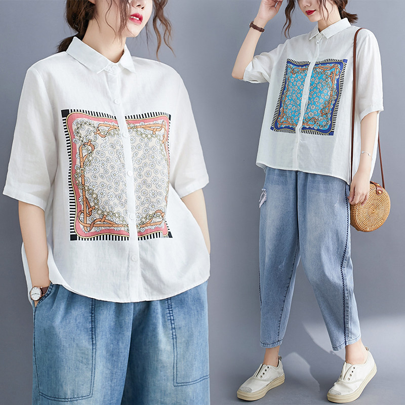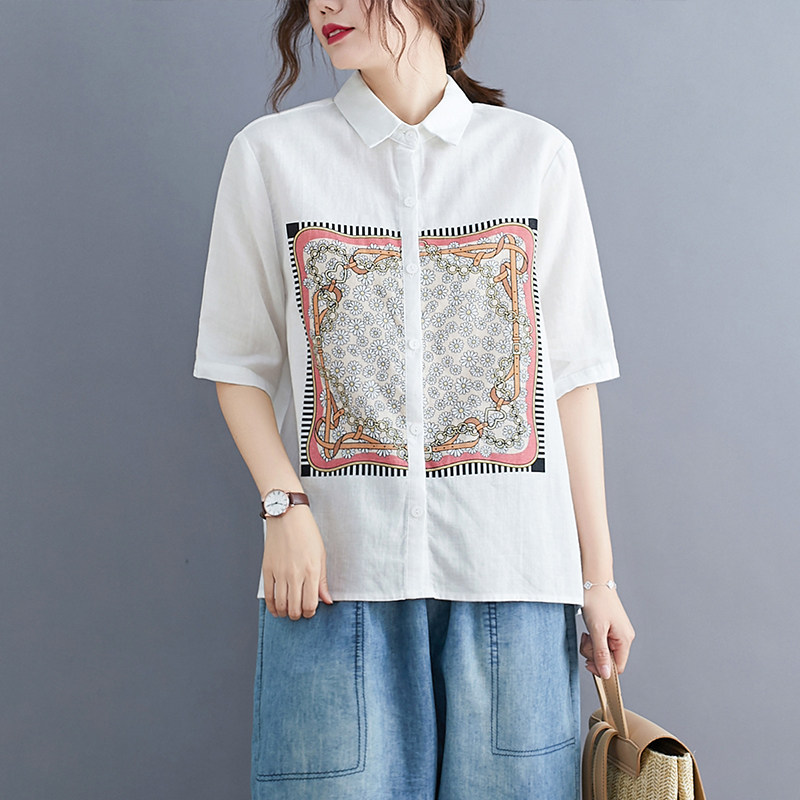 Летняя одежда, рубашка, коллекция 2023, в западном стиле, короткий рукав, оверсайз, из хлопка и льна