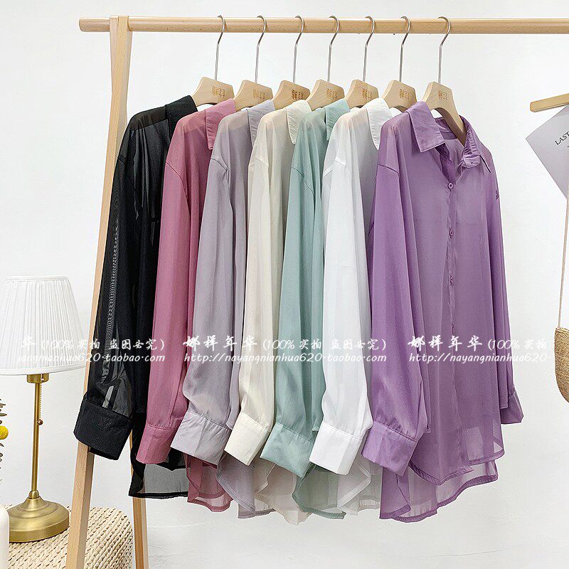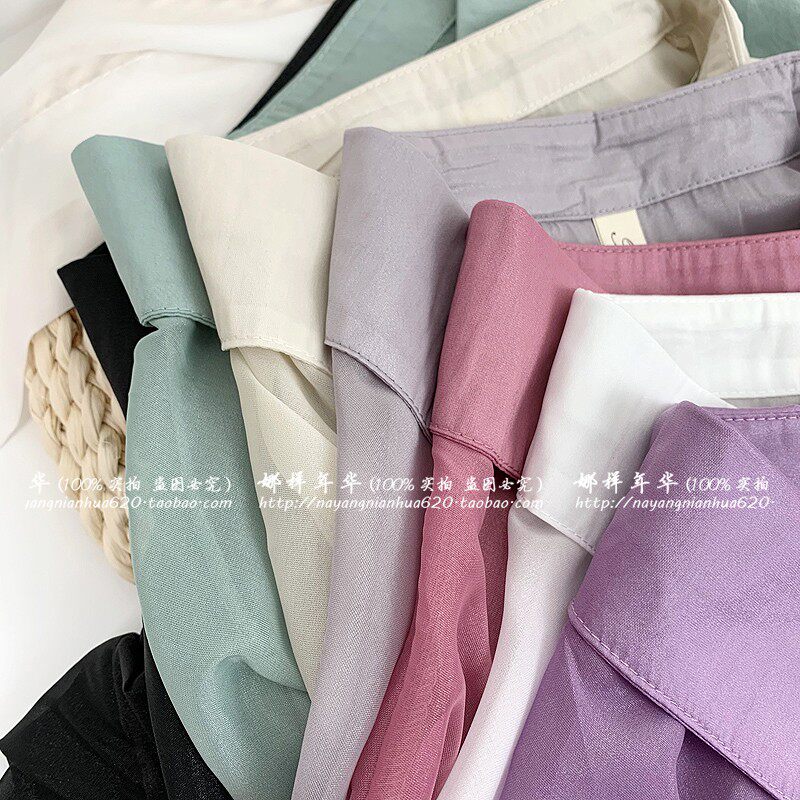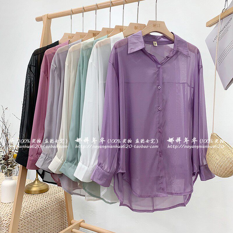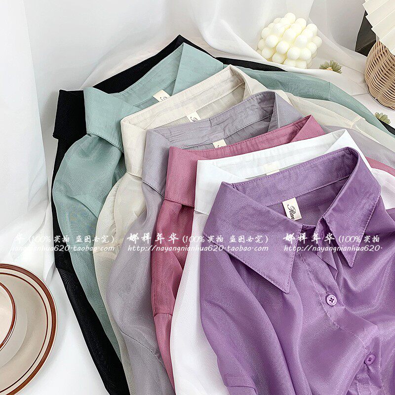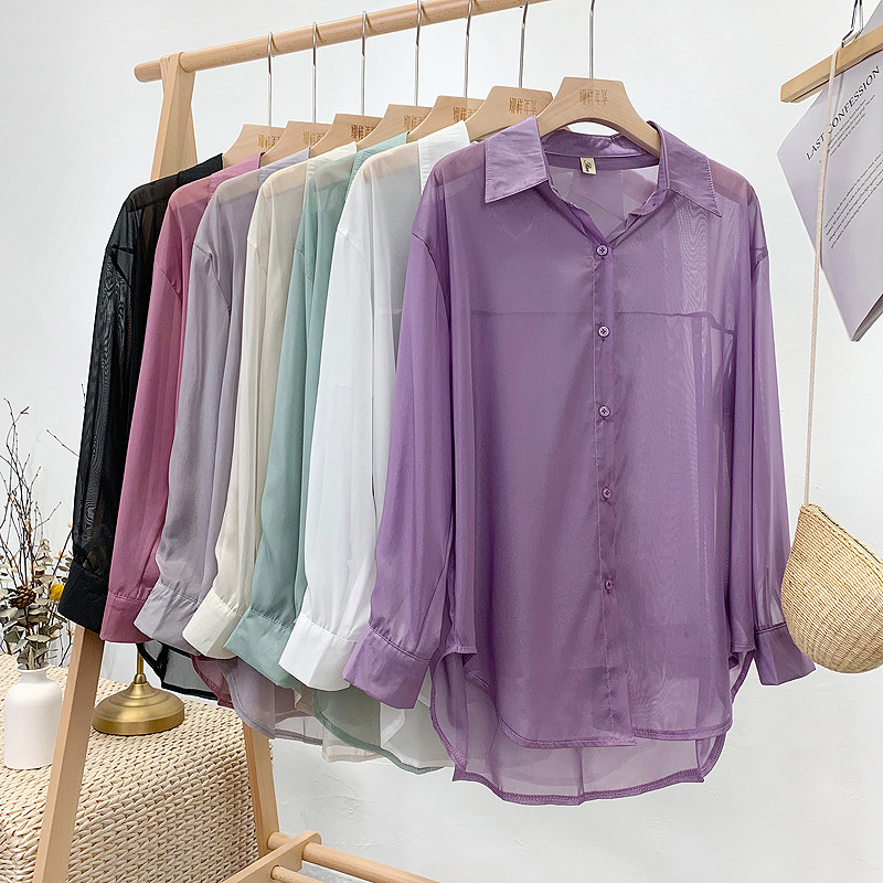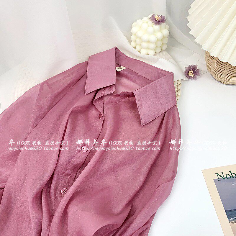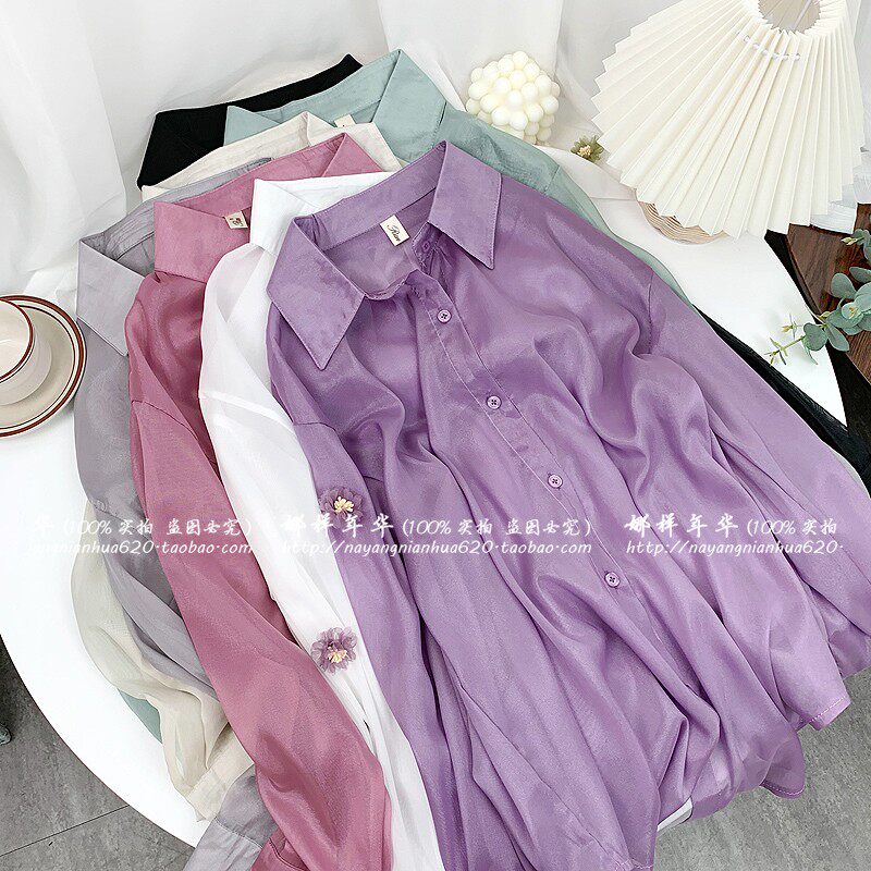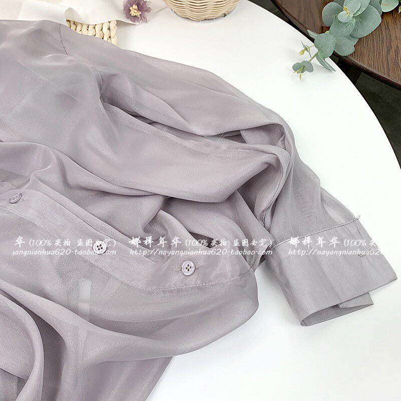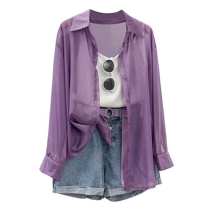 Шелковая сиреневая дизайнерская тонкая рубашка, свободный крой, защита от солнца, французский стиль, тренд сезона