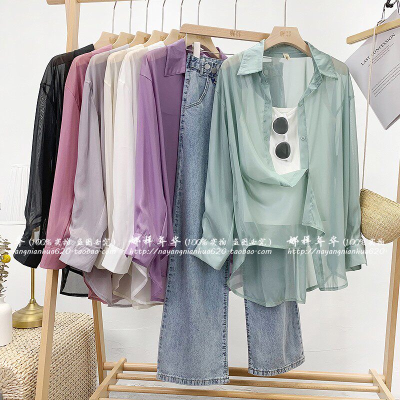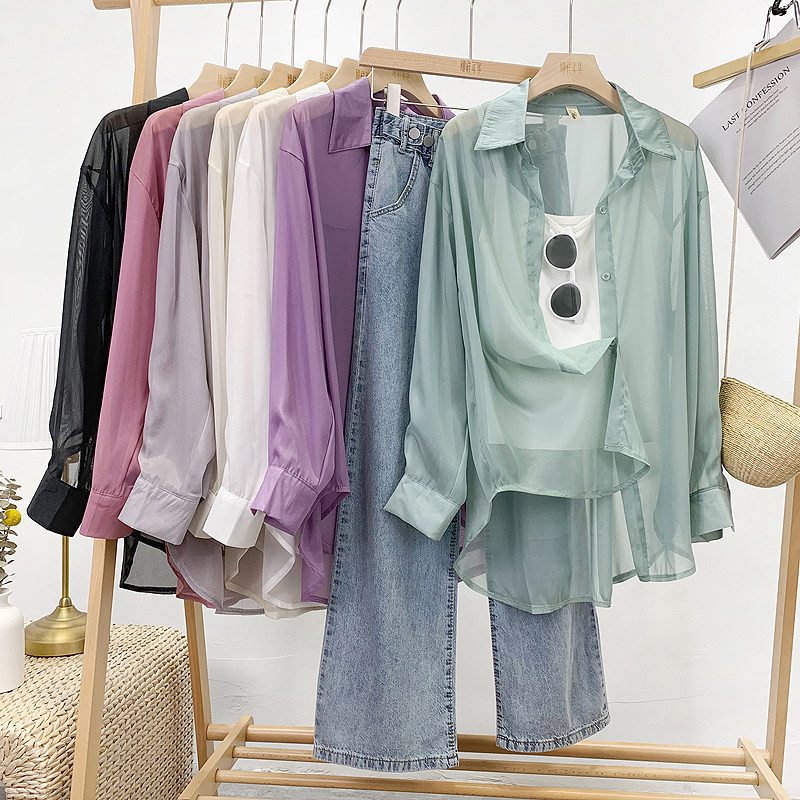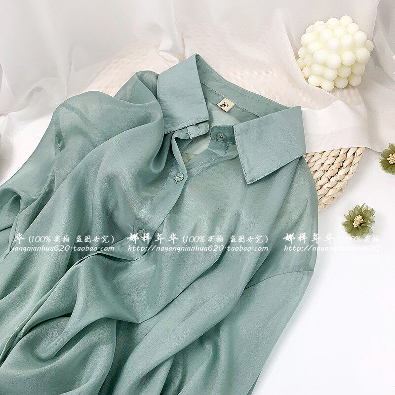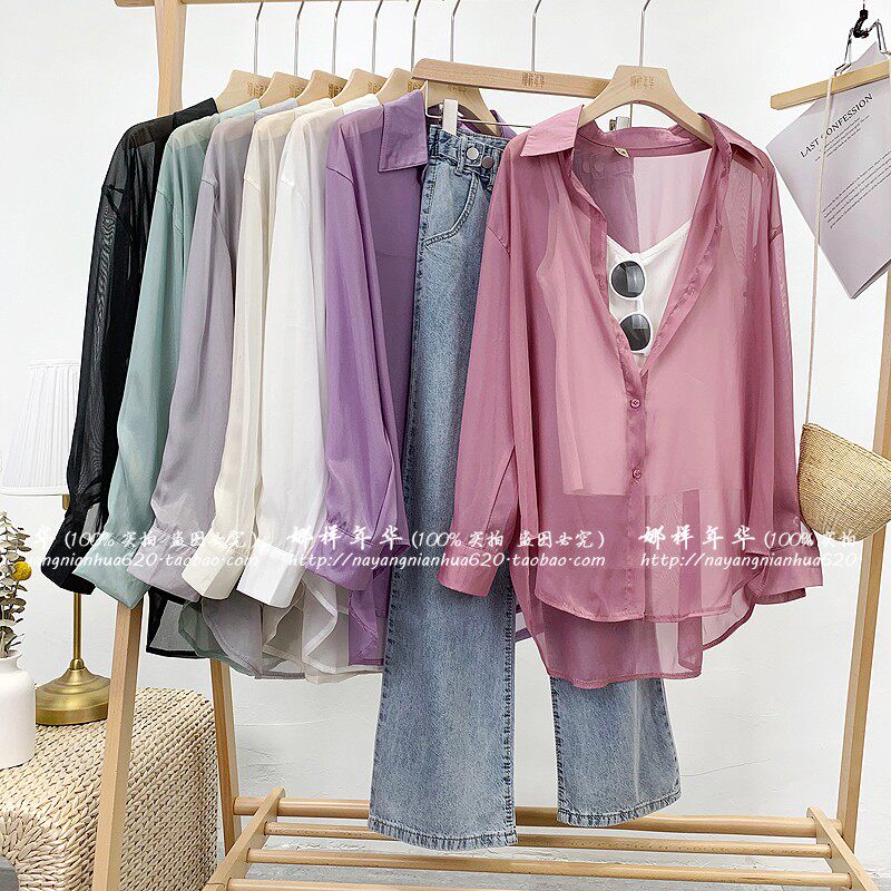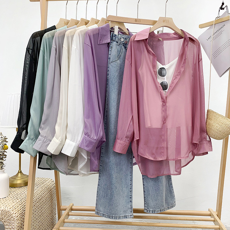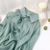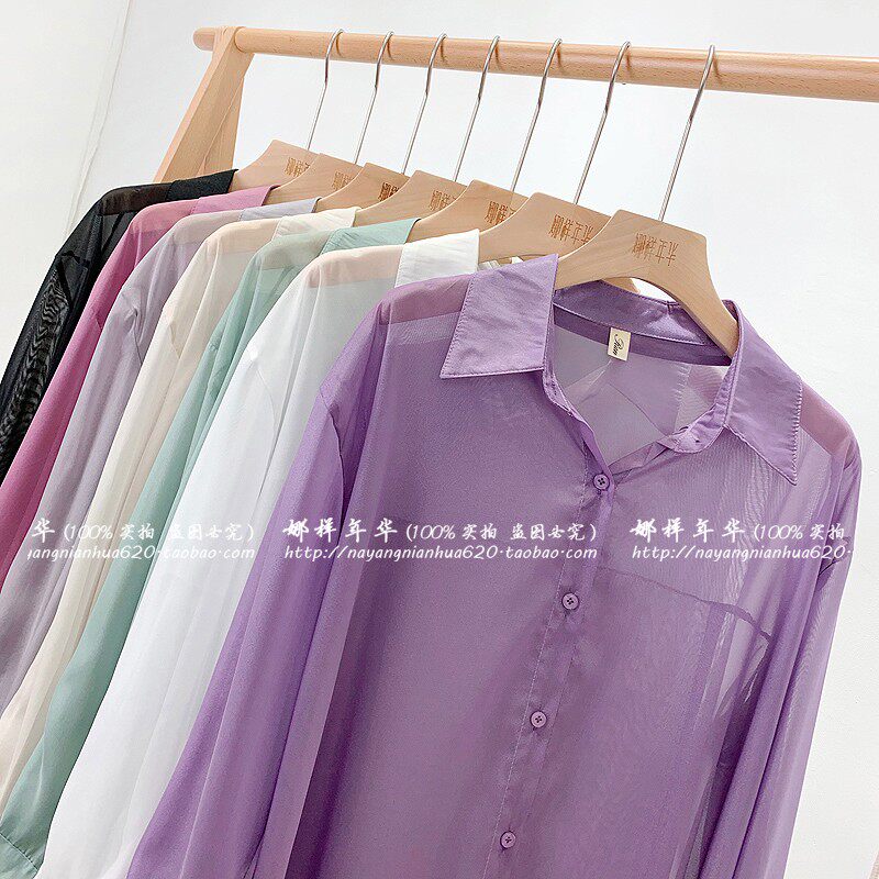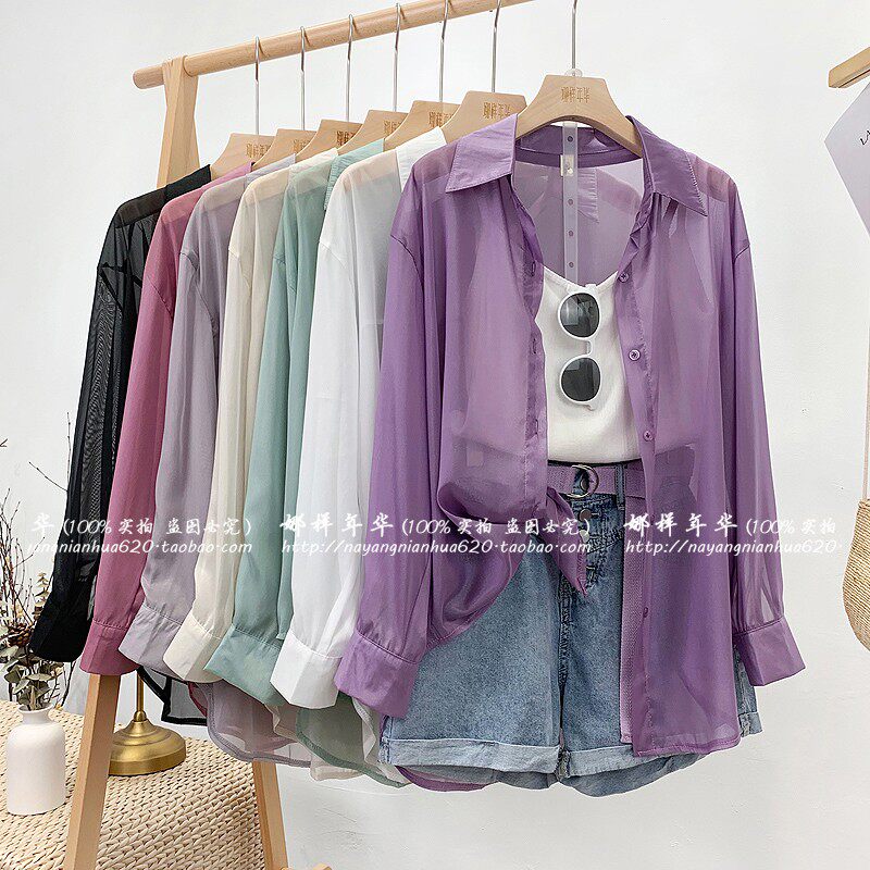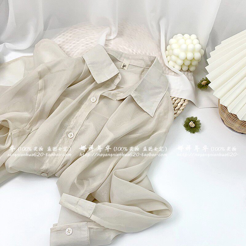 Шелковая сиреневая дизайнерская тонкая рубашка, свободный крой, защита от солнца, французский стиль, тренд сезона