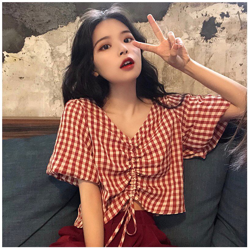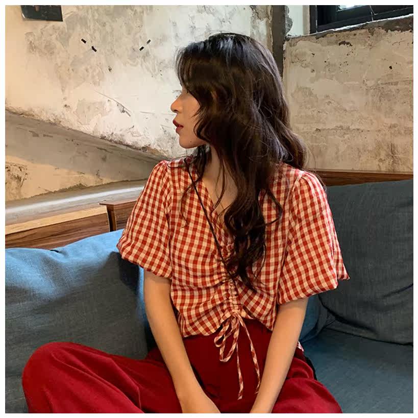 Летняя трюфельная короткая дизайнерская рубашка, в корейском стиле, 2020, на шнурках, свободный крой, тренд сезона