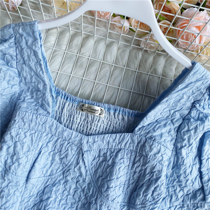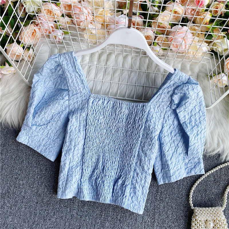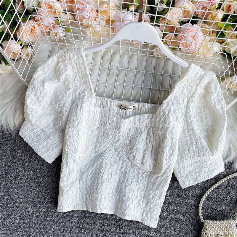 Футболка, короткий фонарь, приталенная рубашка, корсет, французский стиль, квадратный вырез, рукава фонарики, в западном стиле