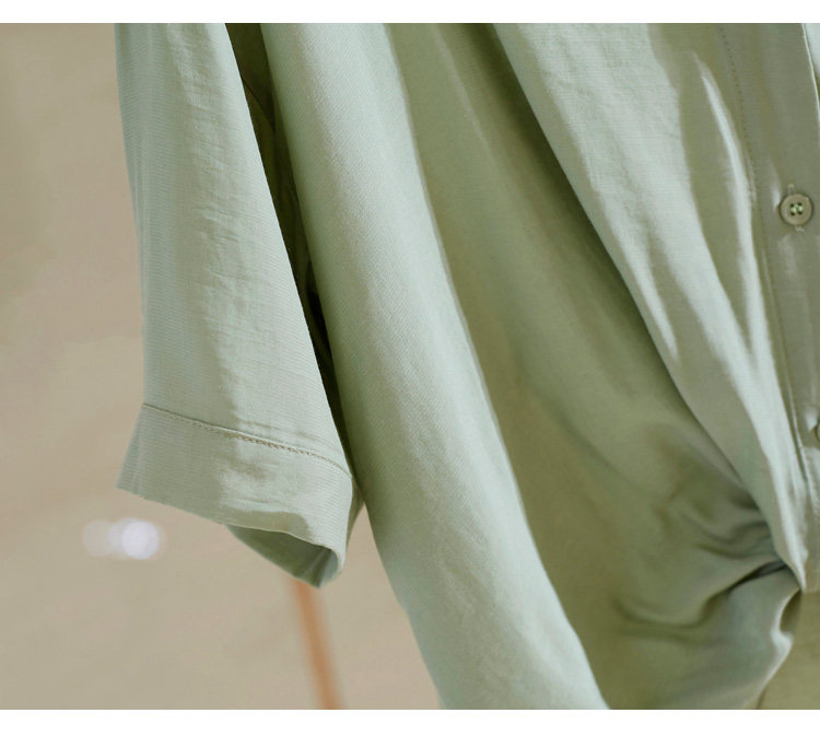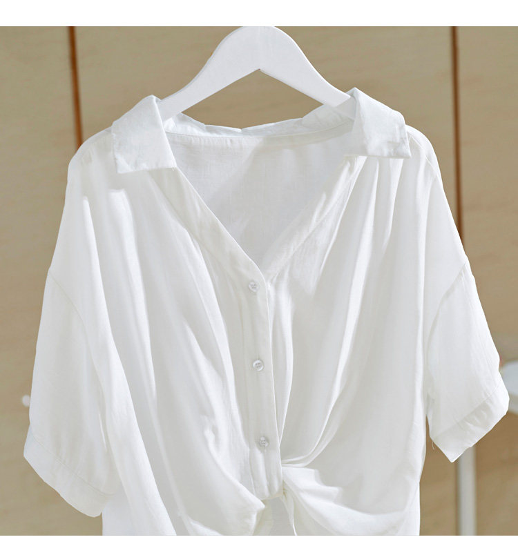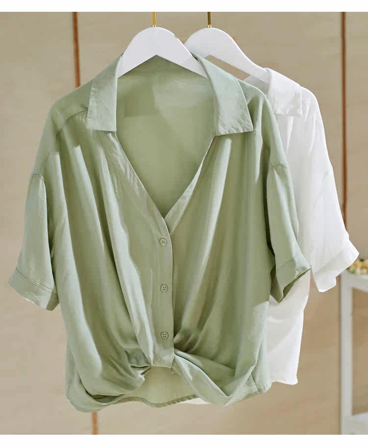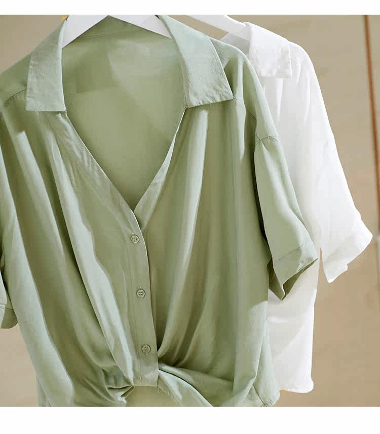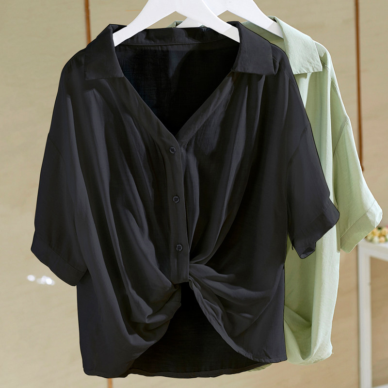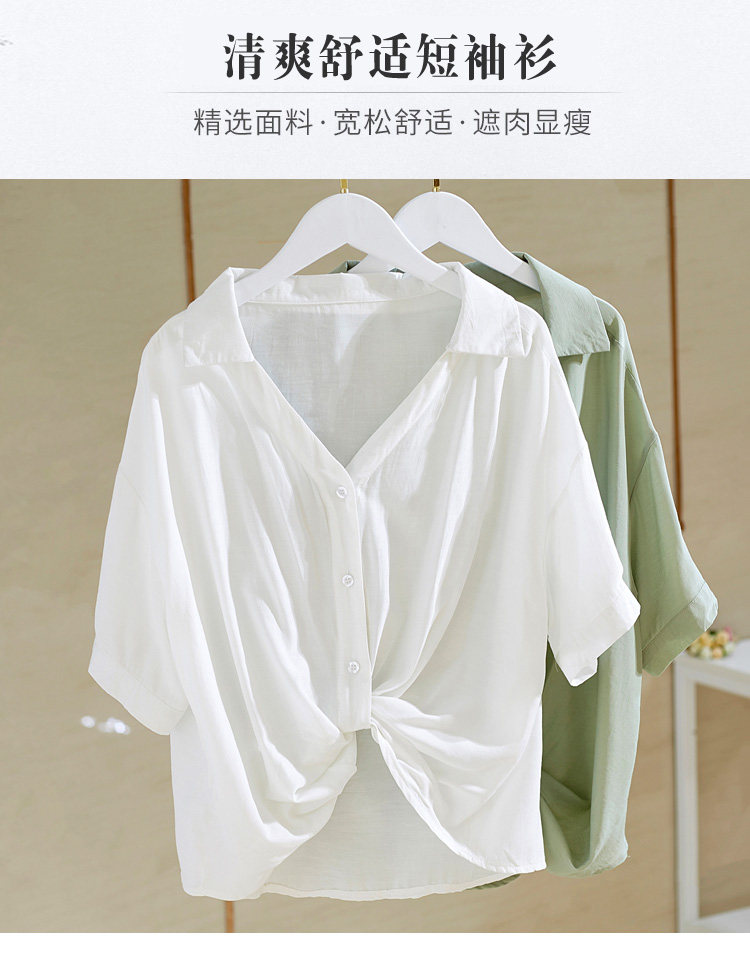 Рубашка, V-образный вырез, короткий рукав, 2022, свободный крой