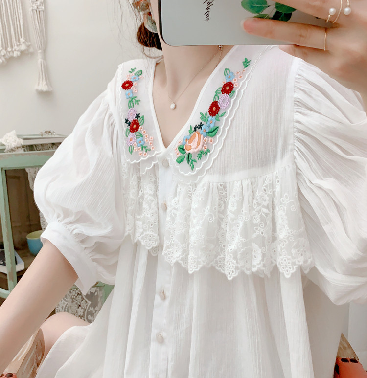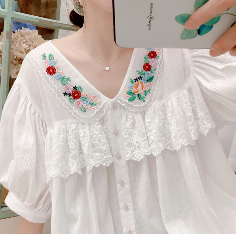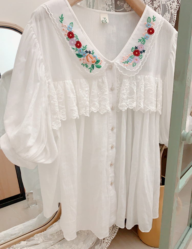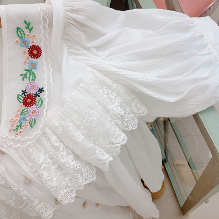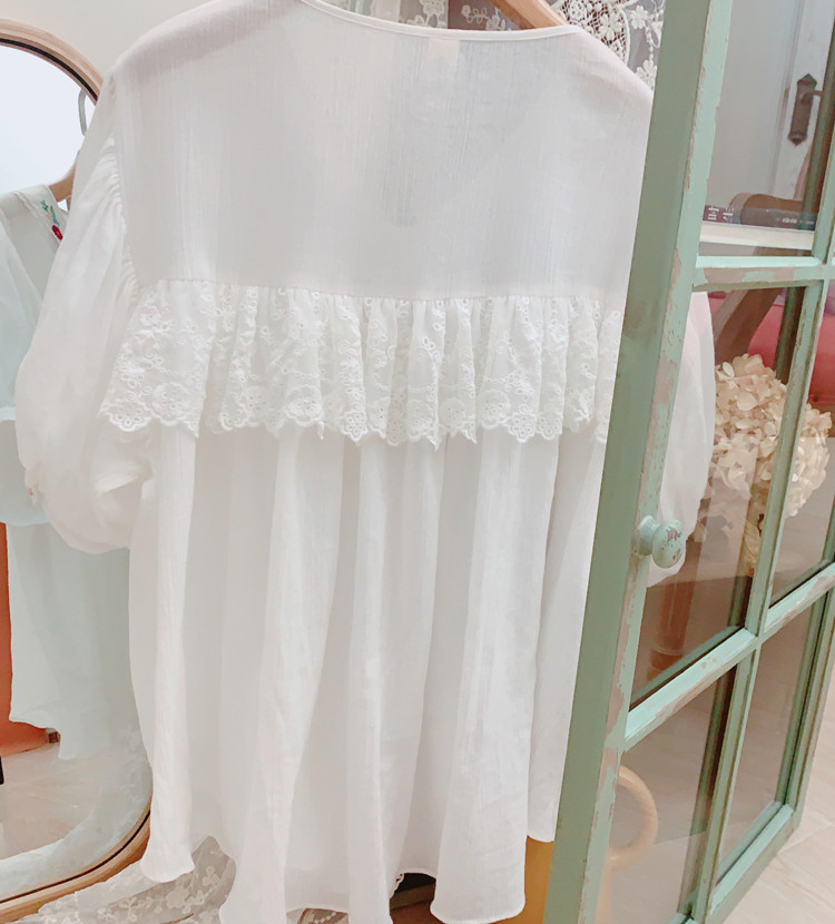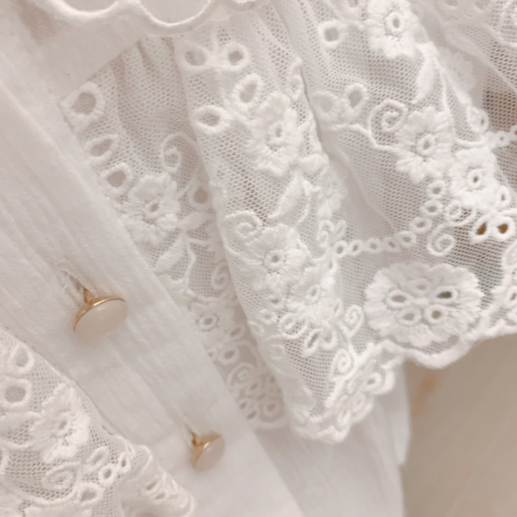 В сочетании с вышитым воротником из стеклянной марли это очень свежо и по-мори-девчачьи.Спереди и сзади есть кружево.