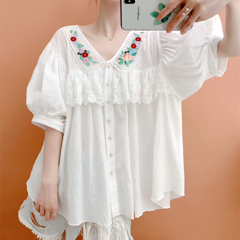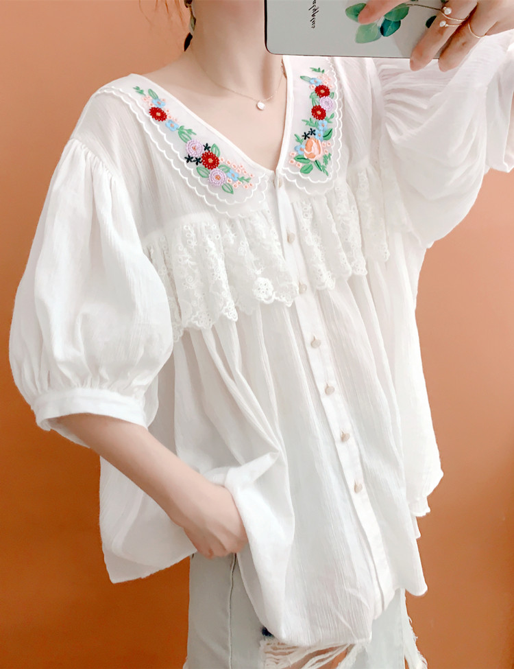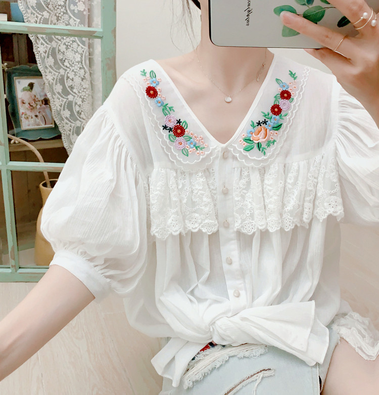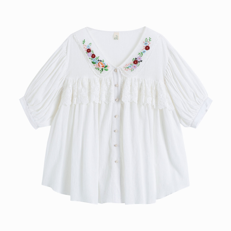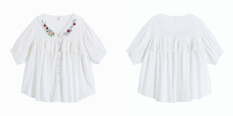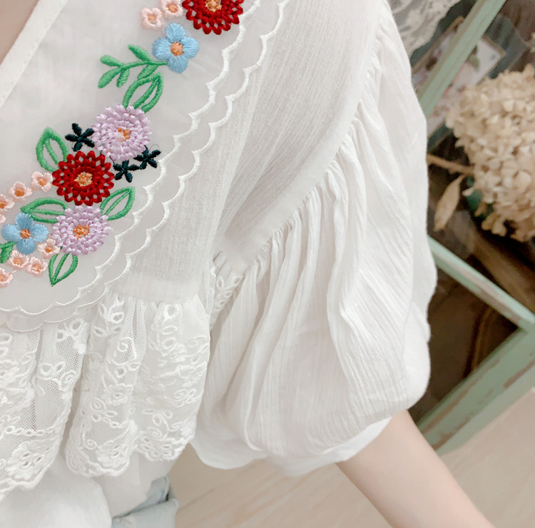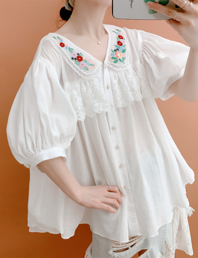 В сочетании с вышитым воротником из стеклянной марли это очень свежо и по-мори-девчачьи.Спереди и сзади есть кружево.