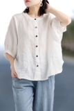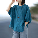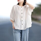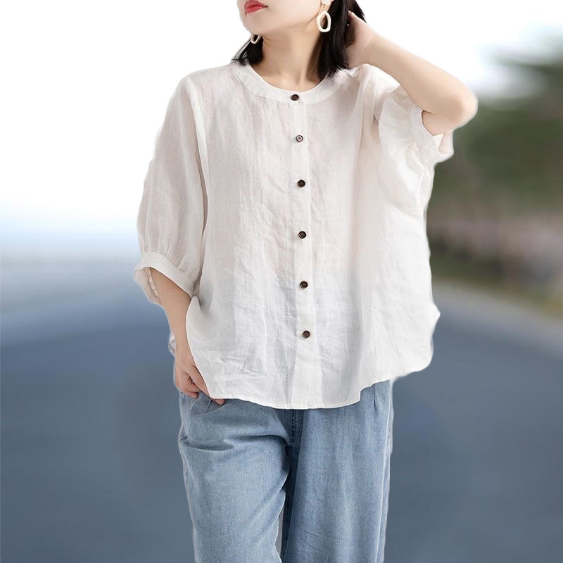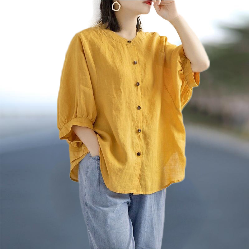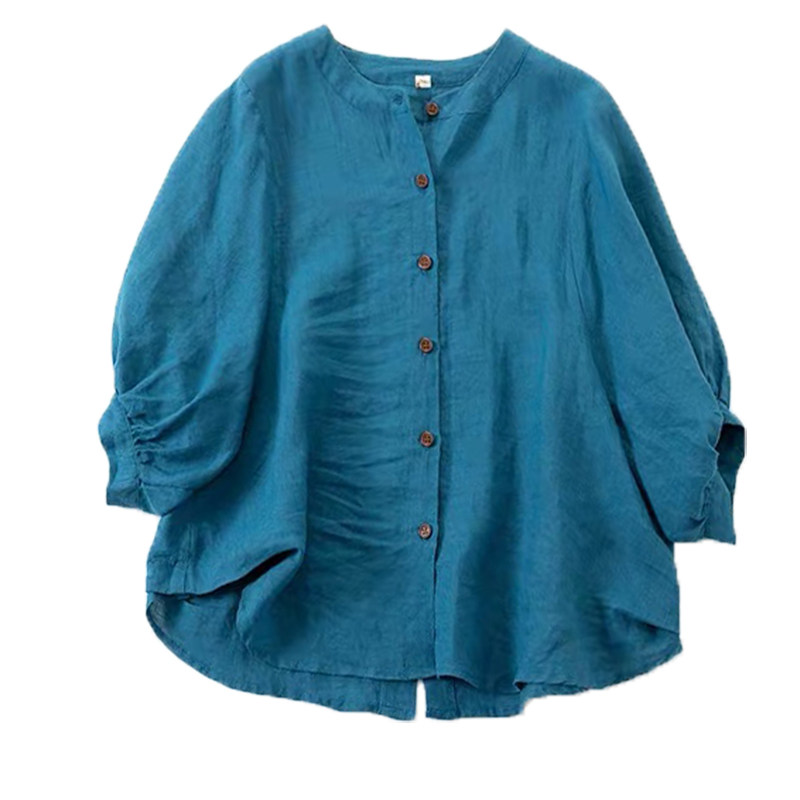 Ретро рубашка, фонарь, футболка, большой размер, из хлопка и льна, свободный крой