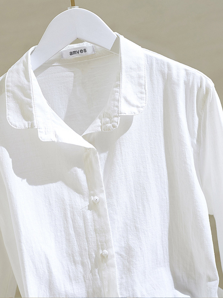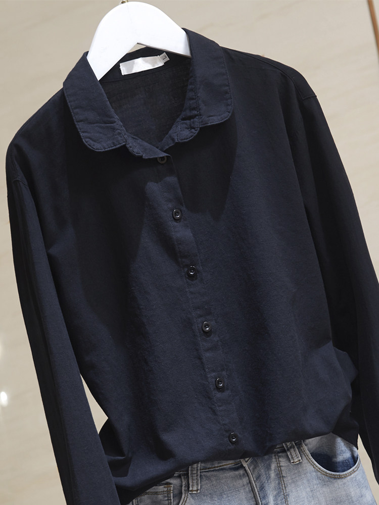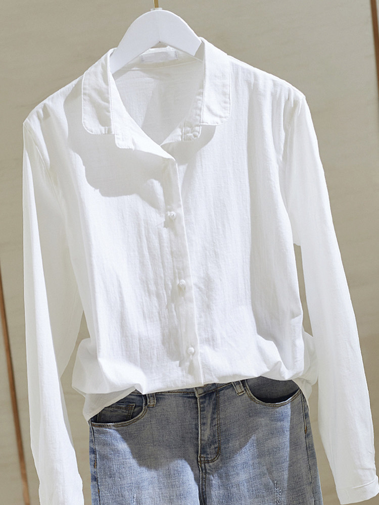 Рубашка, весенний сексуальный хлопковый лонгслив, из хлопка и льна, оверсайз, в западном стиле