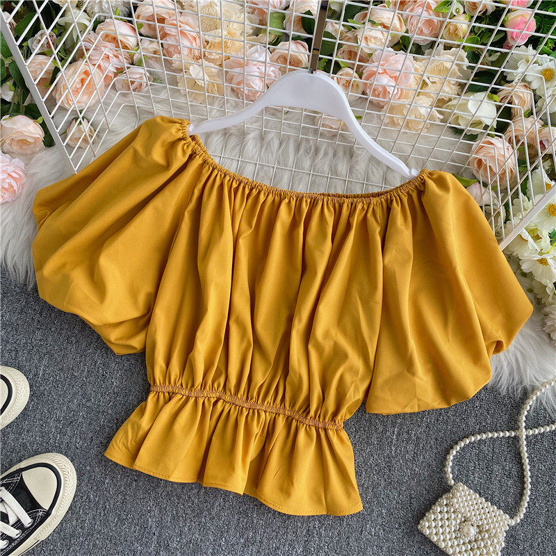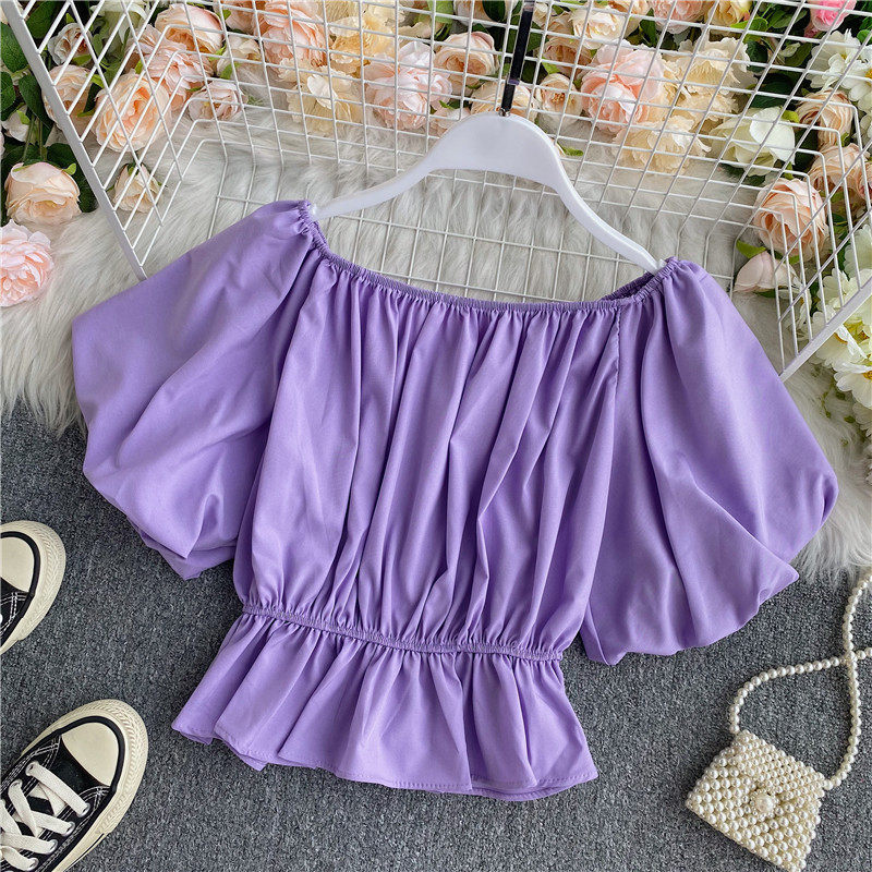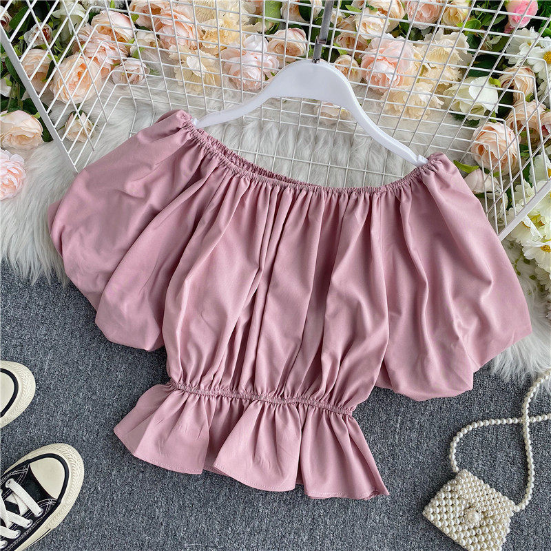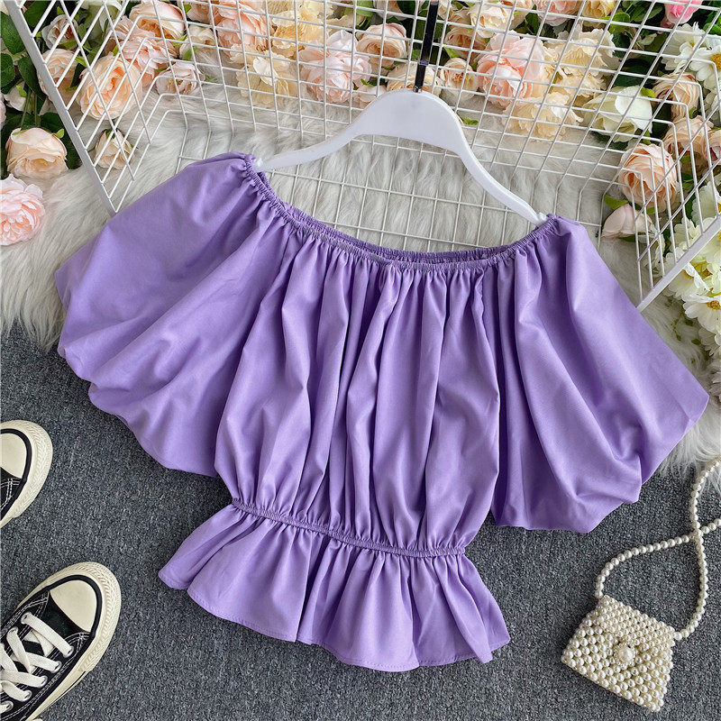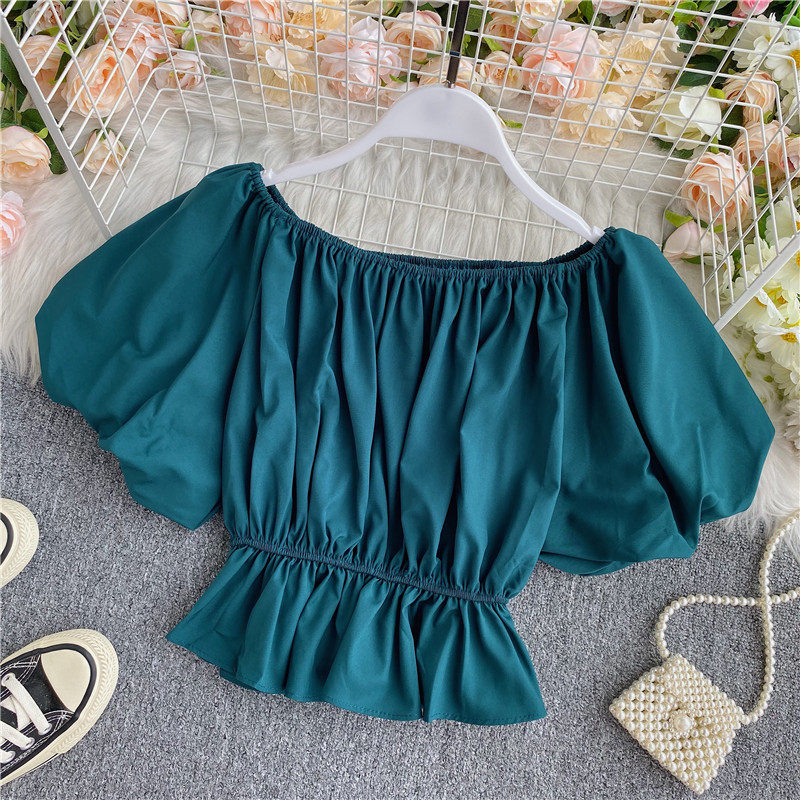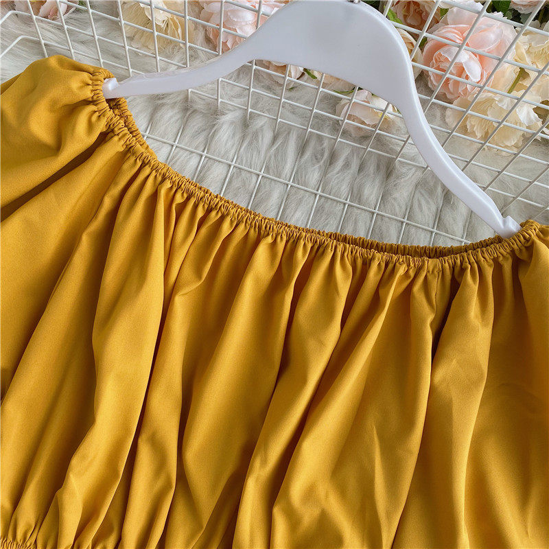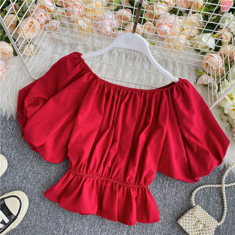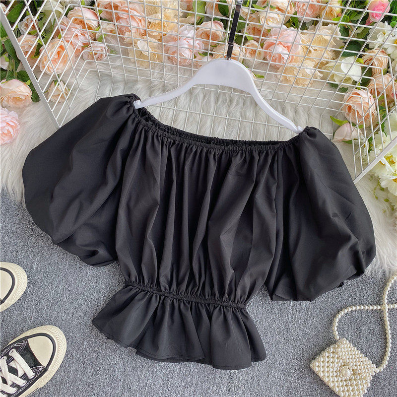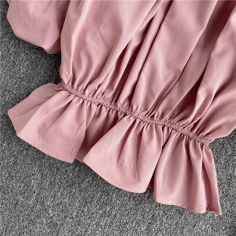 Сексуальный корсет, короткая рубашка, рукава фонарики, открытые плечи