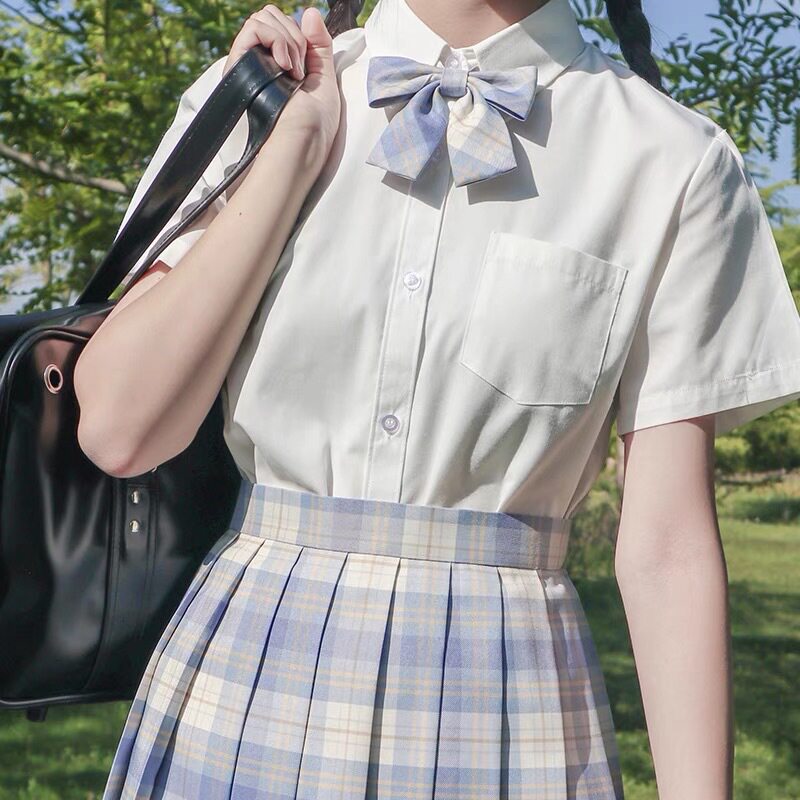 Студенческая юбка в складку, базовая японская рубашка, милая форма для школьников и студентов, короткий рукав