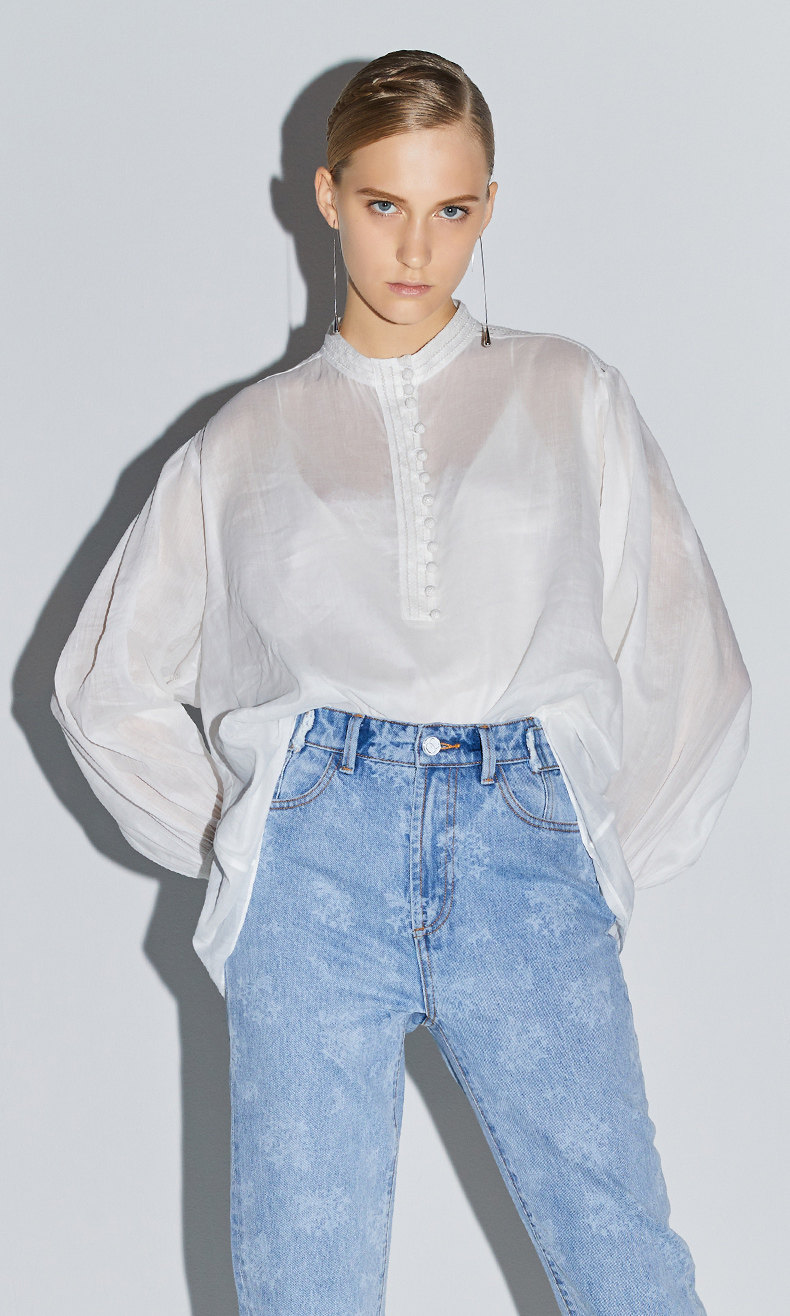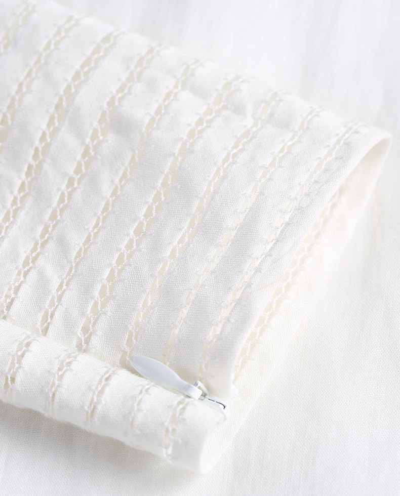 Оригинальная экологическая ткань Рами выбрана, которая может поглощать вредные вещества, имеет прохладную текстуру и устойчивую к износу текстуру, интерпретируя чистое и естественное отношение к моде.