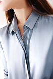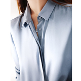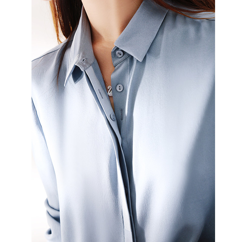 Шелковая синяя рубашка, с вышивкой