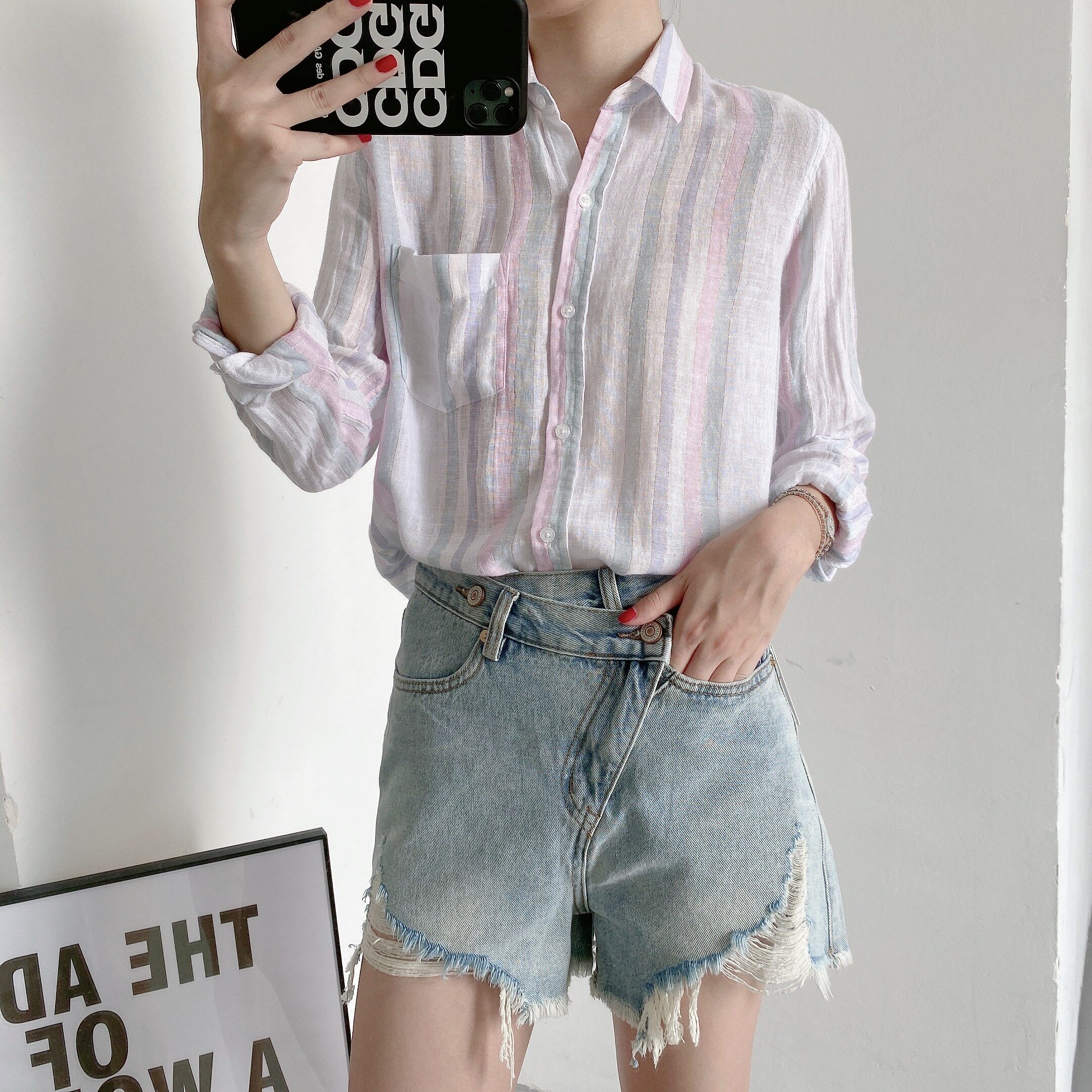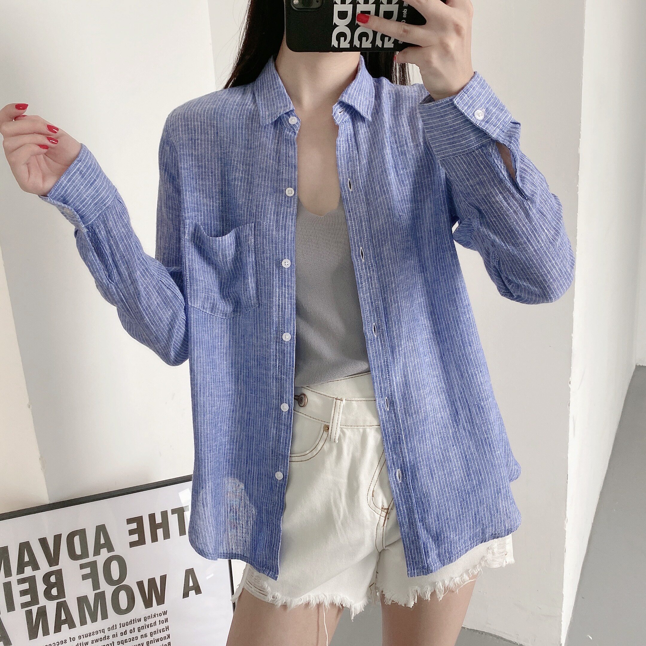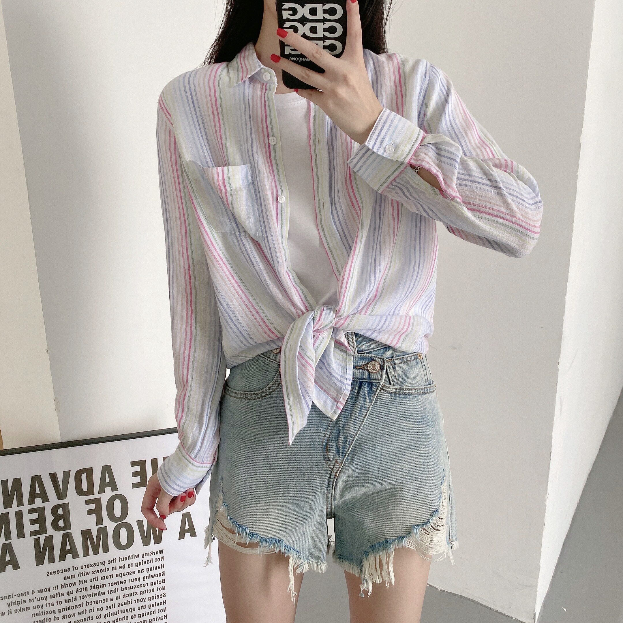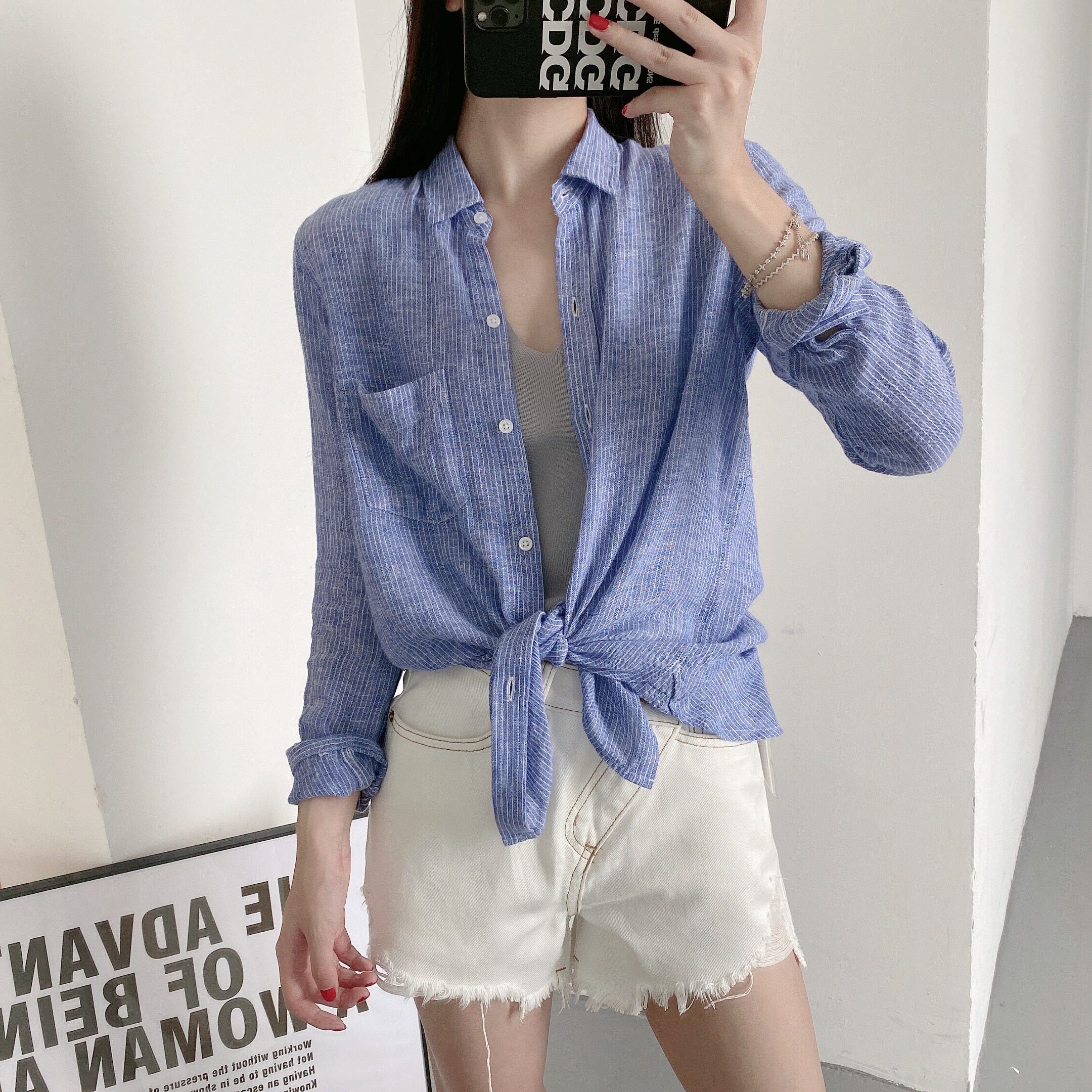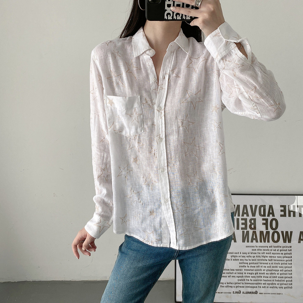 A67 Поэзия горячей летней красоты должна быть вовлечена в европейские и американские нишевые мягкие клейкие рубашки -льна.