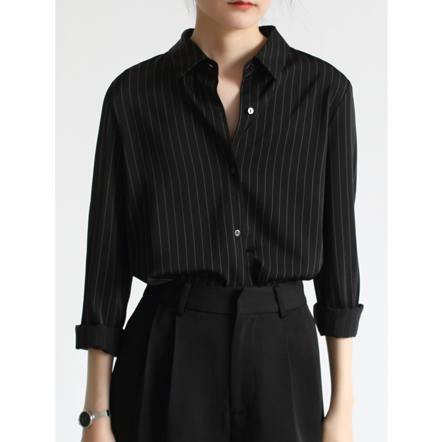 VDH STUDIO, новая весенняя рубашка в черную полоску, женская рубашка для пожилых людей, рубашка для собеседований, рабочая одежда