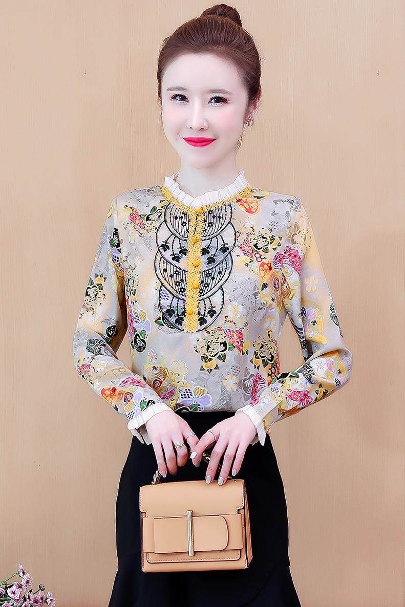 Осенний модный ретро фонарь, рубашка, 2021 года, с вышивкой, цветочный принт