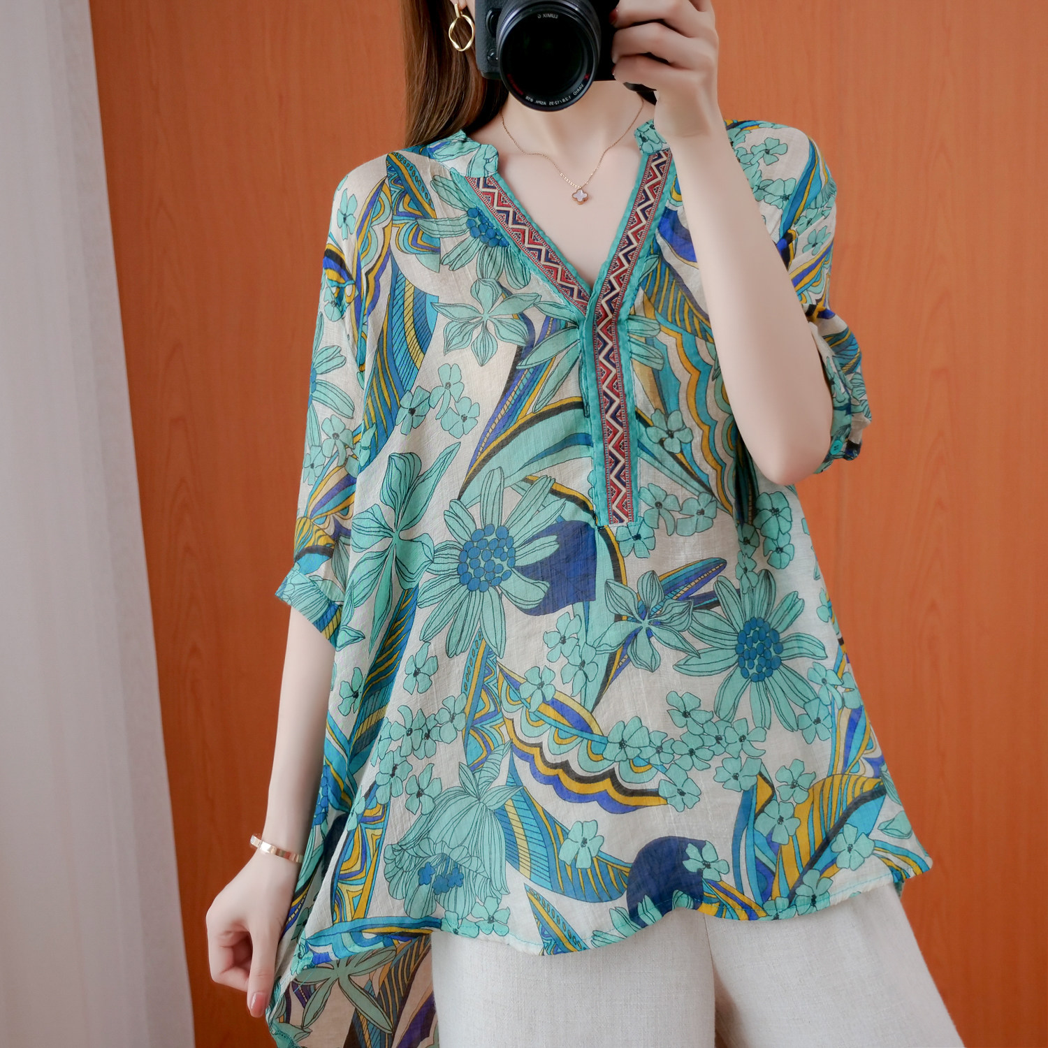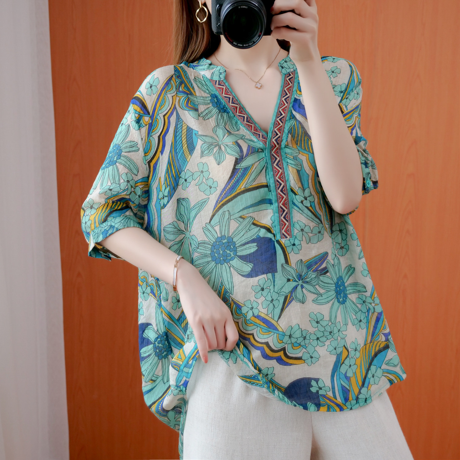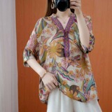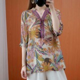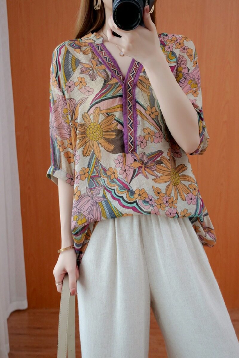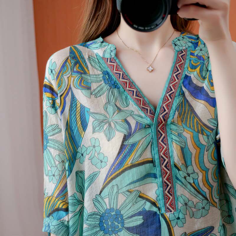 Ретро весенняя летняя рубашка, большой размер, V-образный вырез