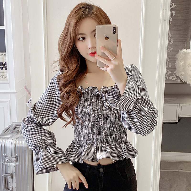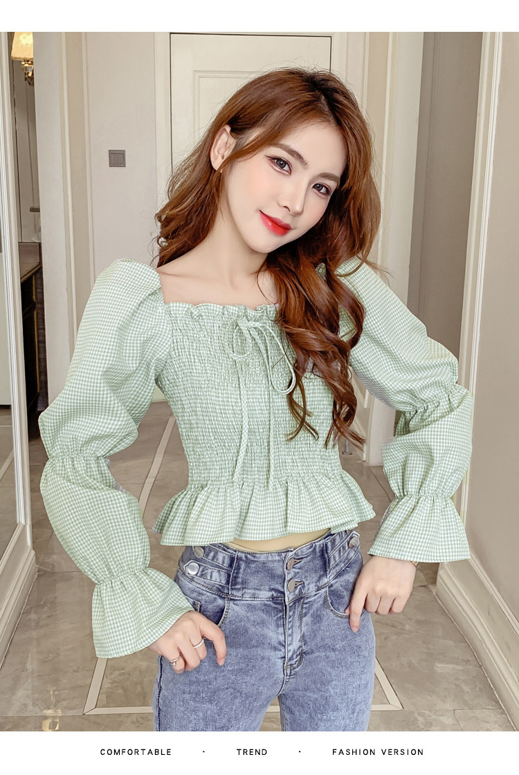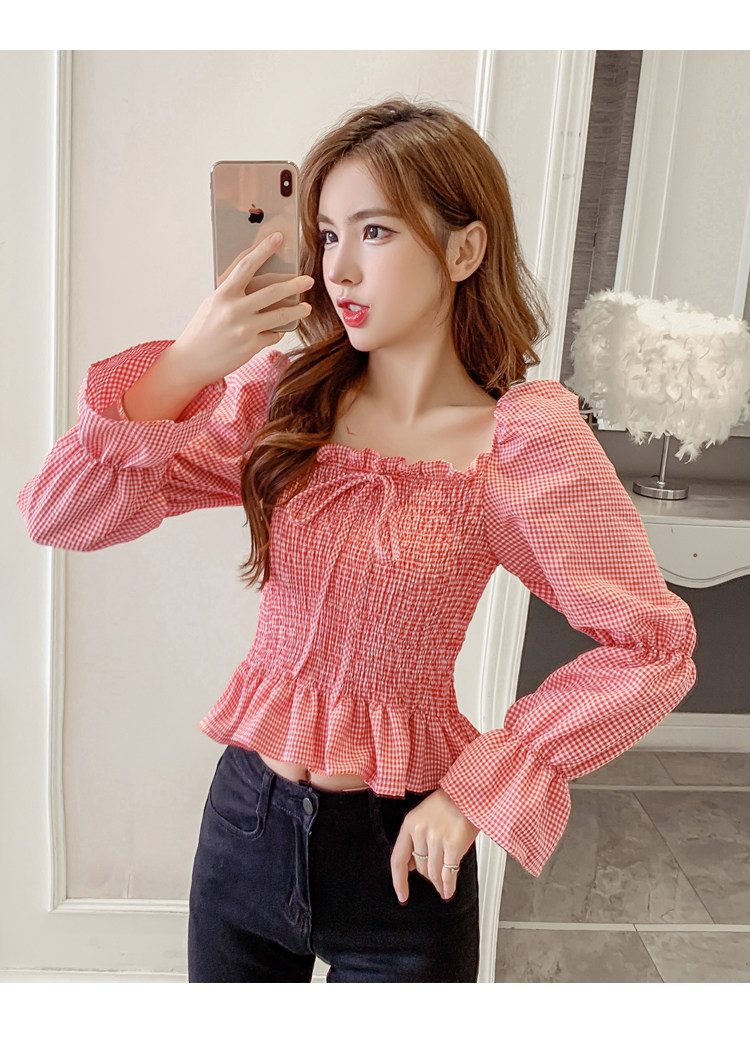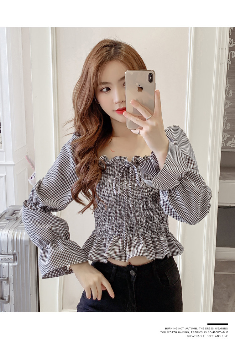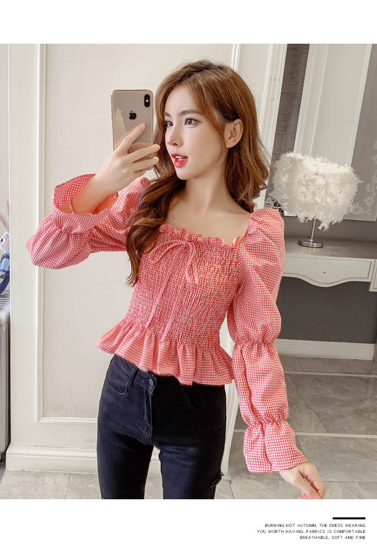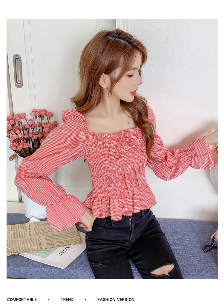 Ретро рубашка, весенний лонгслив, короткий корсет, французский стиль, квадратный вырез, рукава фонарики, облегающий крой, в западном стиле