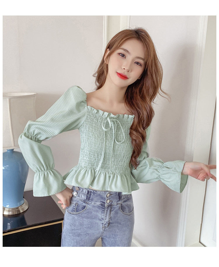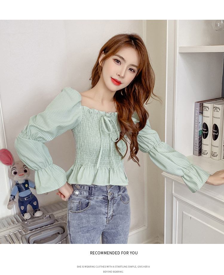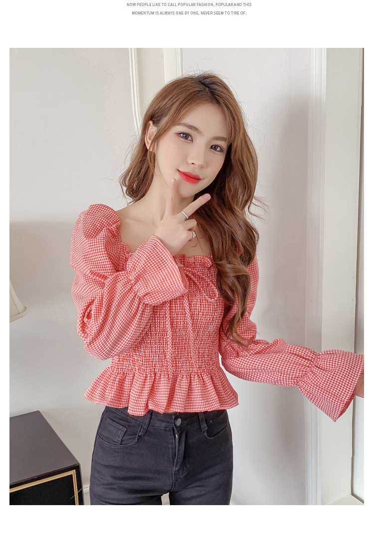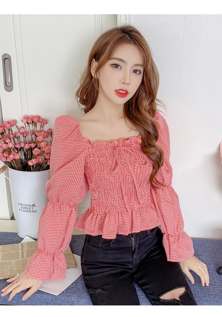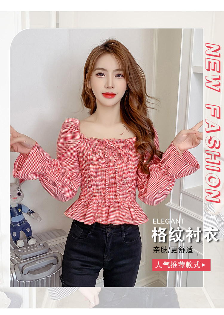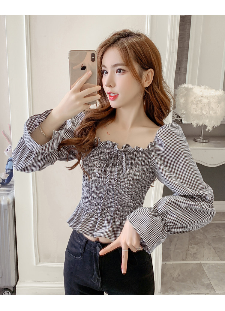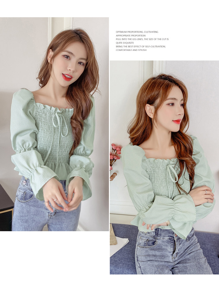 Ретро рубашка, весенний лонгслив, короткий корсет, французский стиль, квадратный вырез, рукава фонарики, облегающий крой, в западном стиле