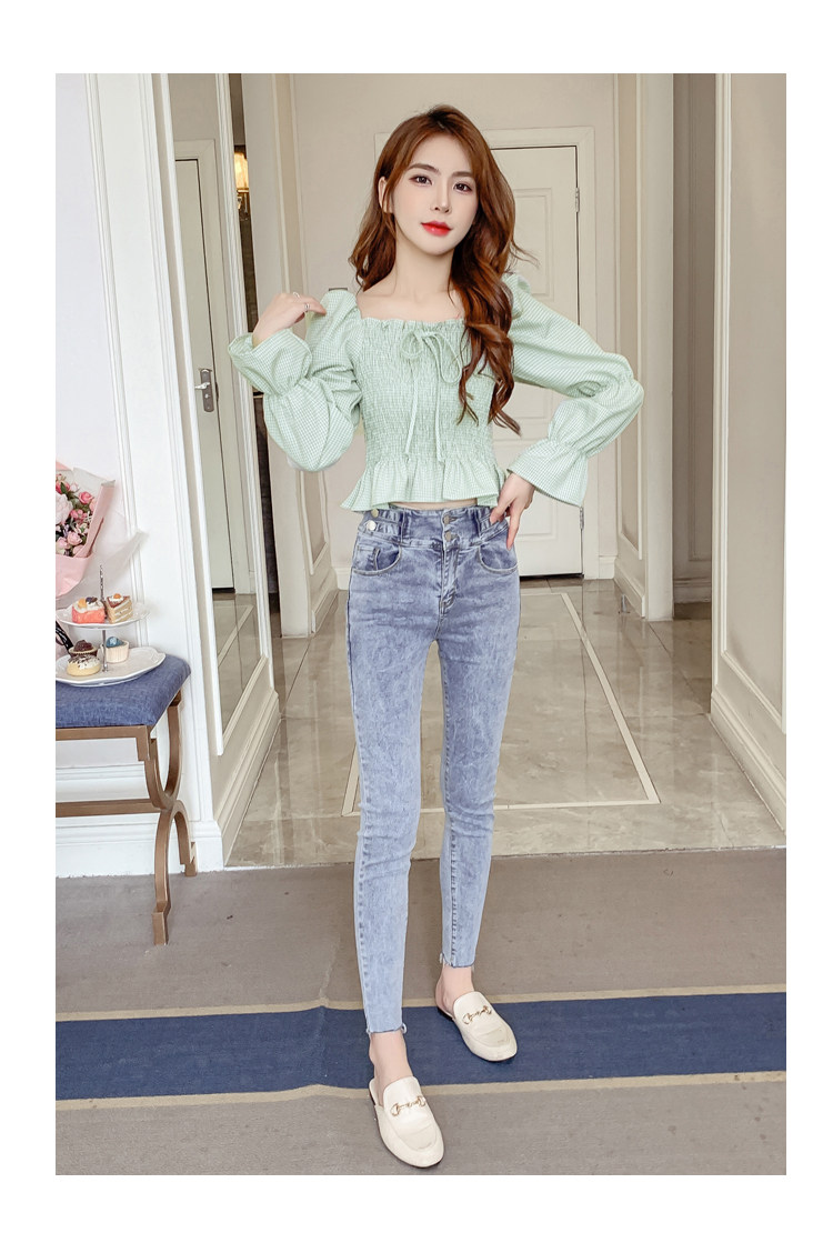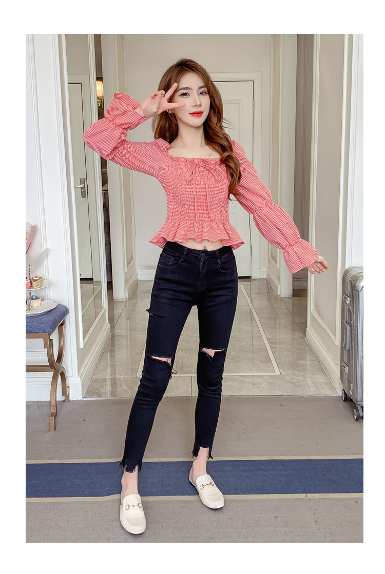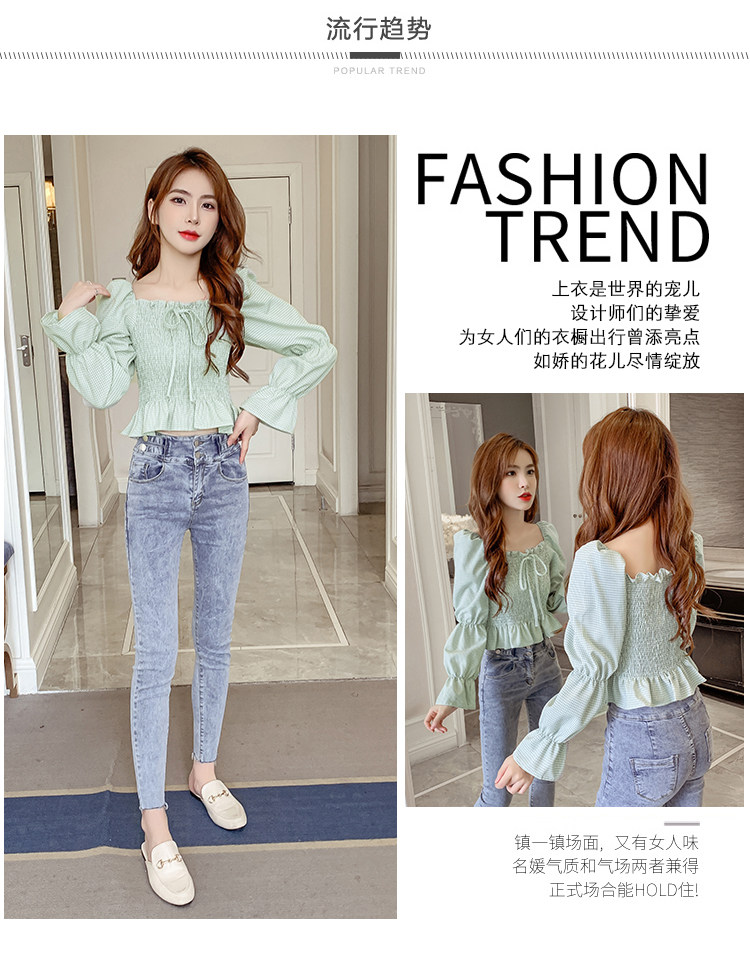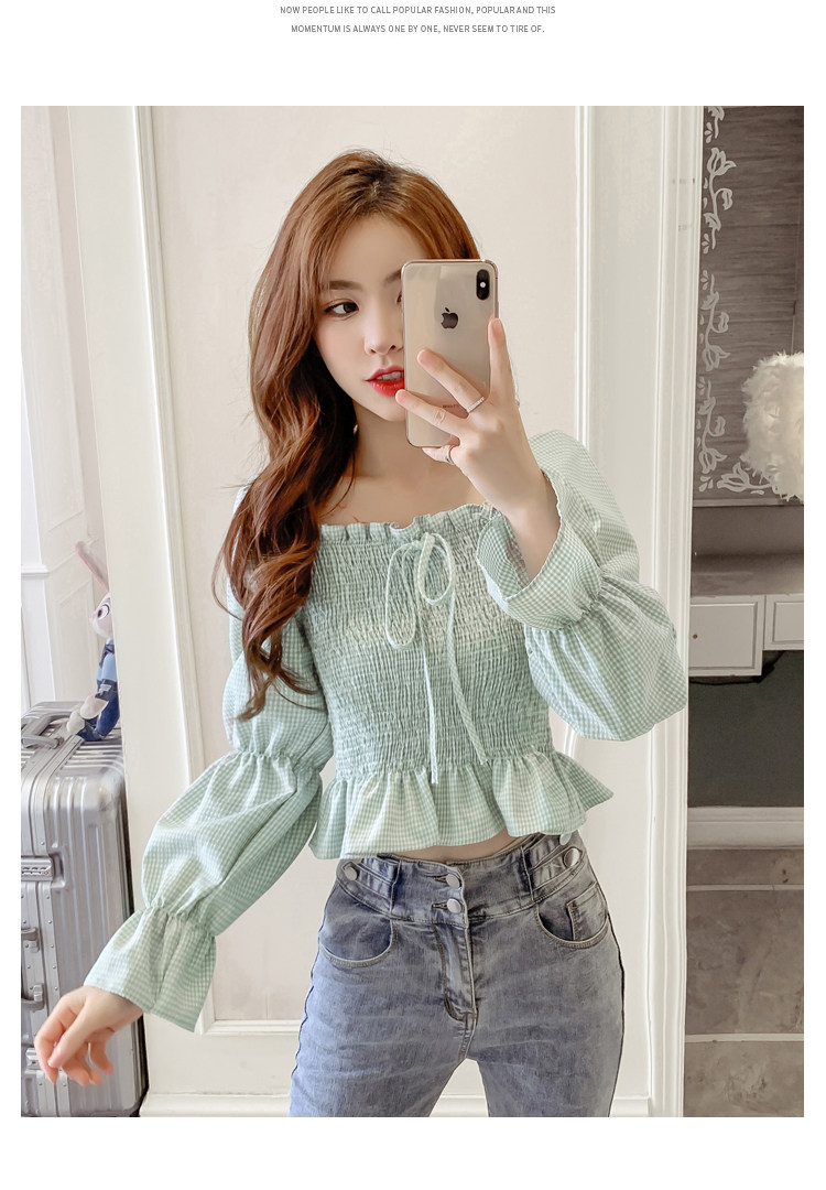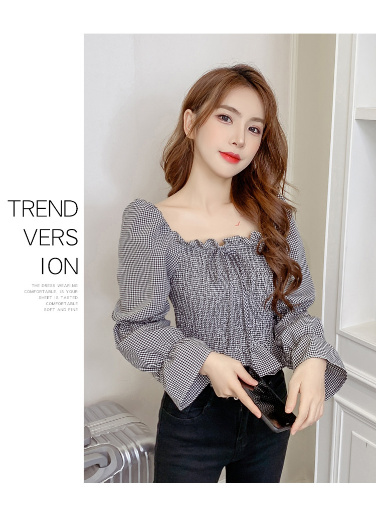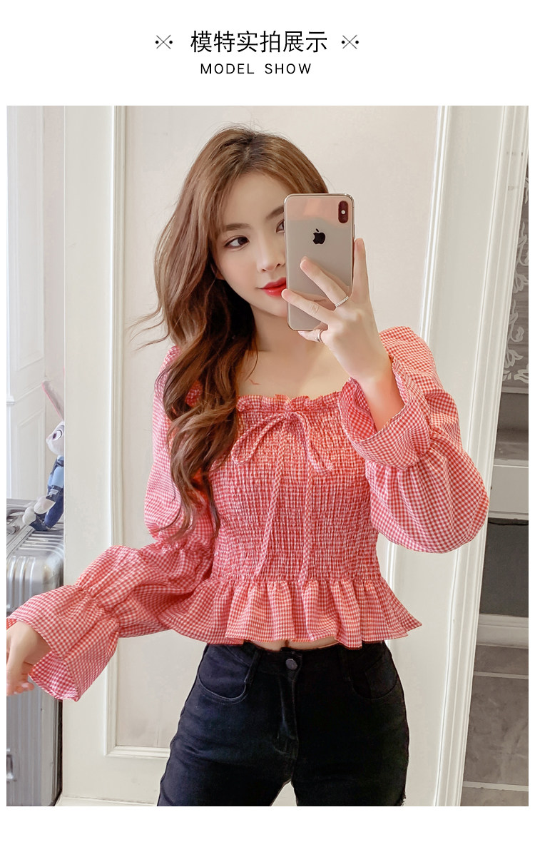 Ретро рубашка, весенний лонгслив, короткий корсет, французский стиль, квадратный вырез, рукава фонарики, облегающий крой, в западном стиле