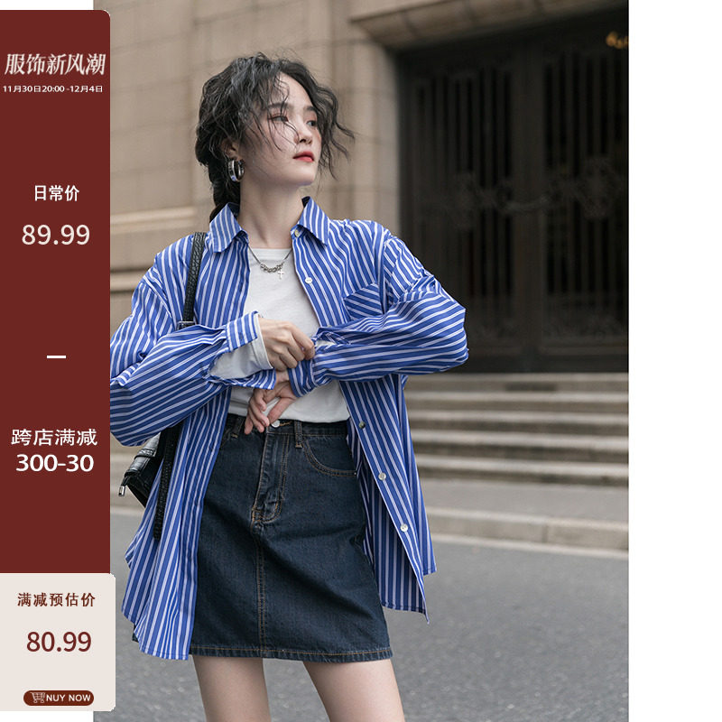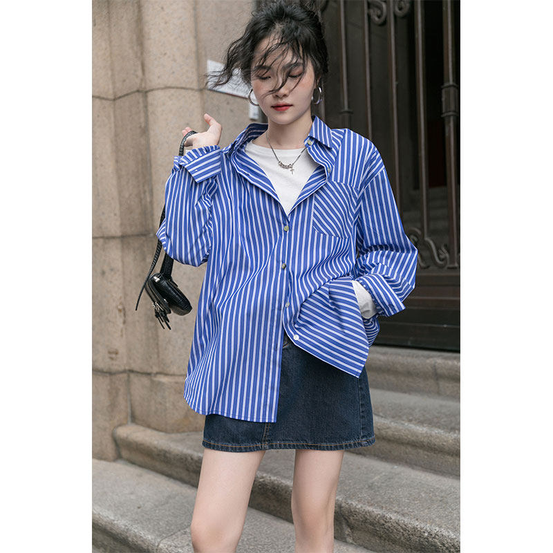 Синяя осенняя дизайнерская рубашка, осенний кардиган, лонгслив, тренд сезона
