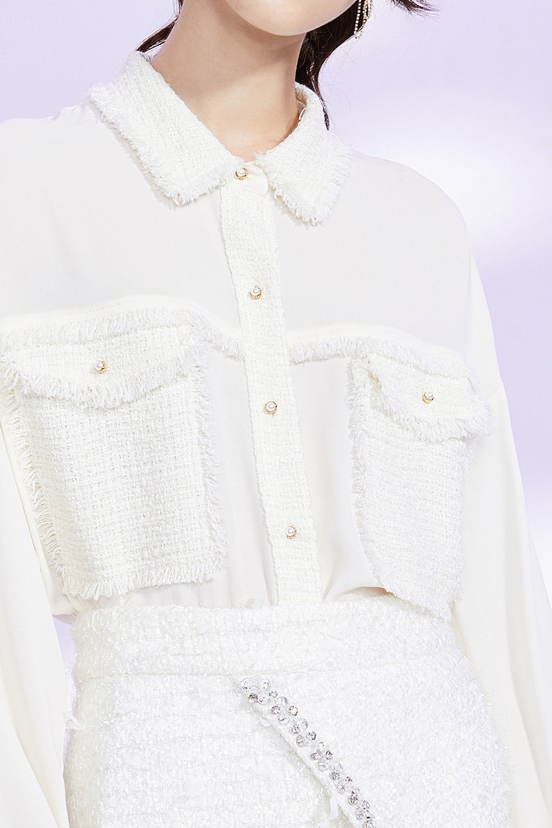 Осенняя рубашка, свободный крой, длина миди, в стиле Шанель