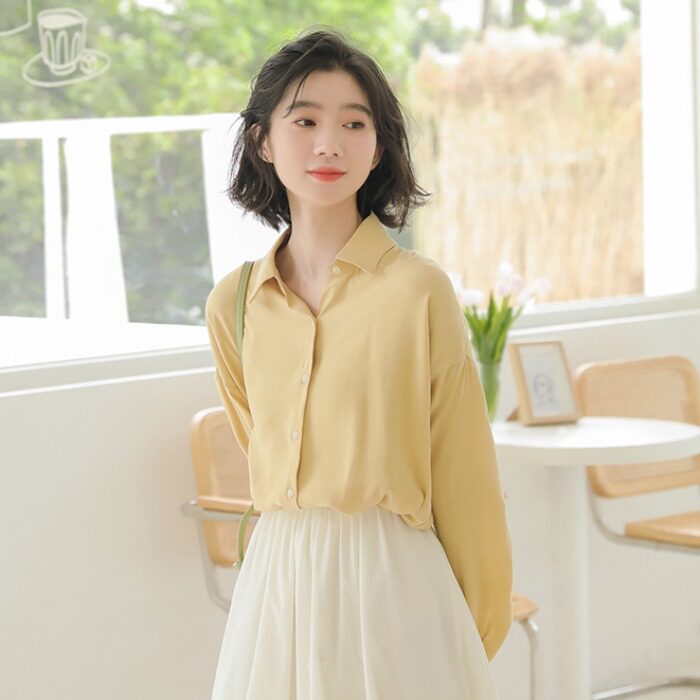 Милая желтая ретро свежая весенняя рубашка, 2023