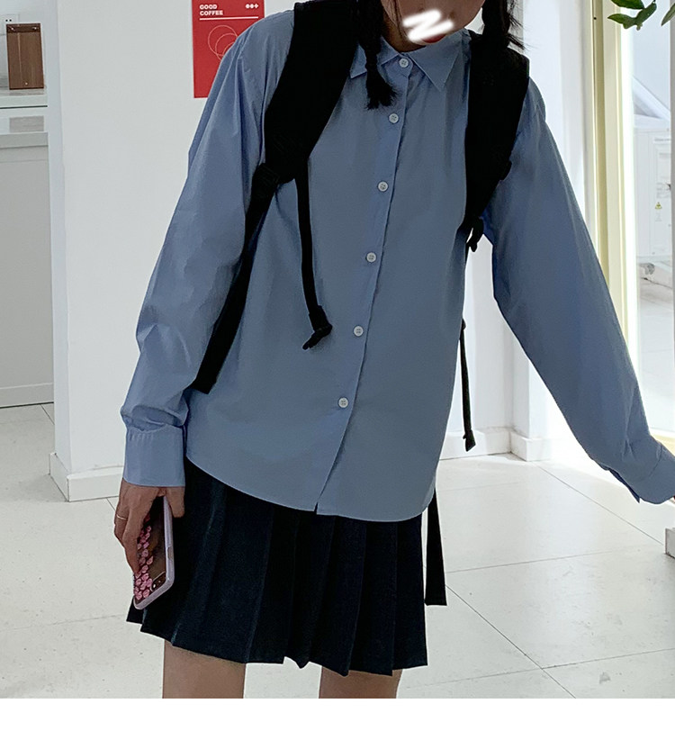 Осенний однотонный базовый лонгслив, синяя рубашка, коллекция 2021